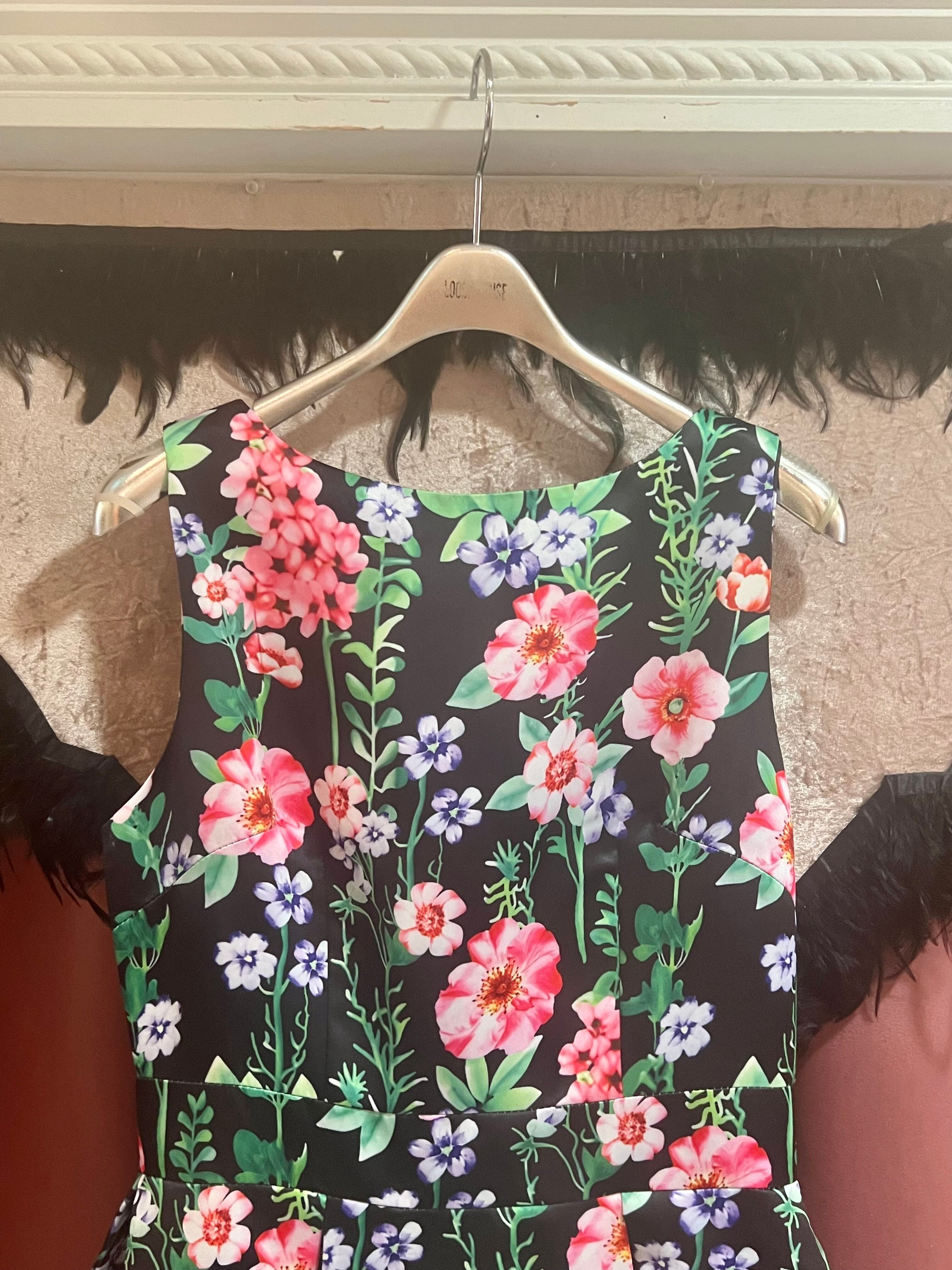 flower print fit&flare one-piece ワンピース ワンピ フィット&フレア ヘプバーン 花柄 フラワープリント カラフル ドレス 二次会 パーティー 夜