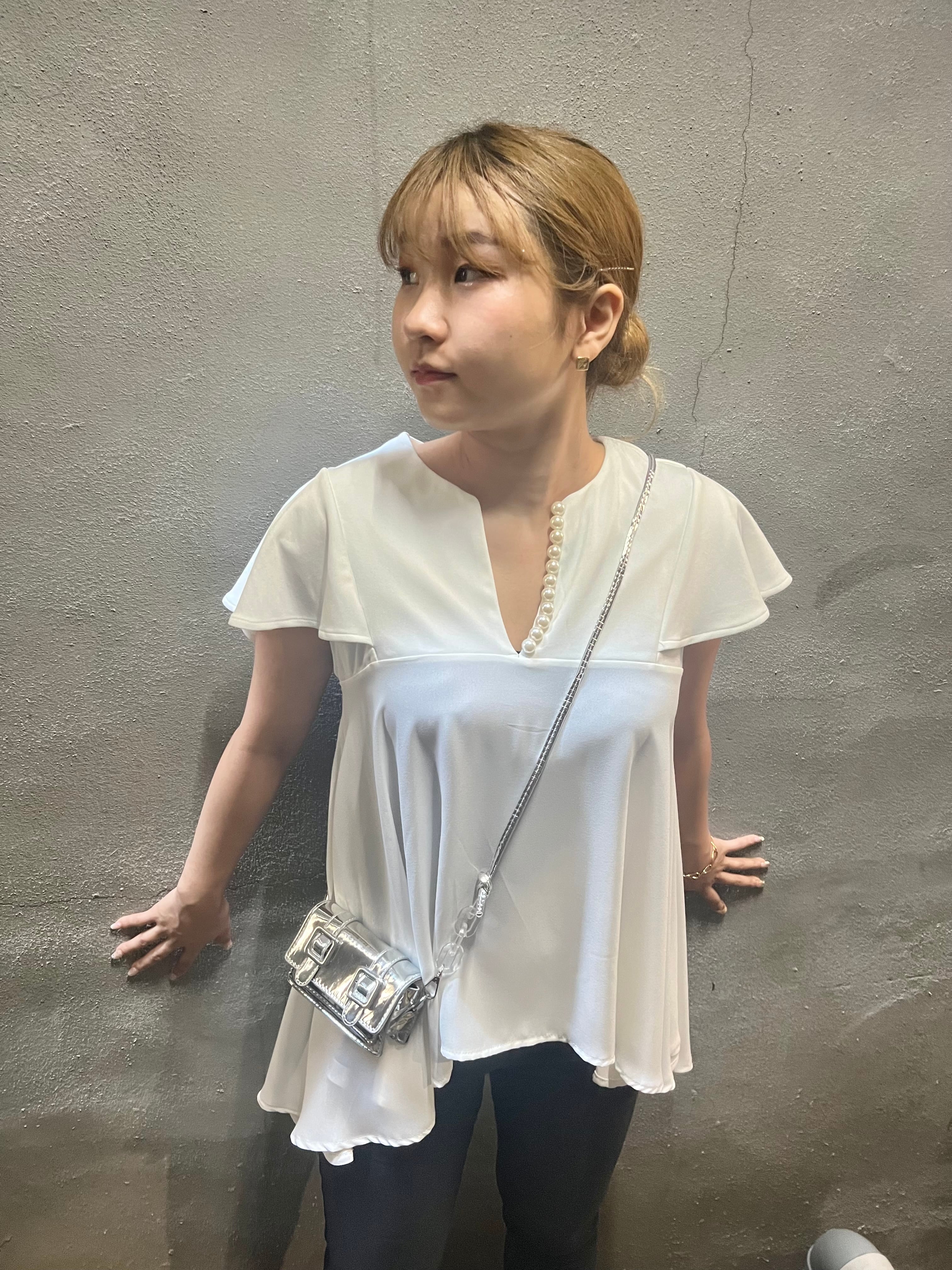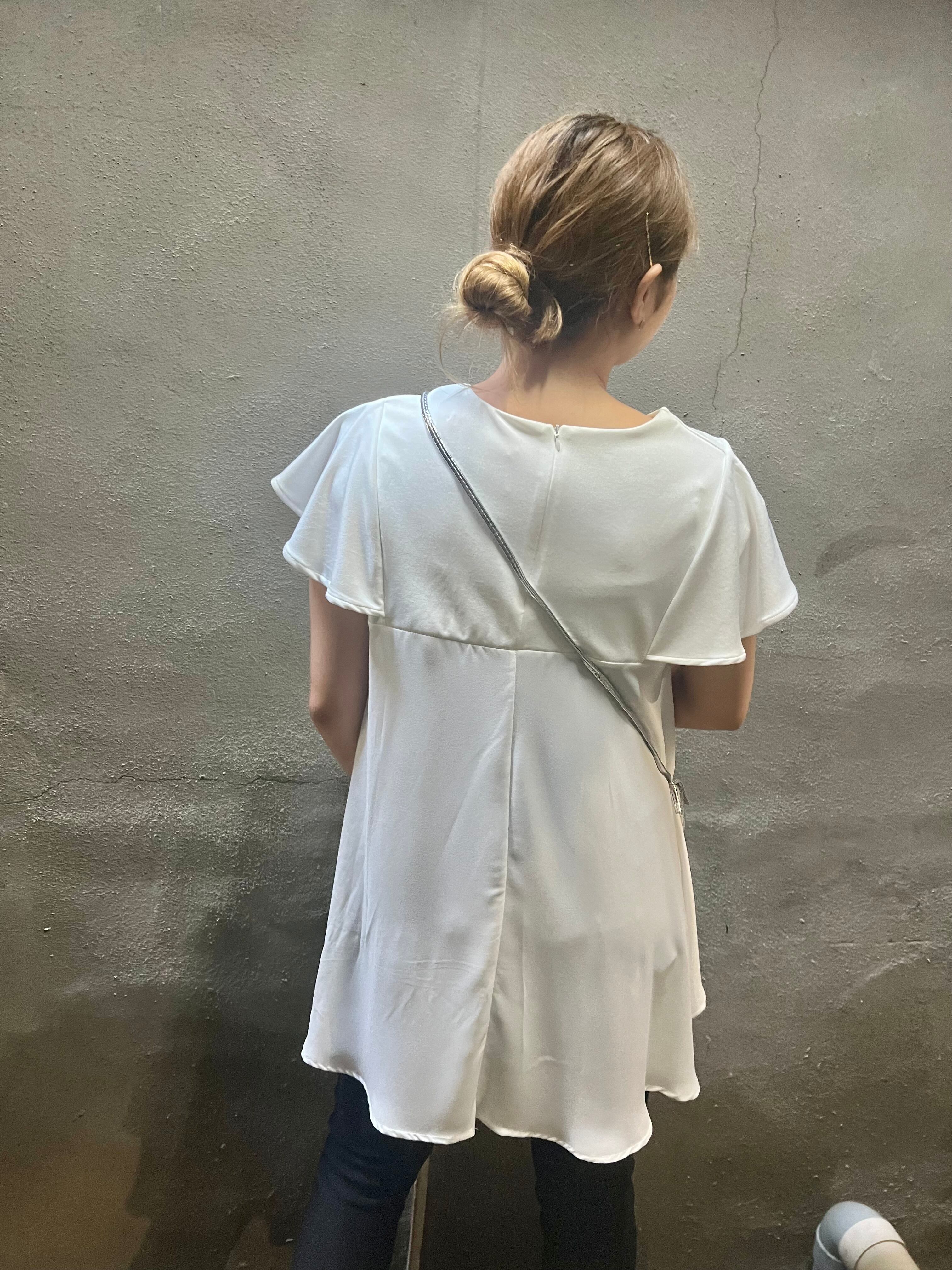 pearl V-neck chiffon change tunic tops チュニック トップス パール フリルスリーブ シフォン 切替デザイン