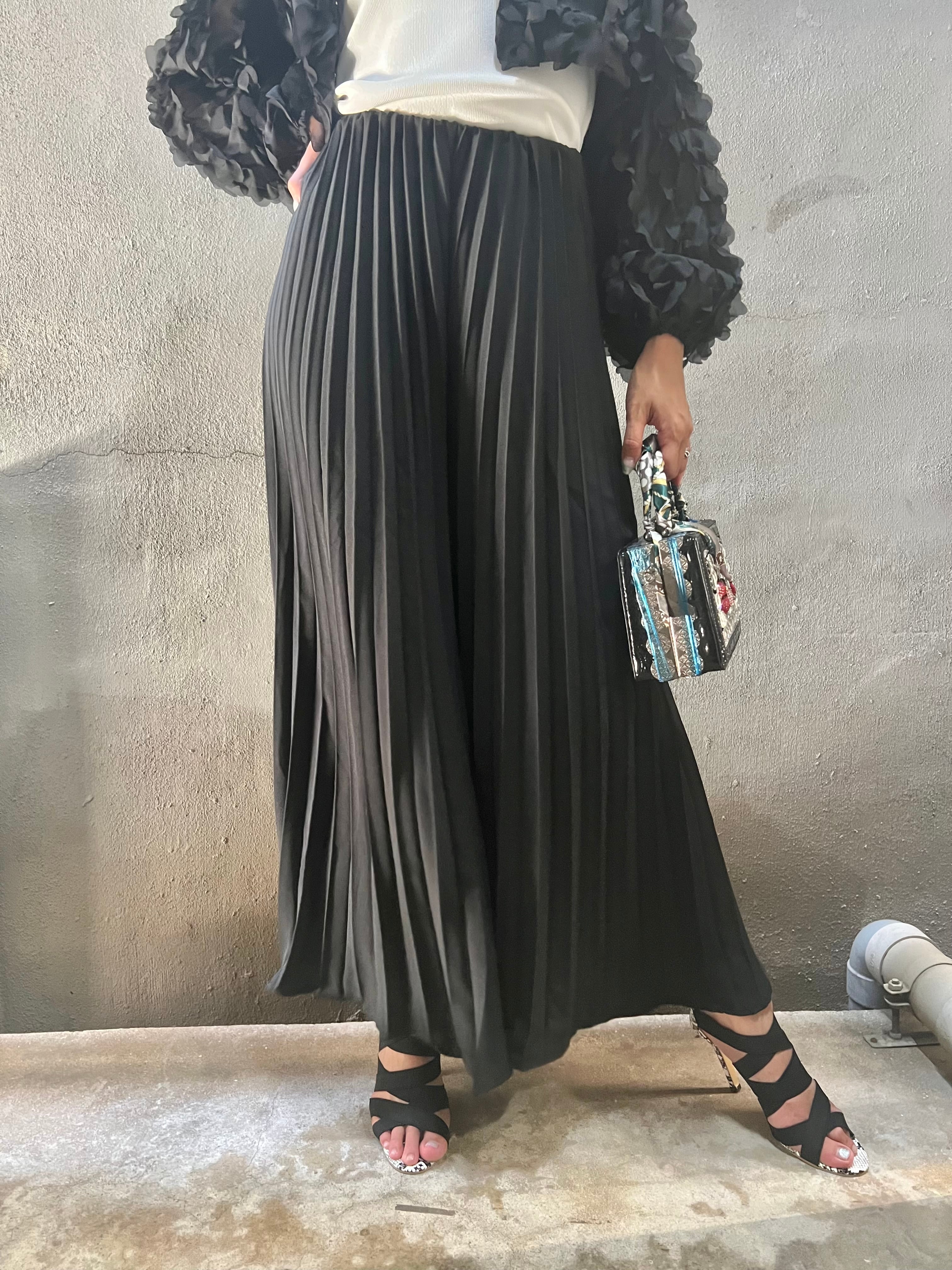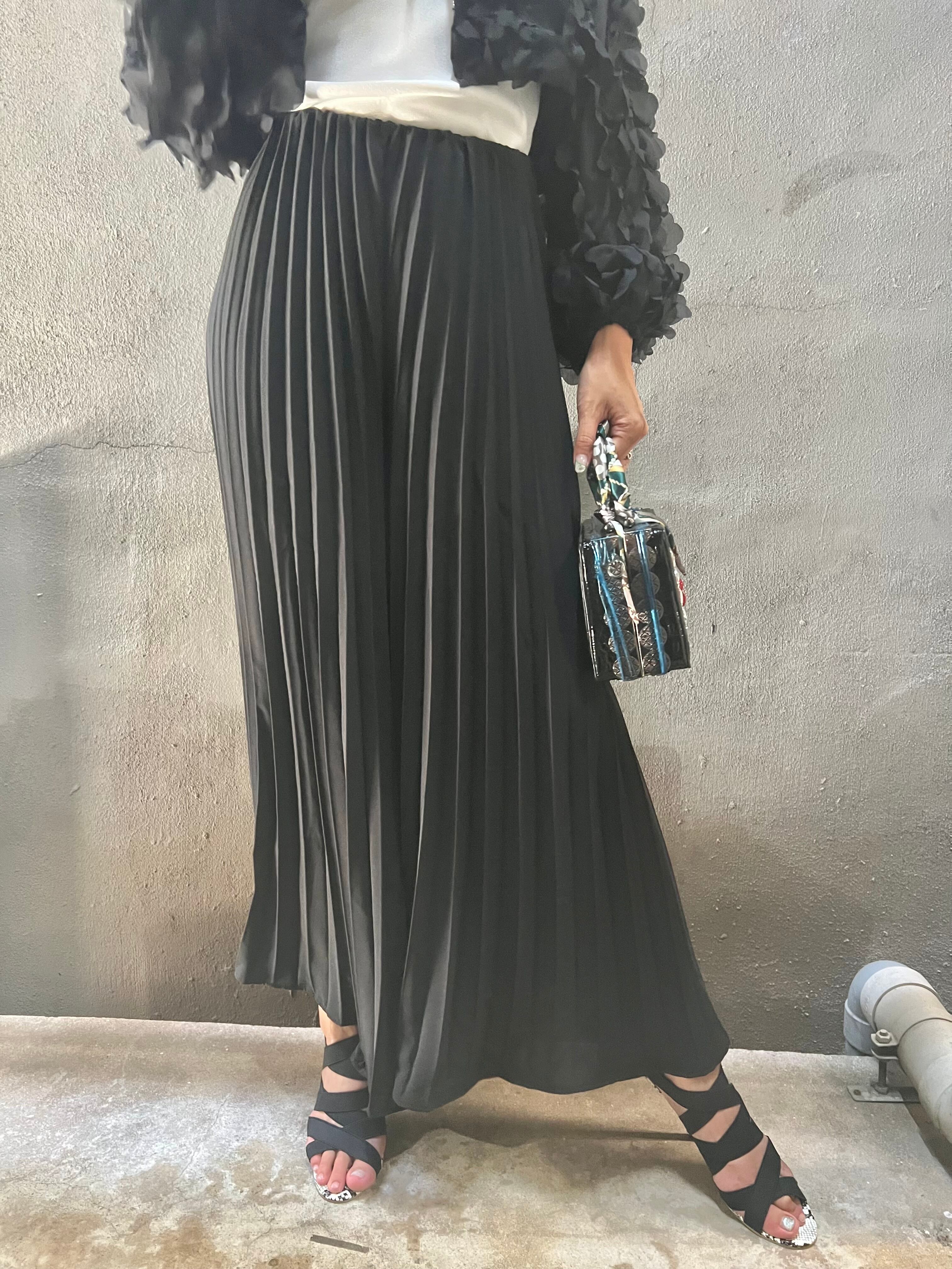 プリーツのデザインが華やかで、一歩進んだキレイめコーデを演出します。