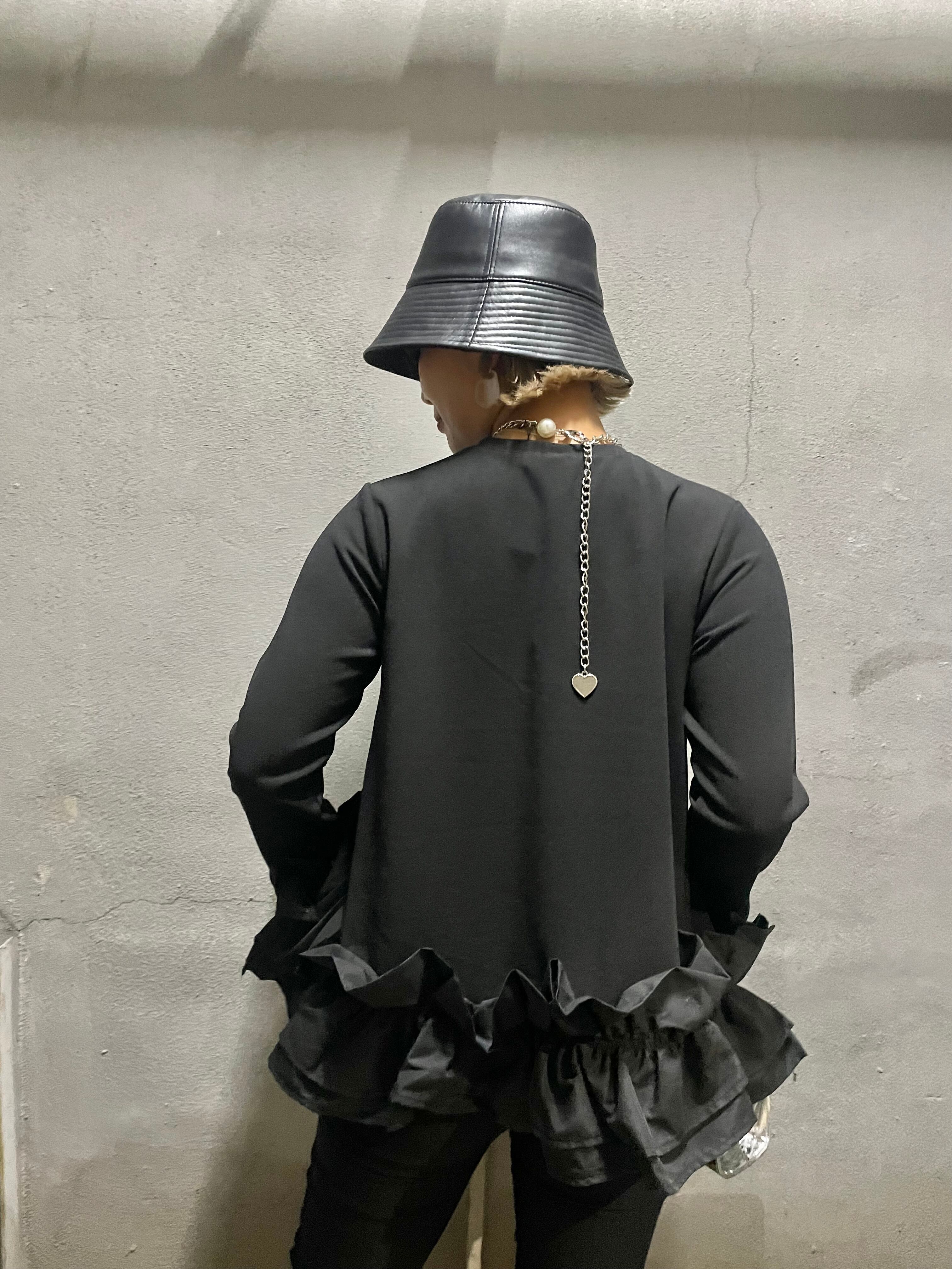 different fabrics mix frill hem design tops トップス デザイントップス 異素材切替 フリル フレア 大人可愛い