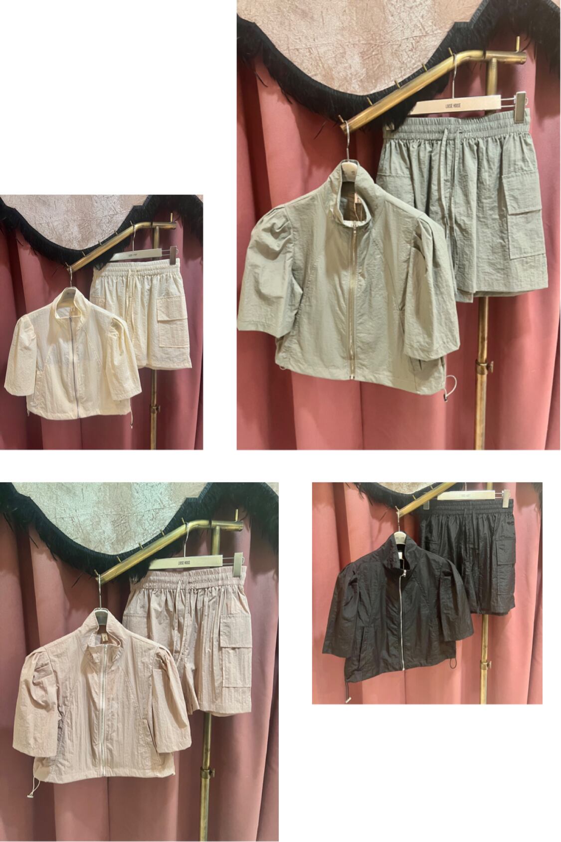 zip blouson × short pants 2P set up セットアップ 2点セット ショート丈 ブルゾン ショートパンツ ゴムウエスト ドローコード