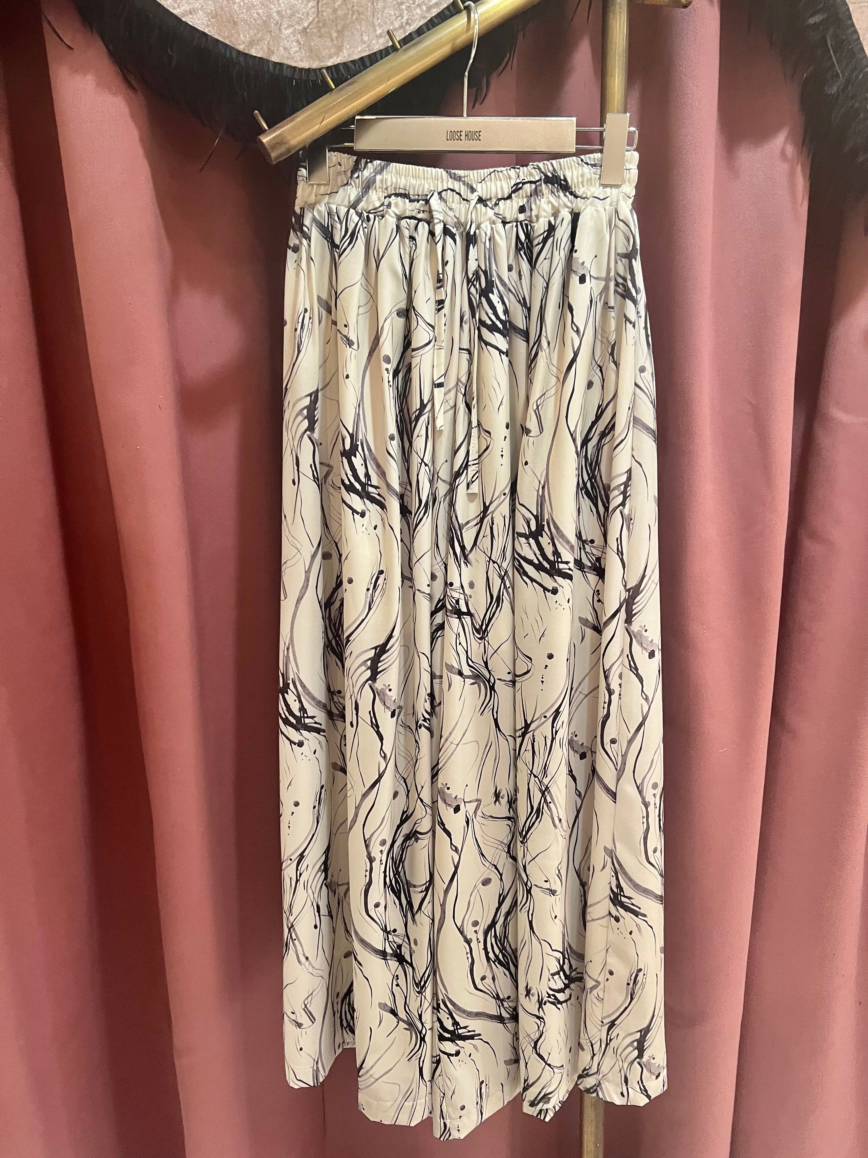 ワイドなシルエットとゴムウエストで、穿くだけで優雅なスタイルを演出します。