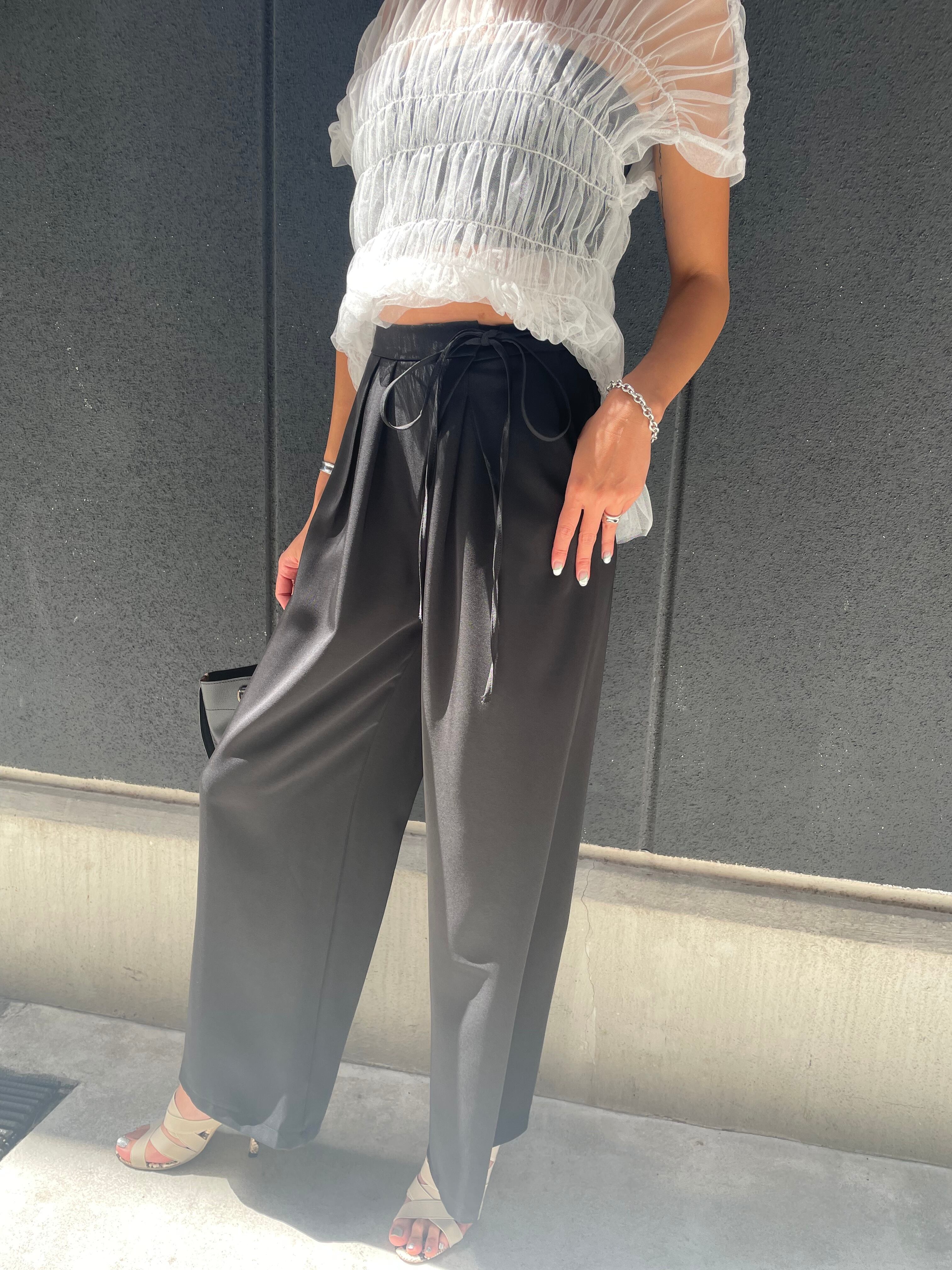 side ribbon wideleg long pants パンツ ワイドパンツ サイドリボン きれいめ 脚長効果