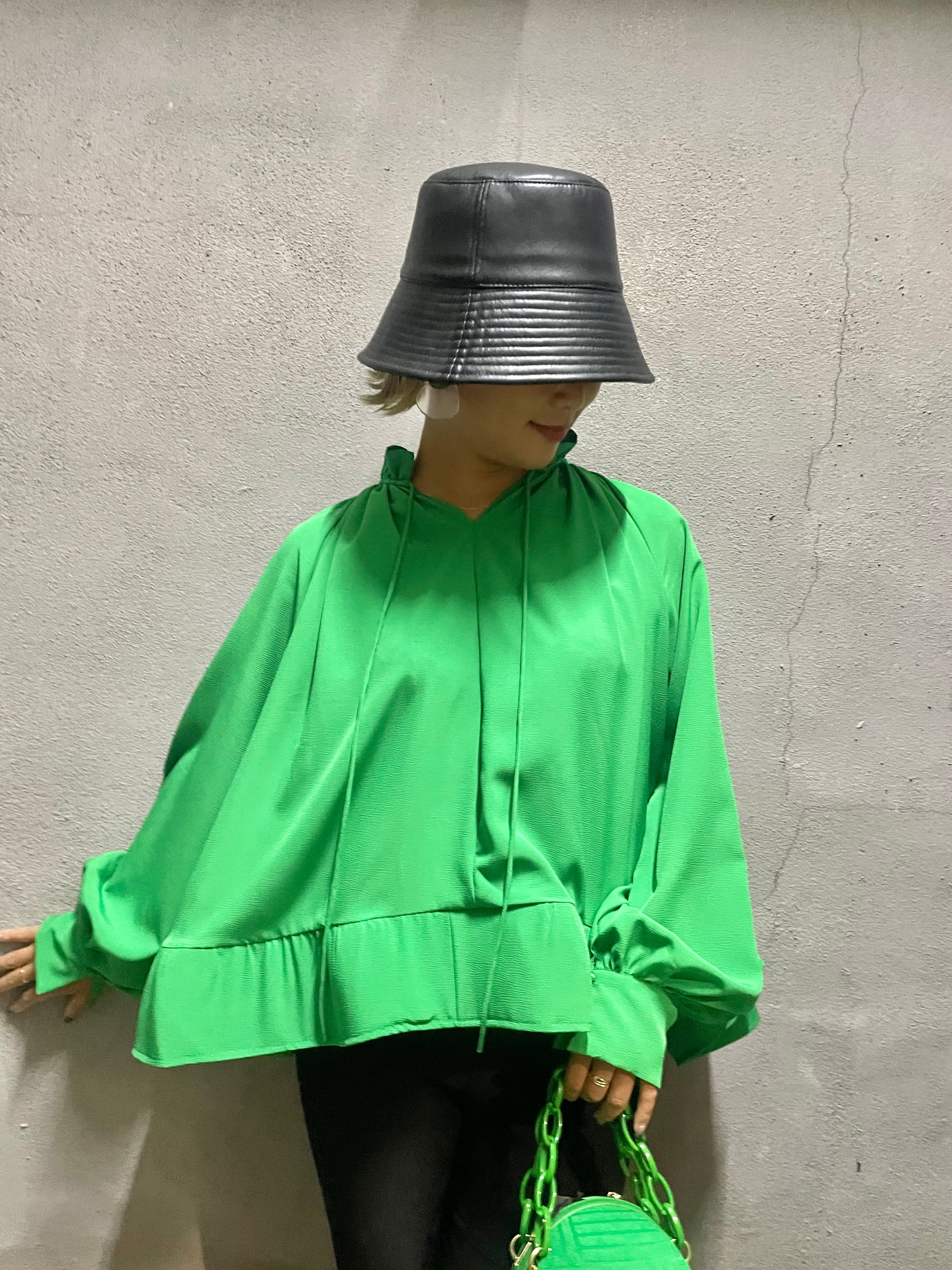 gather neck belted volume frill design shirt tops トップス シャツ フリル ギャザーネック ベルト付 カラバリ
