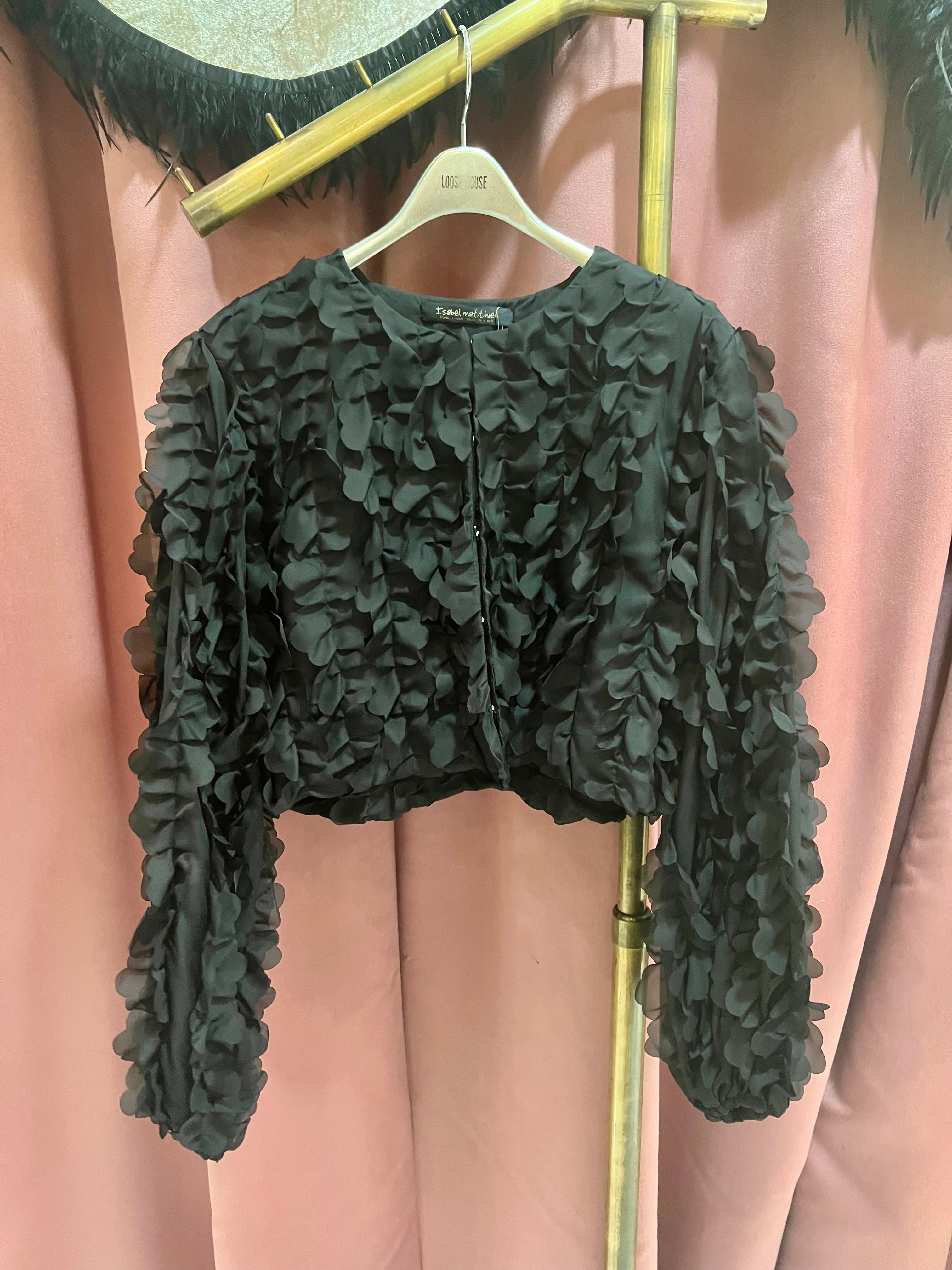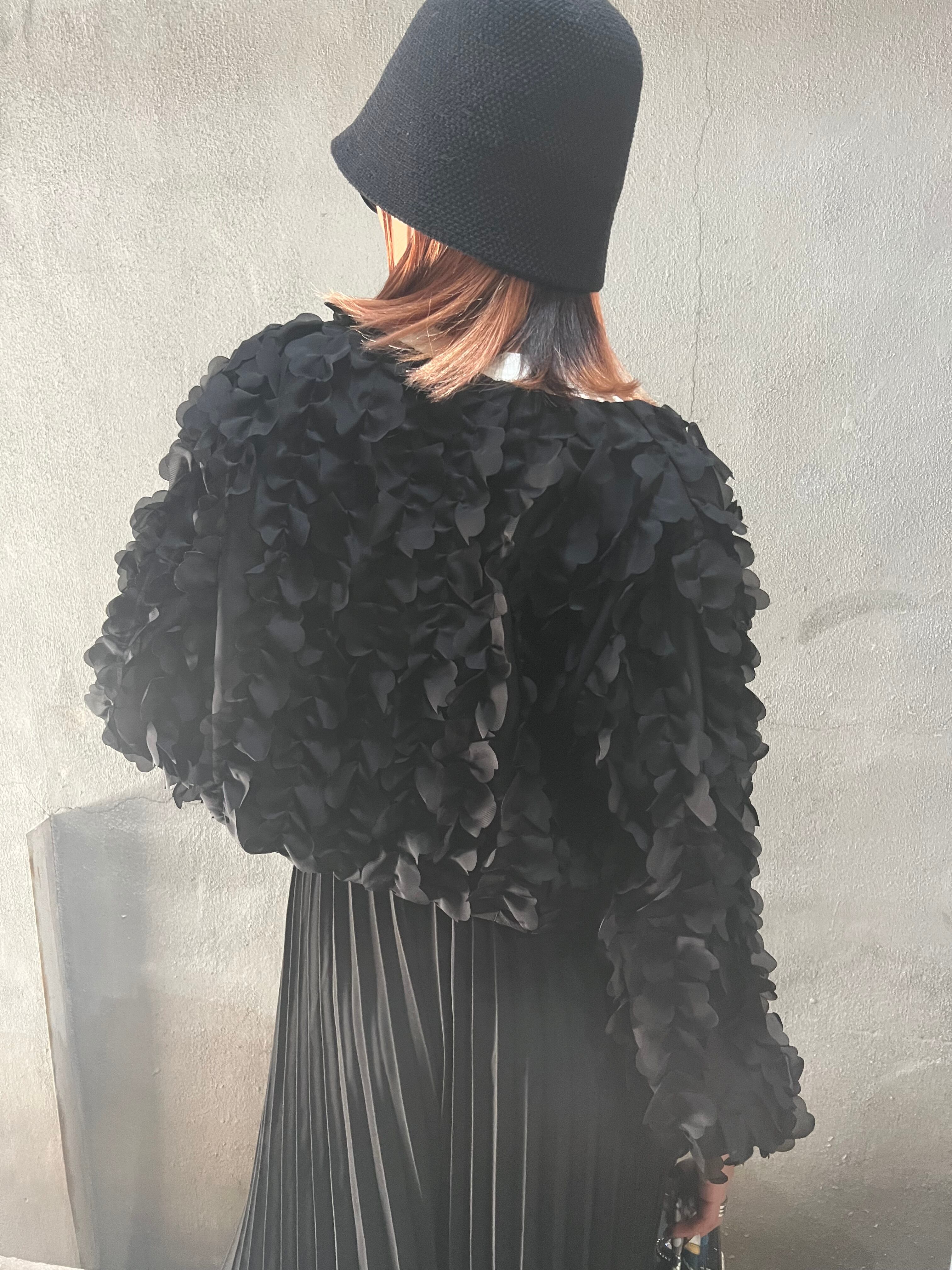 3D chiffon frill short jacket ジャケット カーディガン フリル 立体的 ショート丈 羽織り ドレス 結婚式 二次会