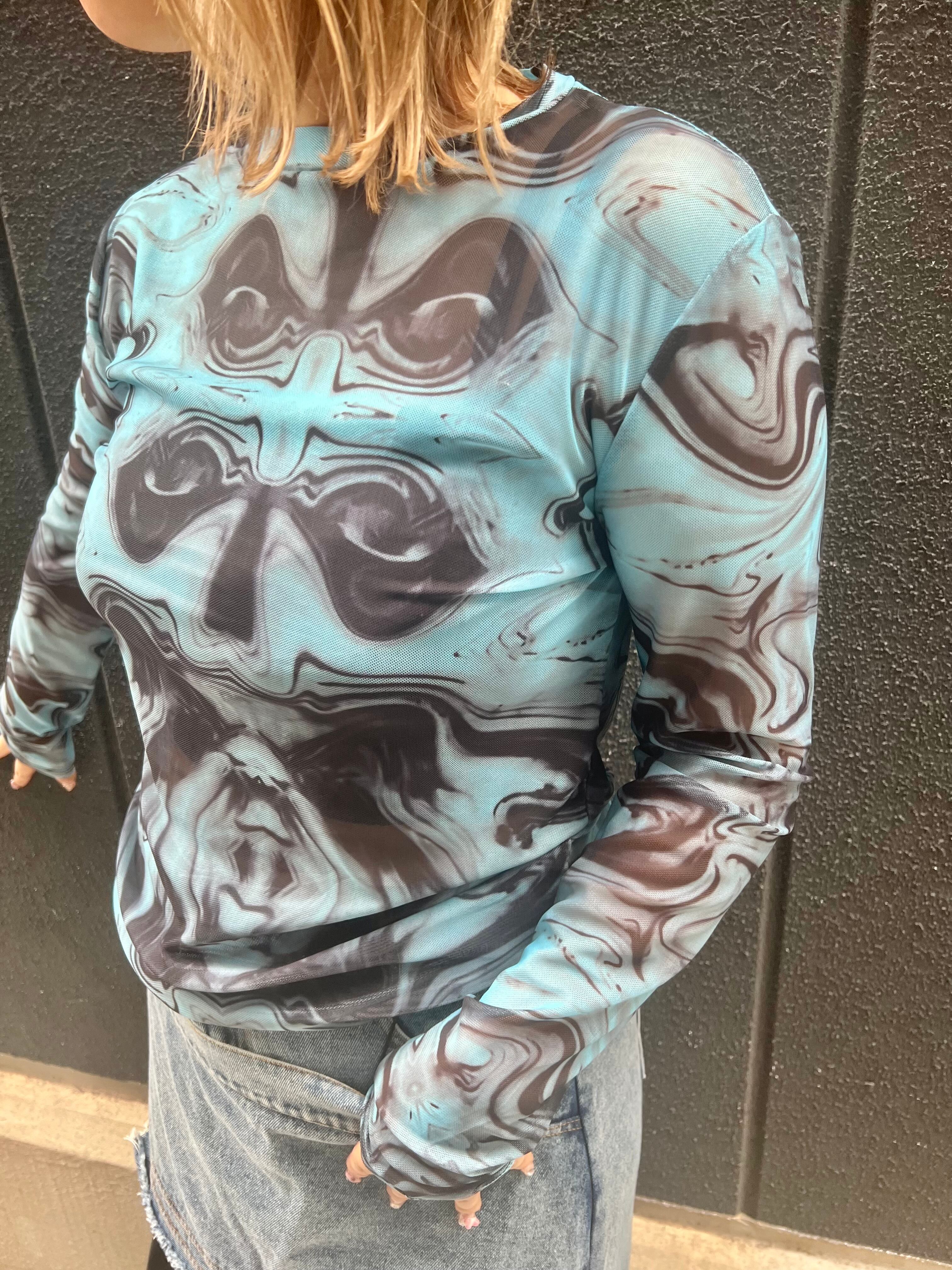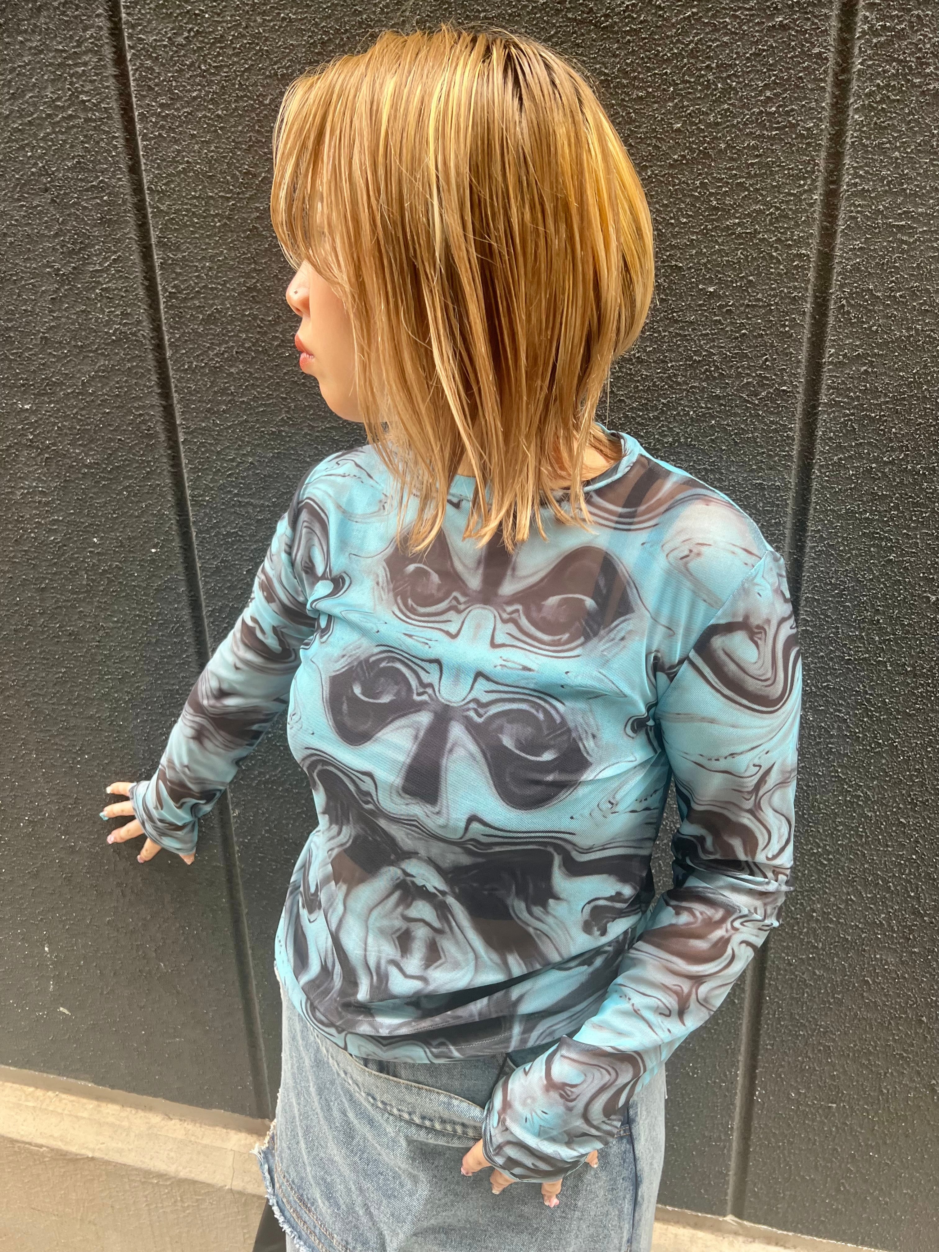 stretch mesh psychedelic print tops トップス メッシュ メッシュトップス タイダイ サイケ ストレッチ 重ね着 レイヤー 着回し