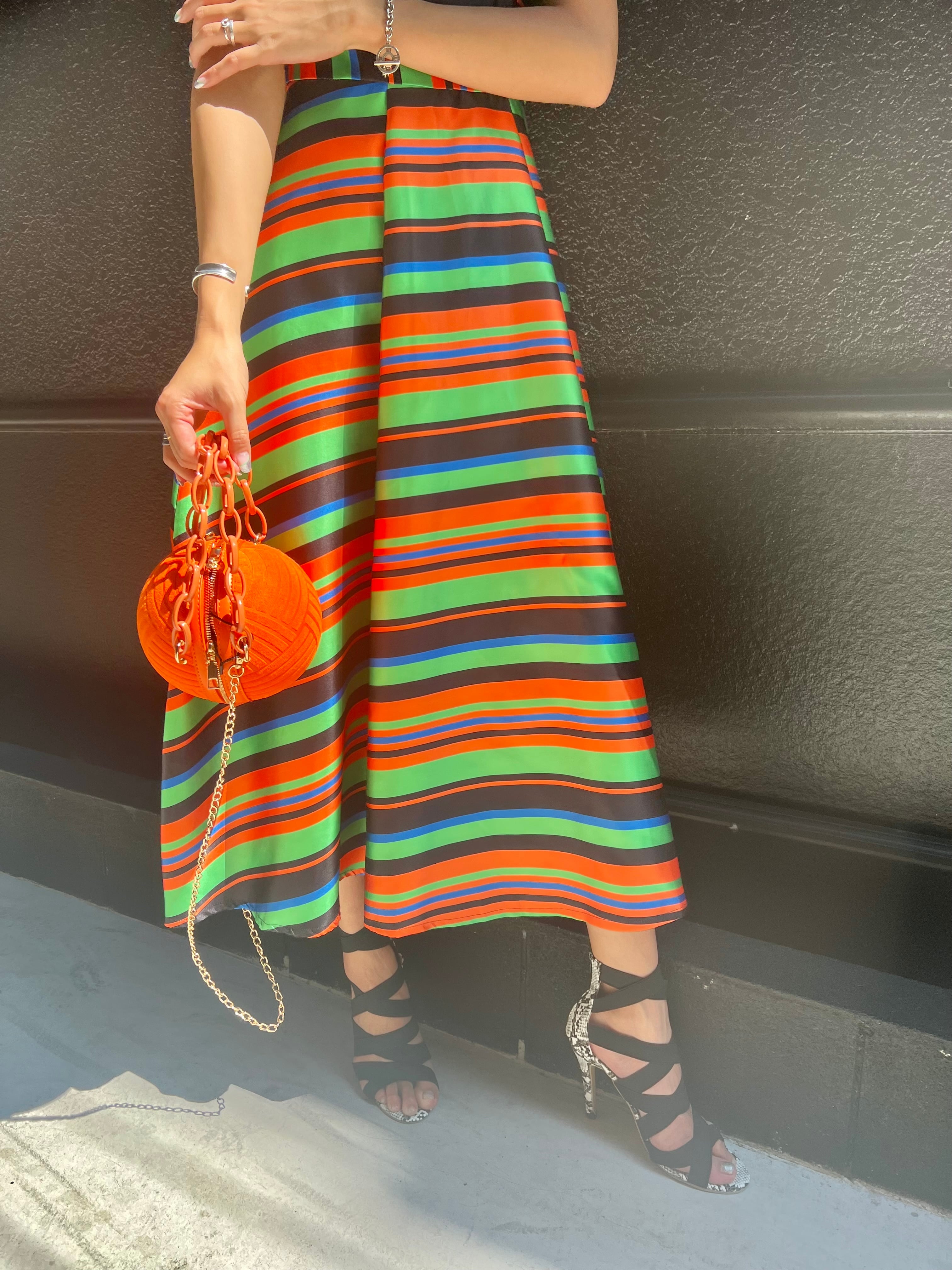 colorful border fit&flare silhouette one-piece ワンピース ワンピ ドレス フィット&フレア カラフル ボーダー