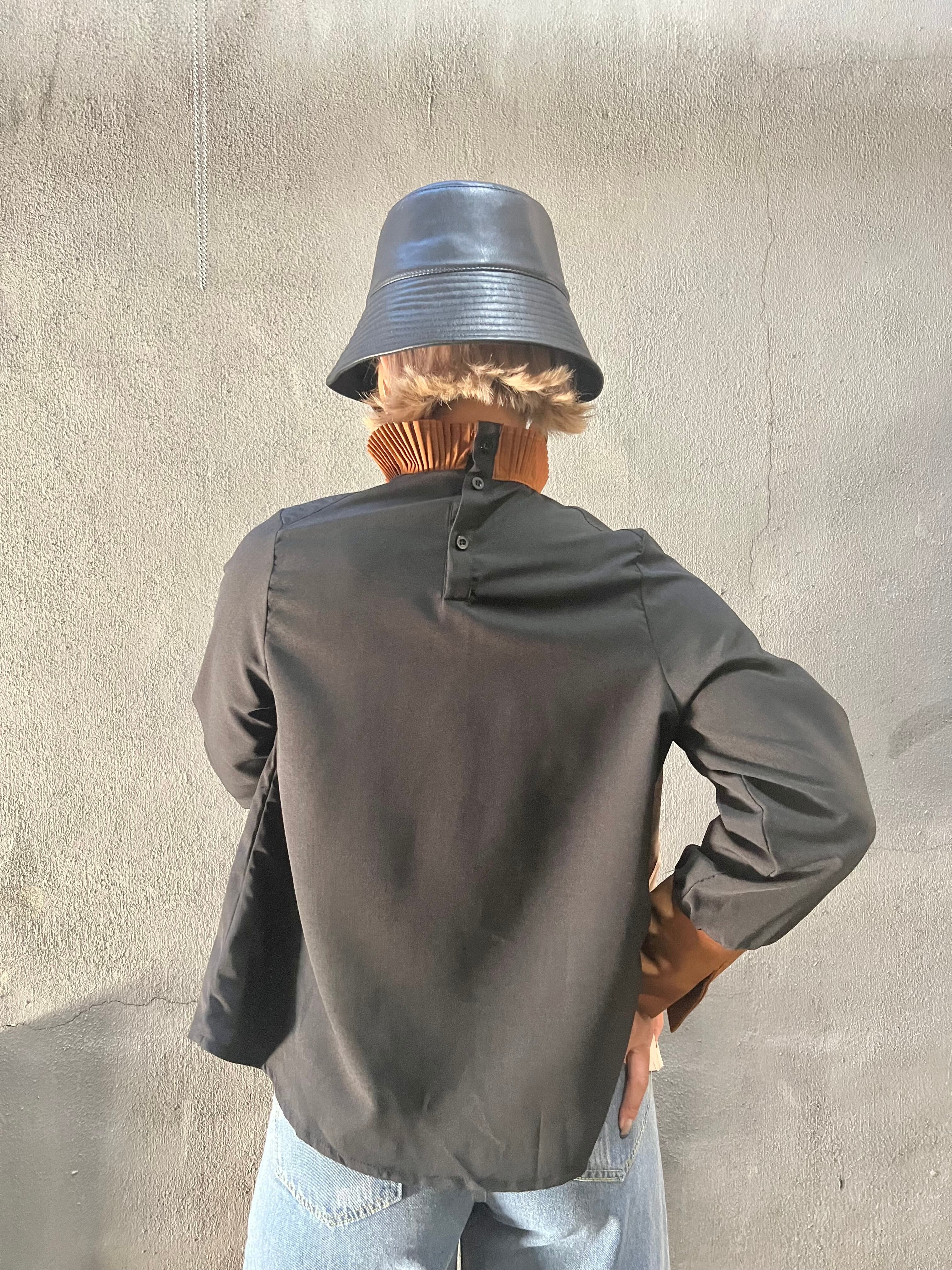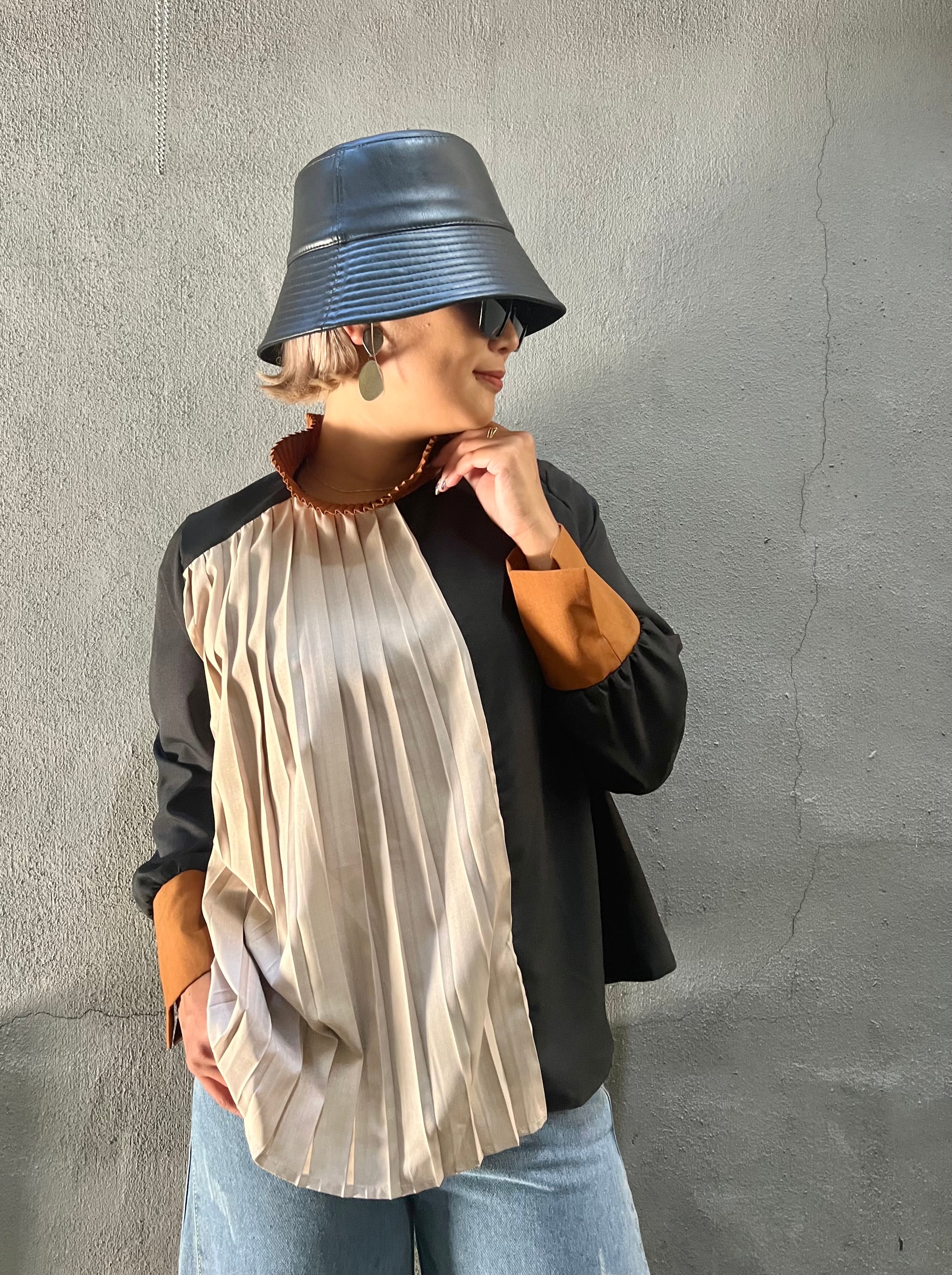 pleats change irregular design tops トップス シャツ プリーツ 3ターンカラー 秋 イレギュラー