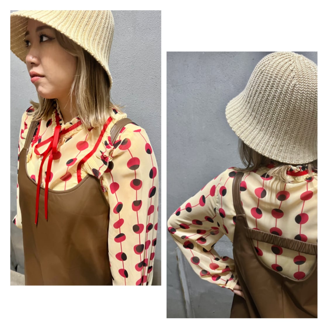 シャツの首元にはフリルとリボンがあしらわれていてCUTE♡