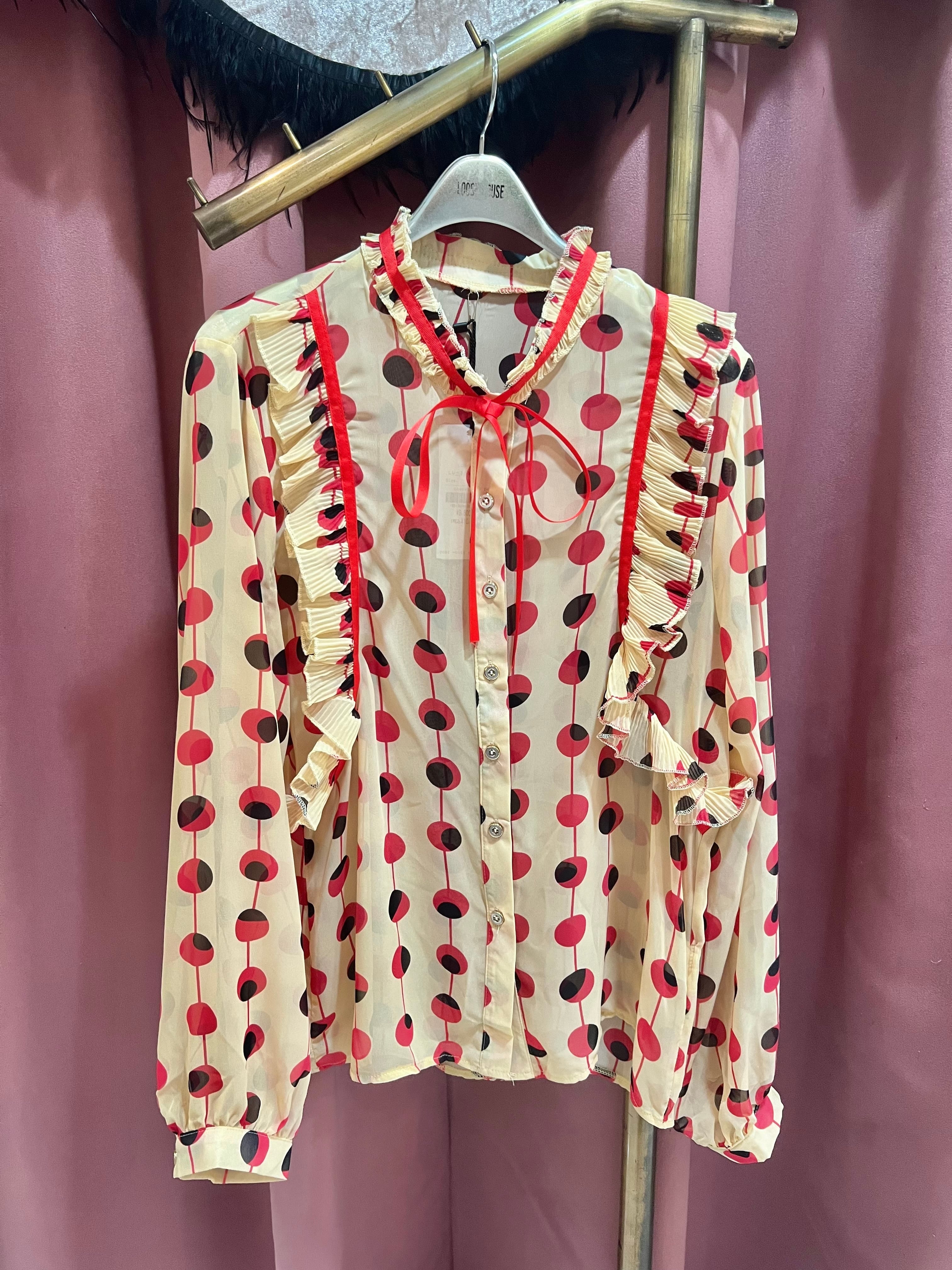 print chiffon ribbon tie frill design shirt シャツ デザインシャツ シフォン フリル リボン 赤