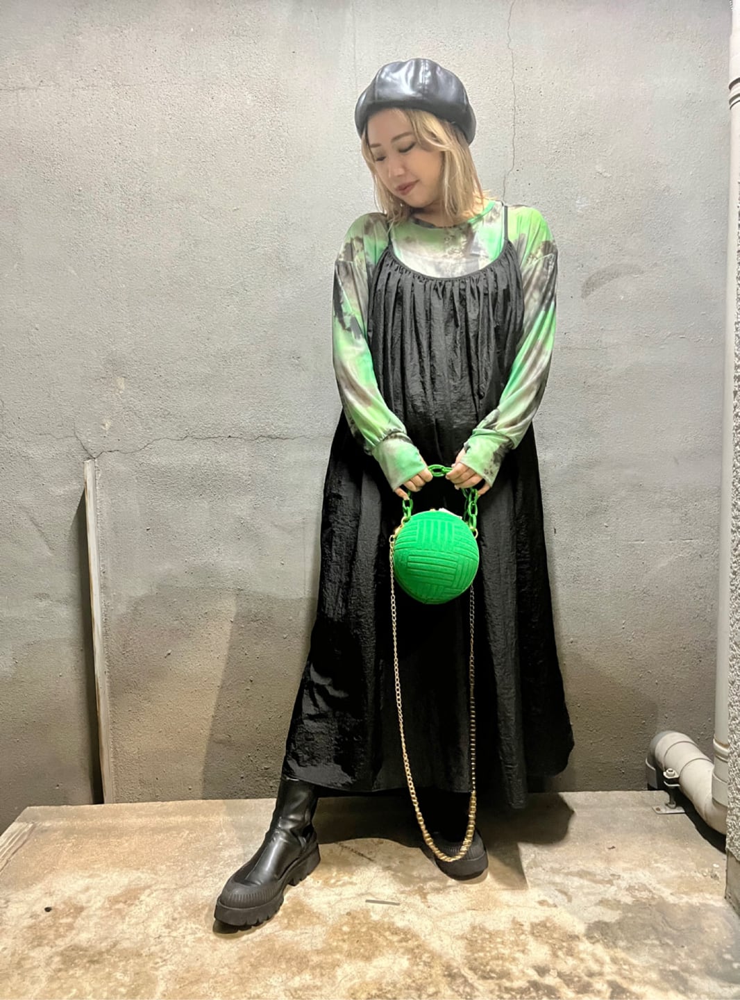 シャカシャカ素材の秋仕様なキャミワンピース。