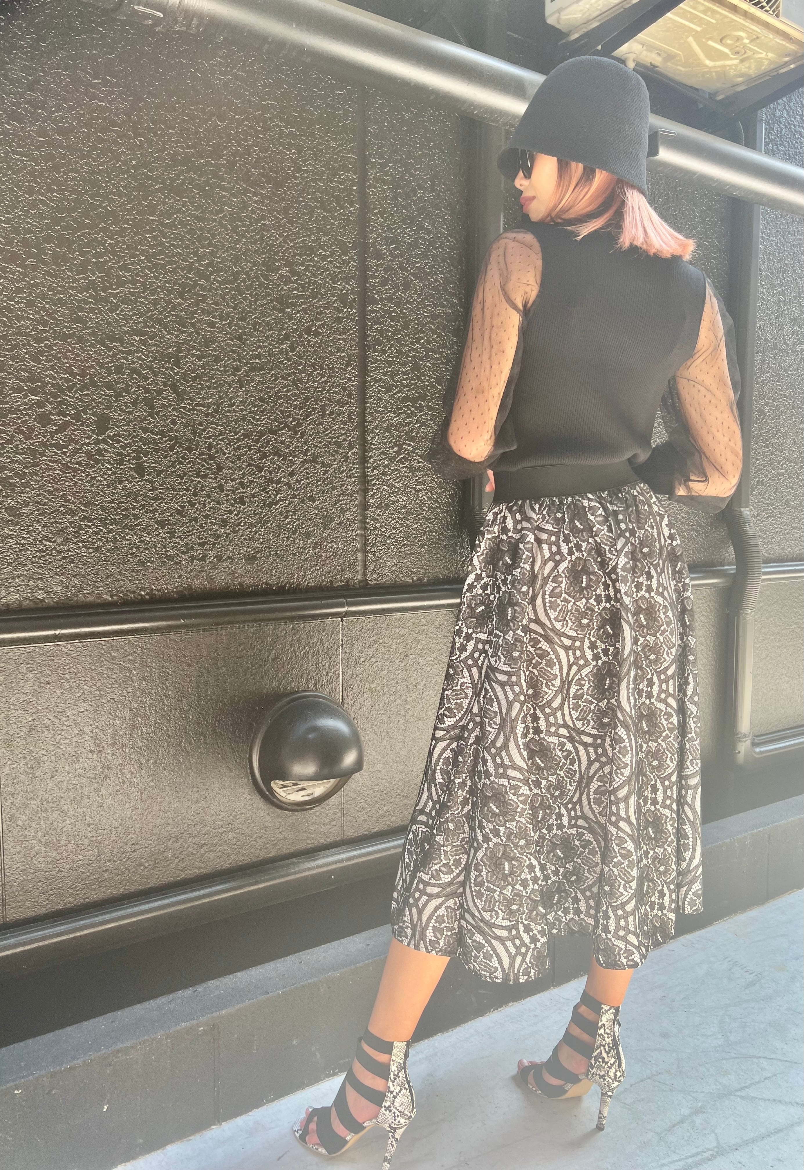 monochro lace flare skirt スカート フレアースカート レース 白黒 バイカラー ゴムウエスト きれいめ