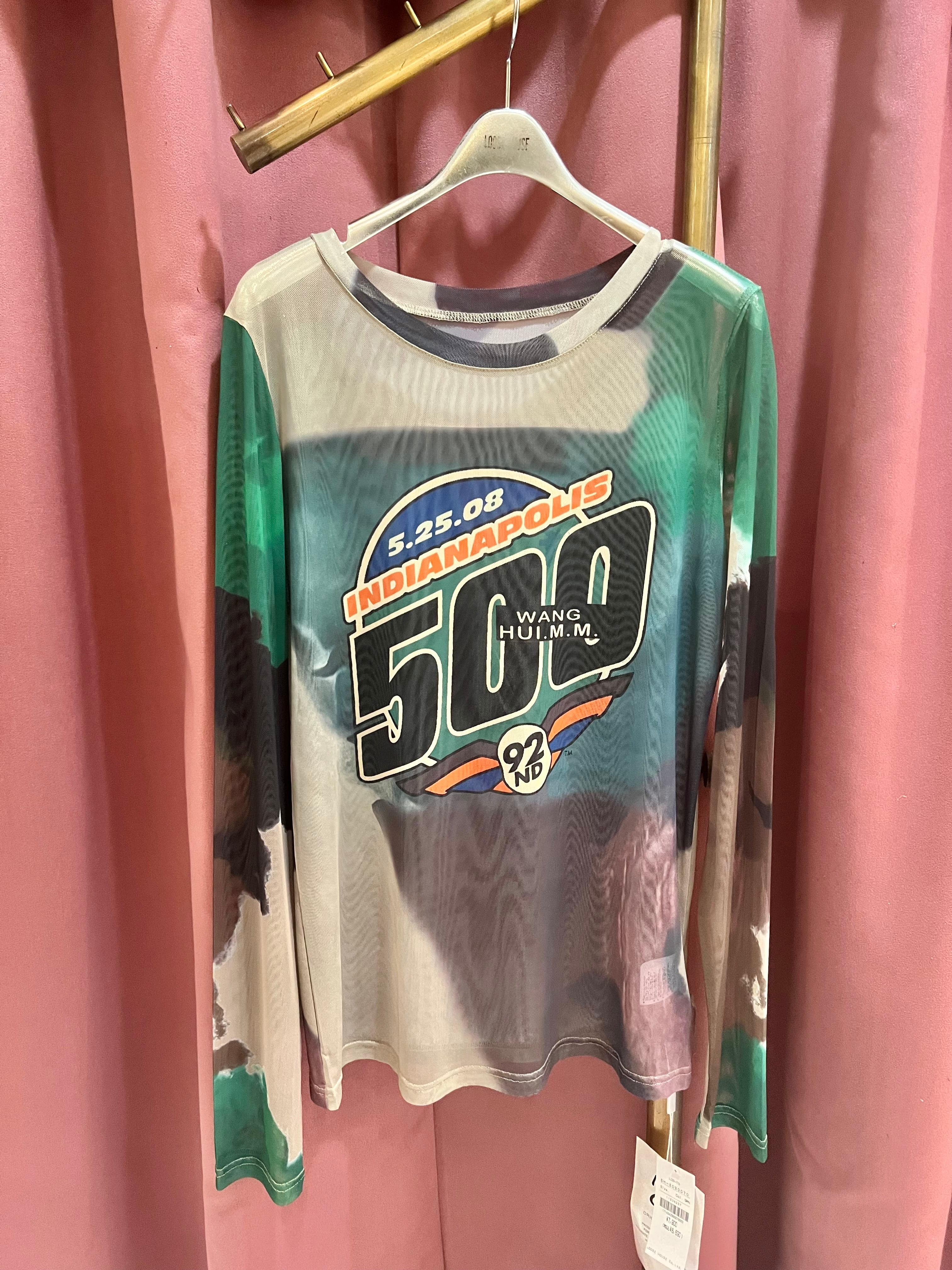 stretch mesh tie-dye × 500 print tops トップス メッシュ ストレッチ 重ね着 カジュアル