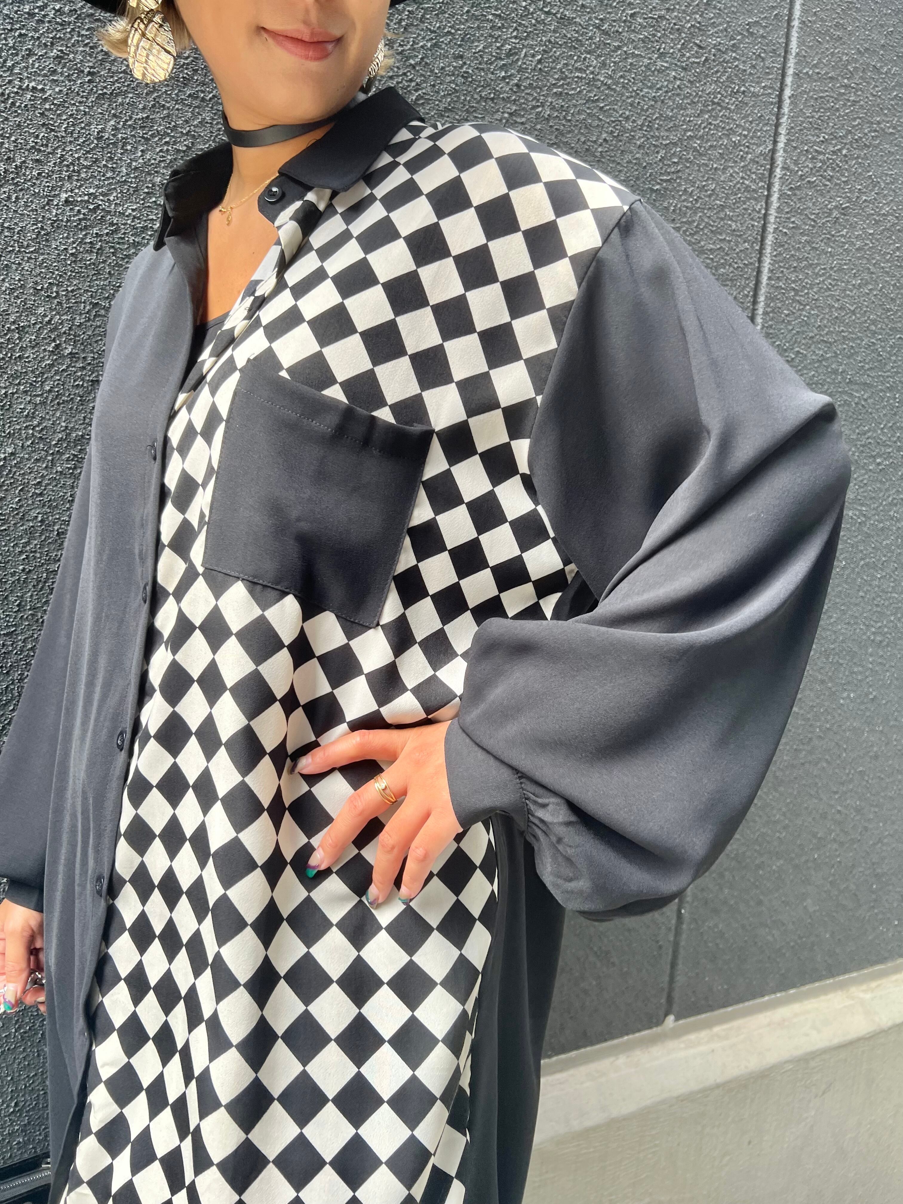 checkered flag pattern change asymmetry shirt one-piece ワンピース ワンピ シャツワンピ チェッカーフラッグ チェック アシンメトリー