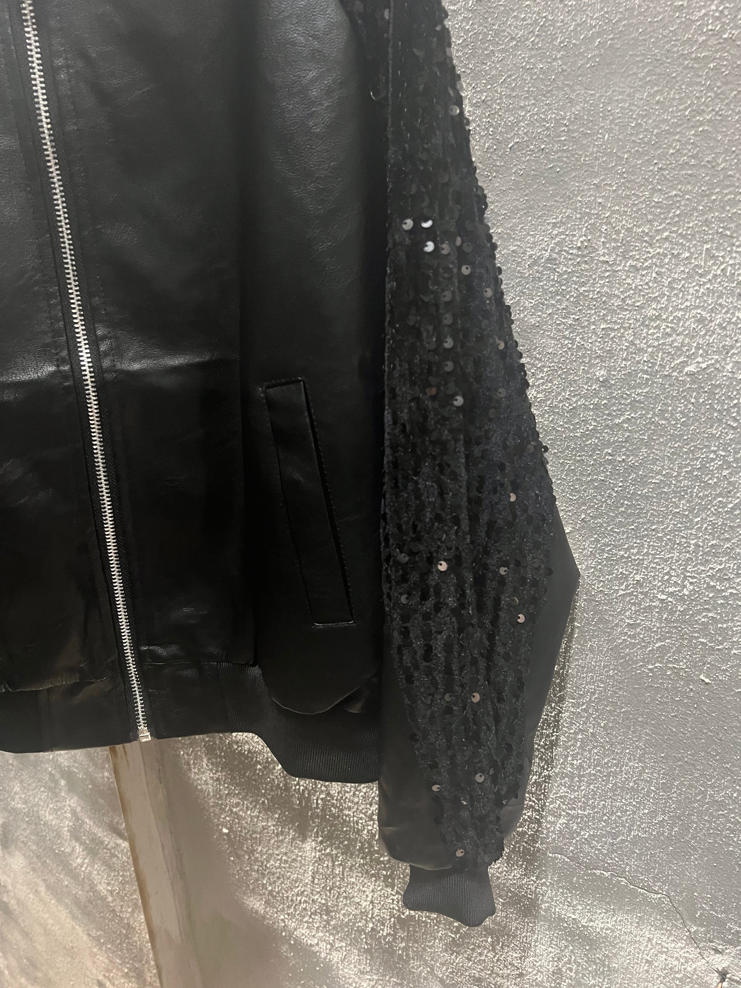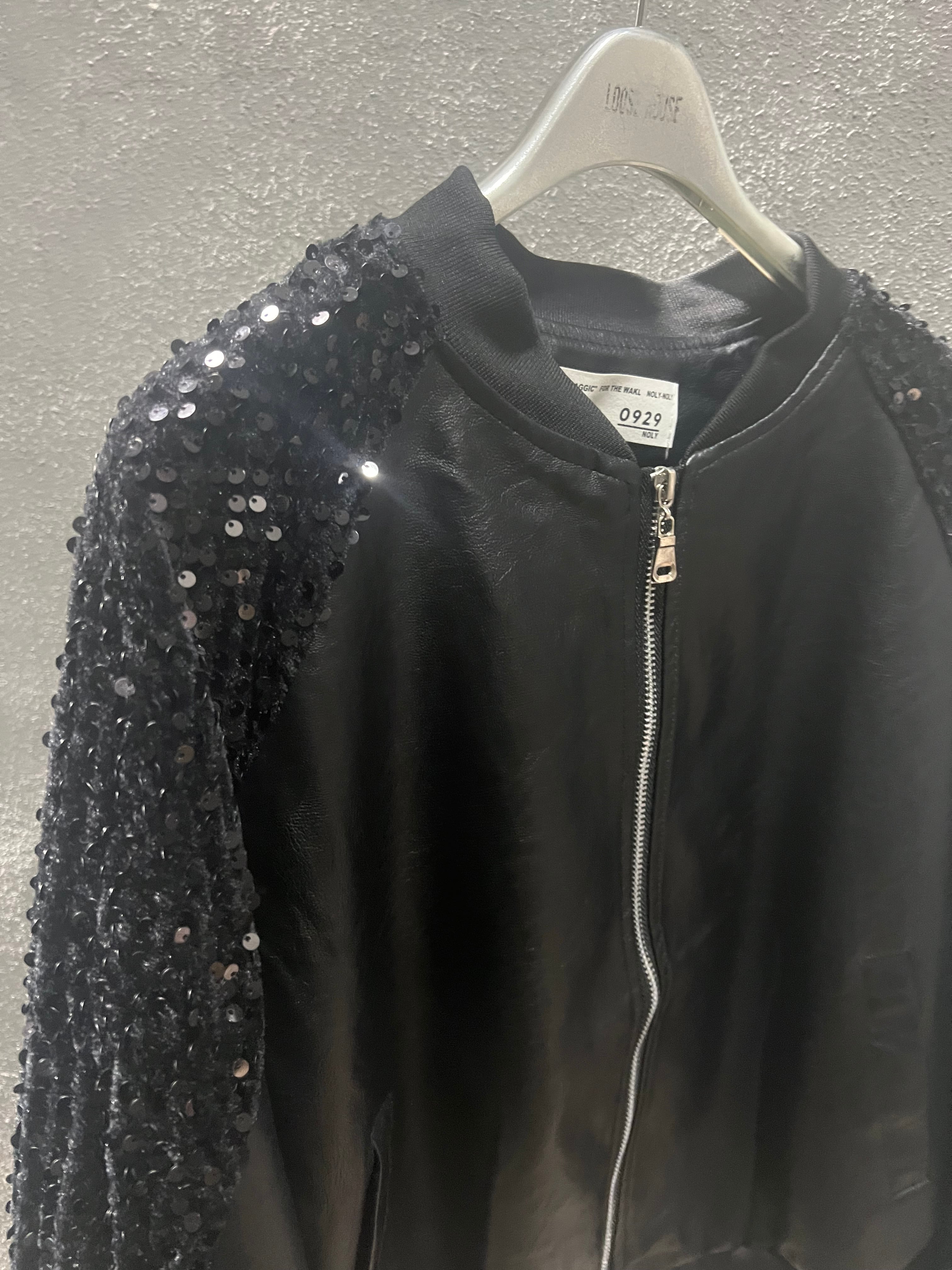 eco leather spangle sleeve design blouson ブルゾン ジャケット スパンコール ジッパー 羽織り