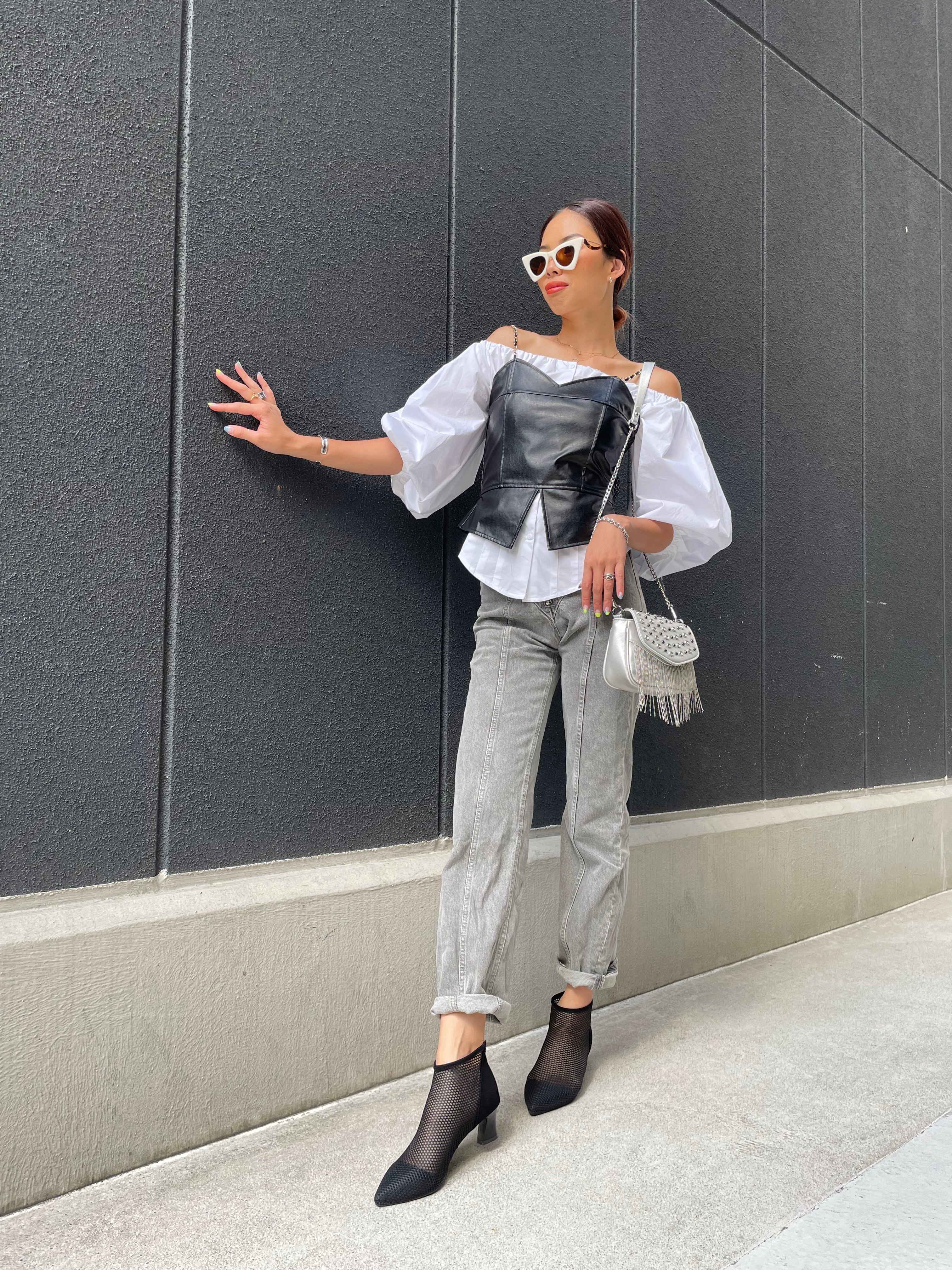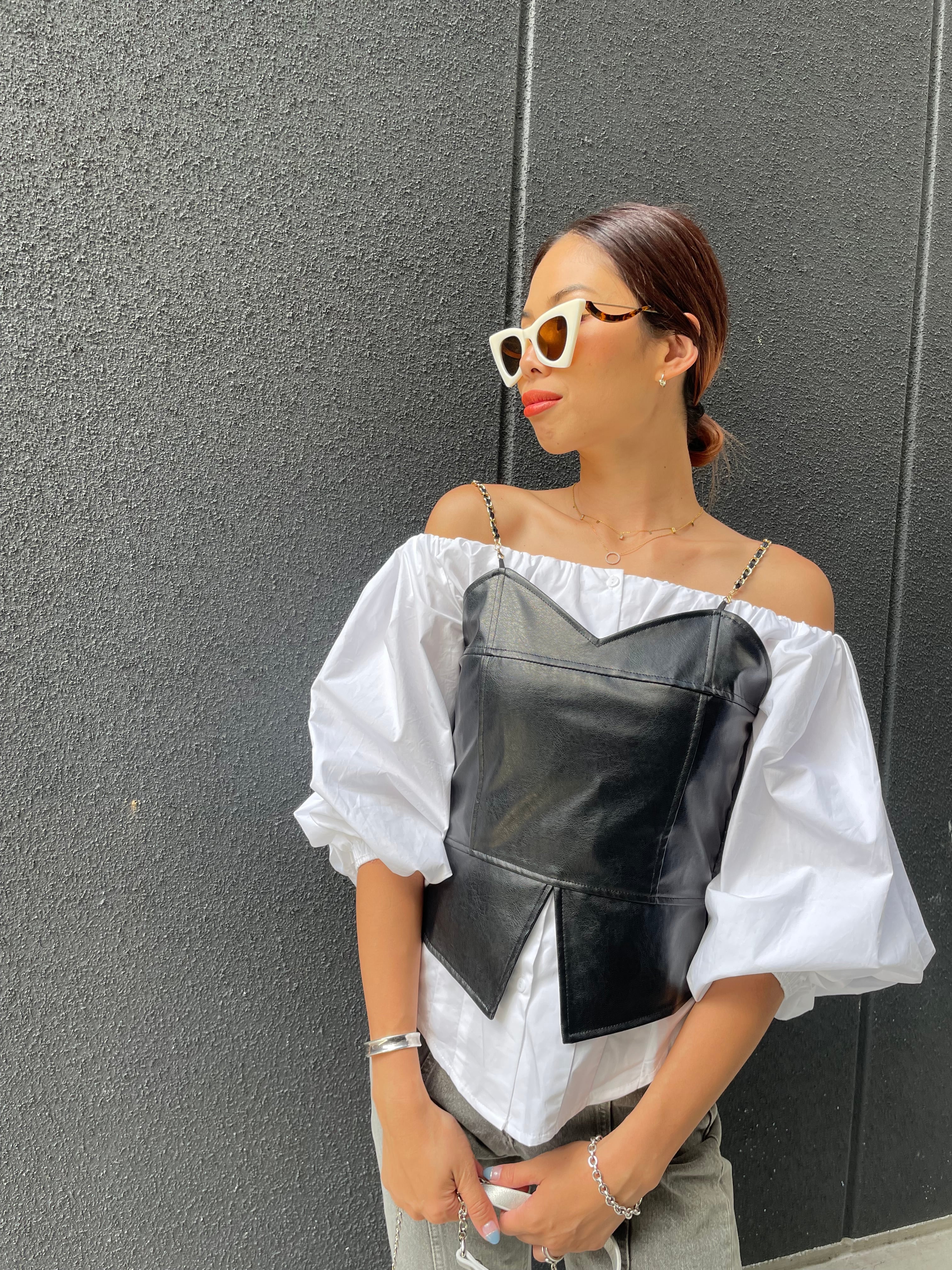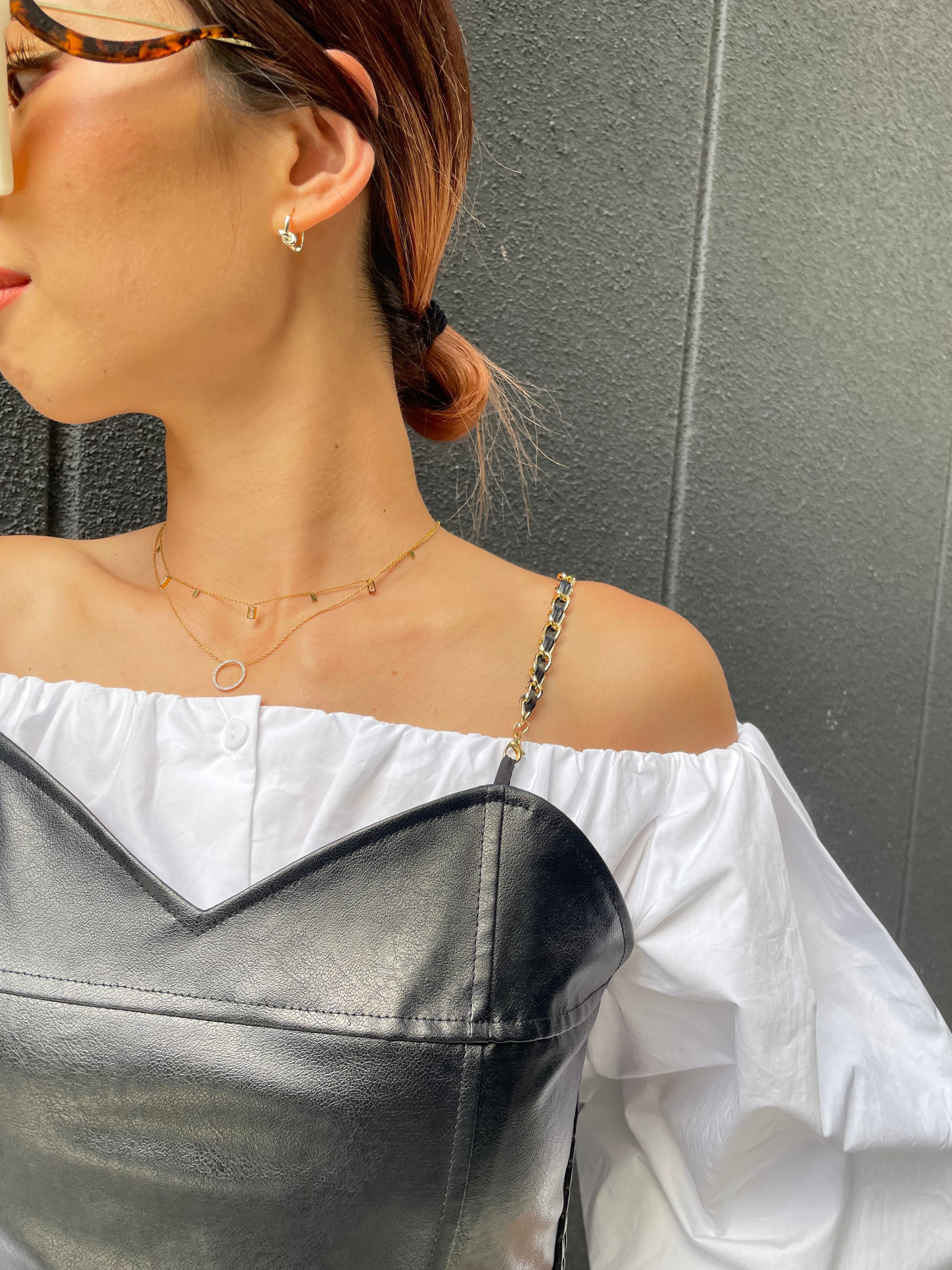 eco leather gold chain strap camisole tops キャミソール トップス エコレザー 合皮 ゴールド ストラップ 重ね着