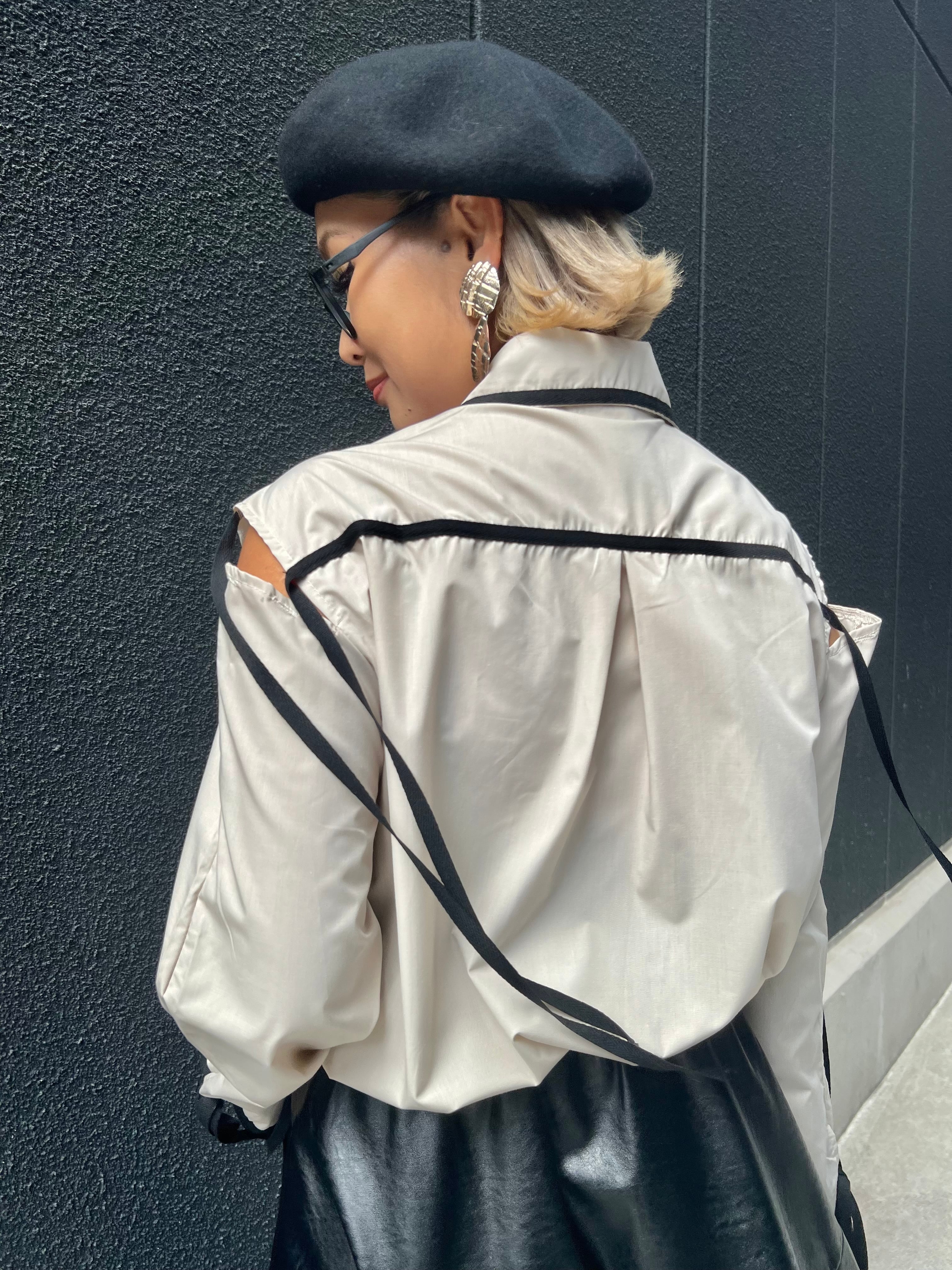 open shoulder tape design shirt シャツ デザインシャツ パイピング 肩開き テープ バイカラー