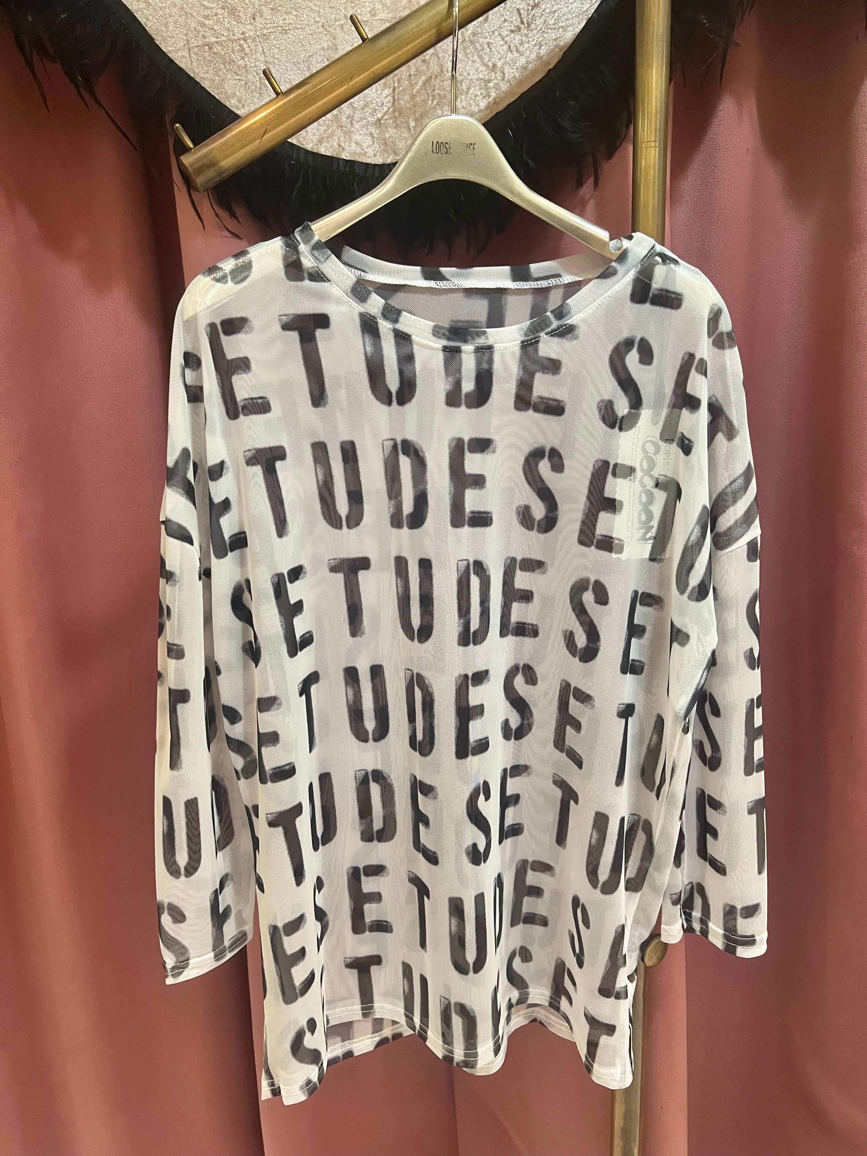 alphabet print stretch mesh tops トップス メッシュ メッシュトップス アルファベット 透け感 重ね着