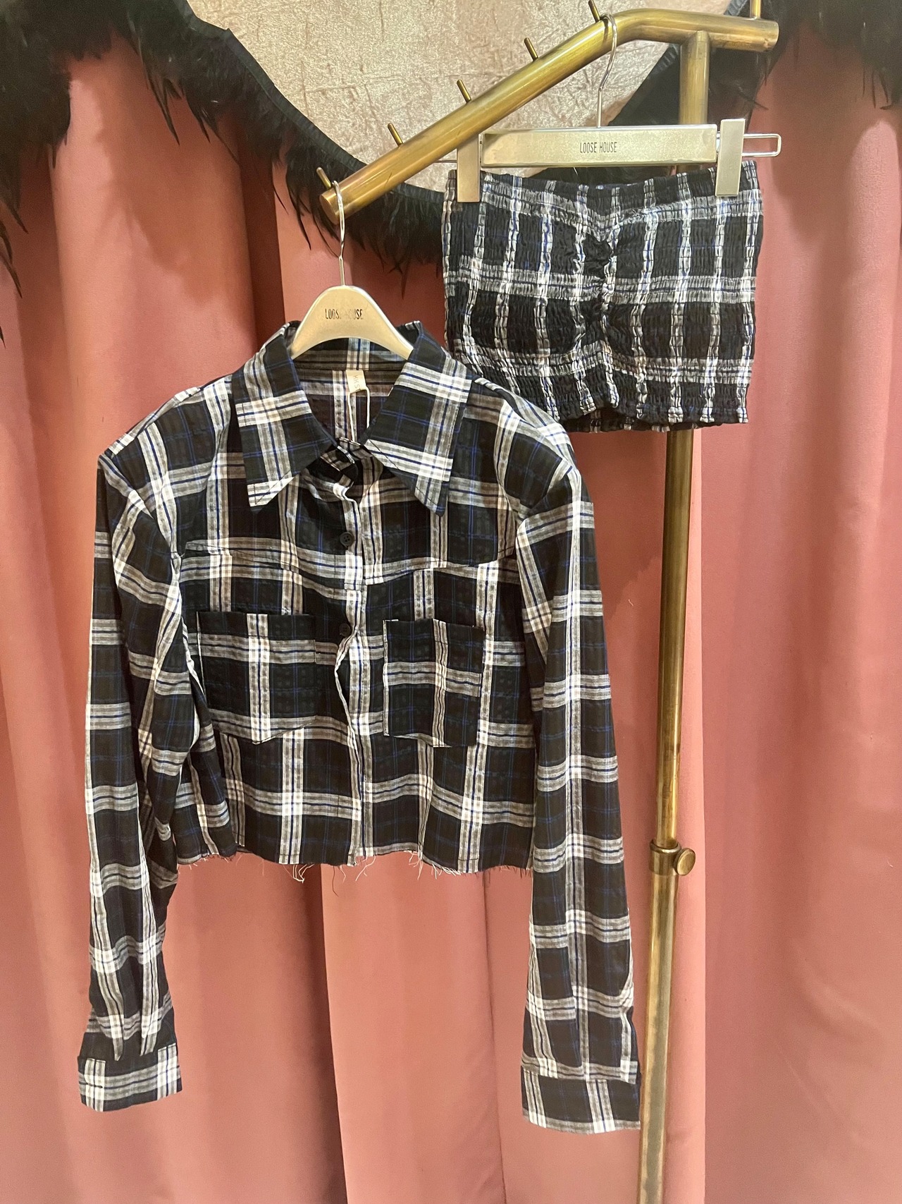 check pattern shirt × bra top 2P シャツ ブラトップ ベアトップ チェック 2点セット セット