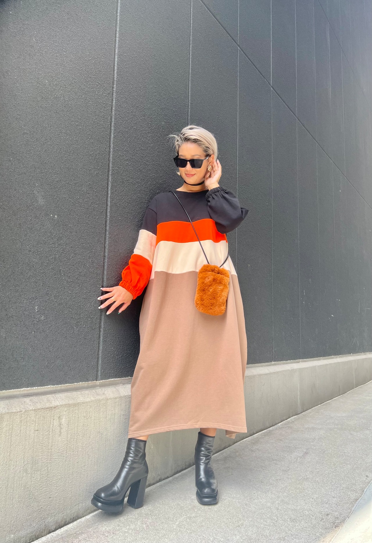 color block change loose-fit one-piece ワンピース ワンピ スウェット 裏が ゆったりめ オーバーサイズ カラー 配色