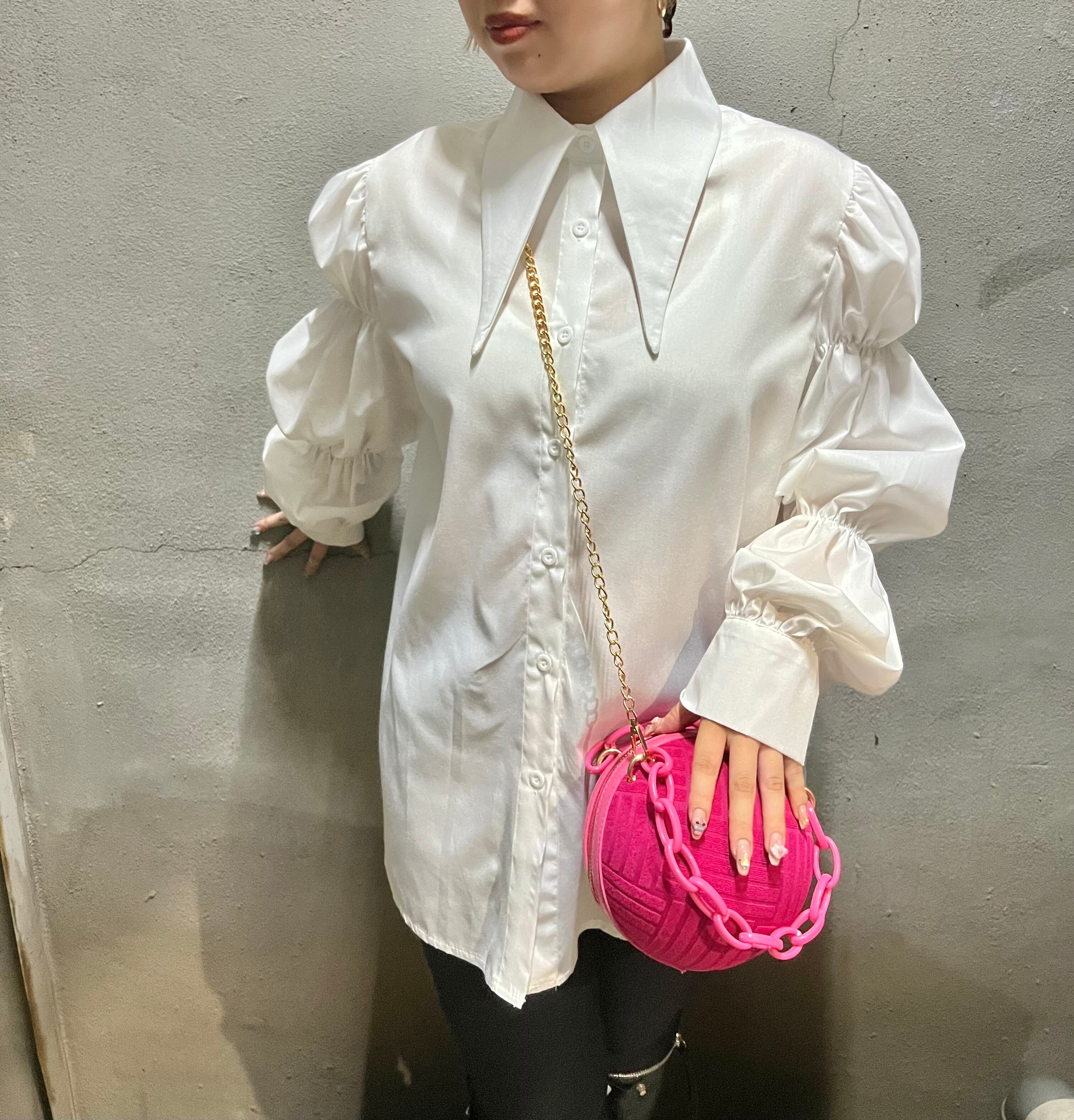 shirring volume sleeve big collar shirt シャツ デザインシャツ デザインスリーブ 襟