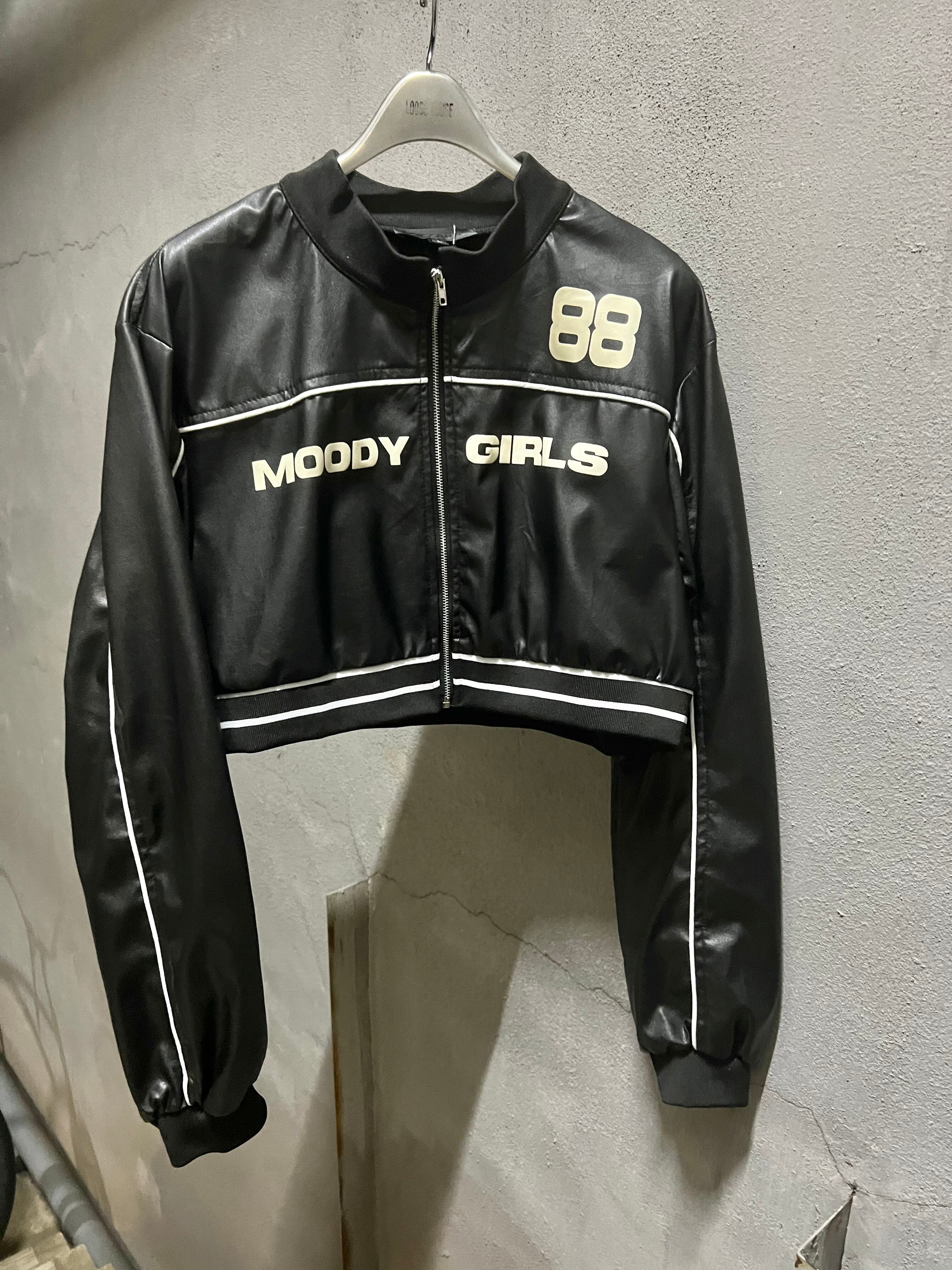 シンプルかつスタイリッシュなデザインが特徴のエコレザーショート丈ブルゾン!