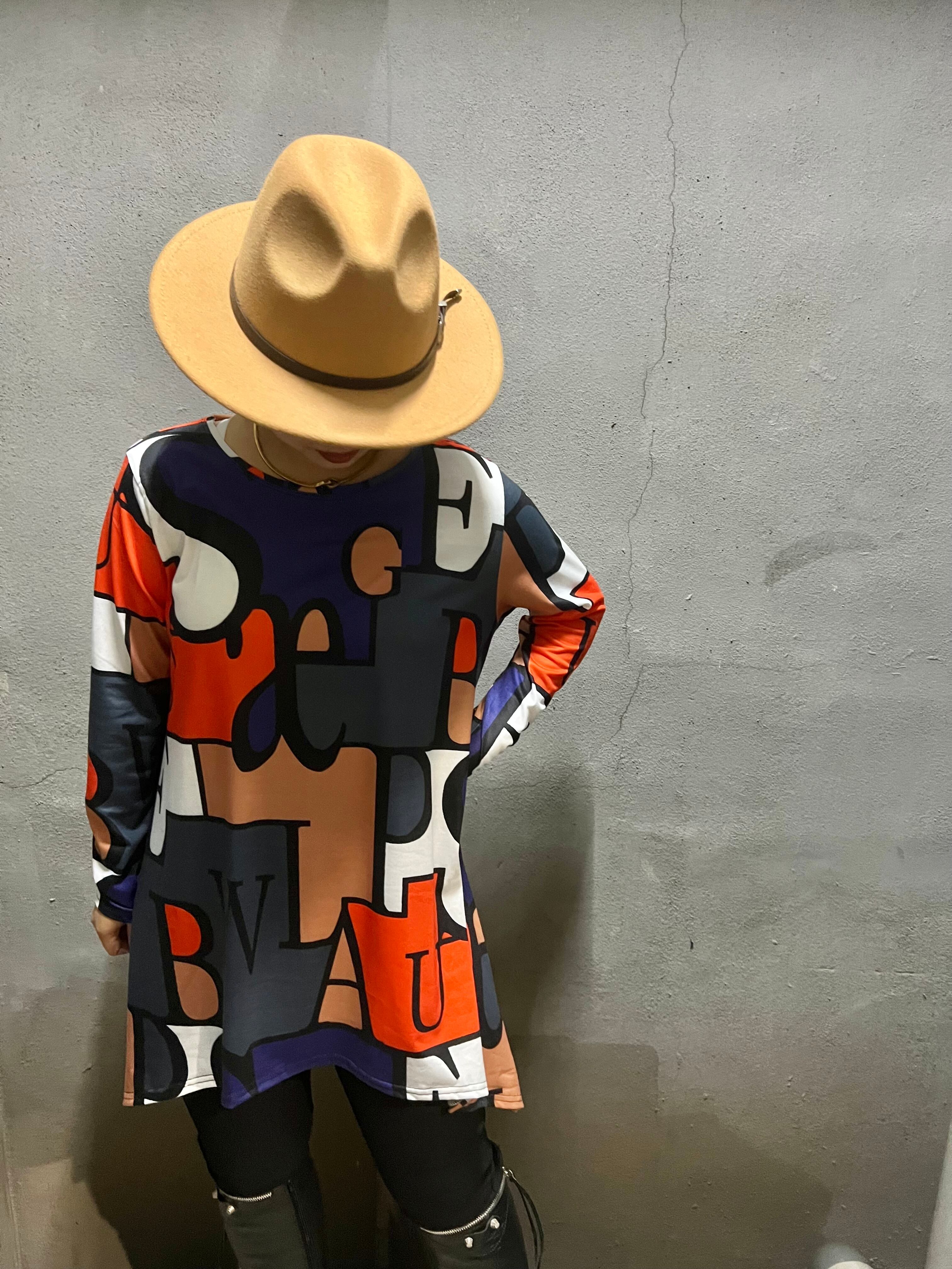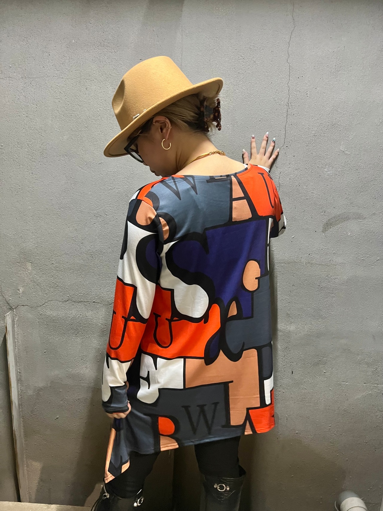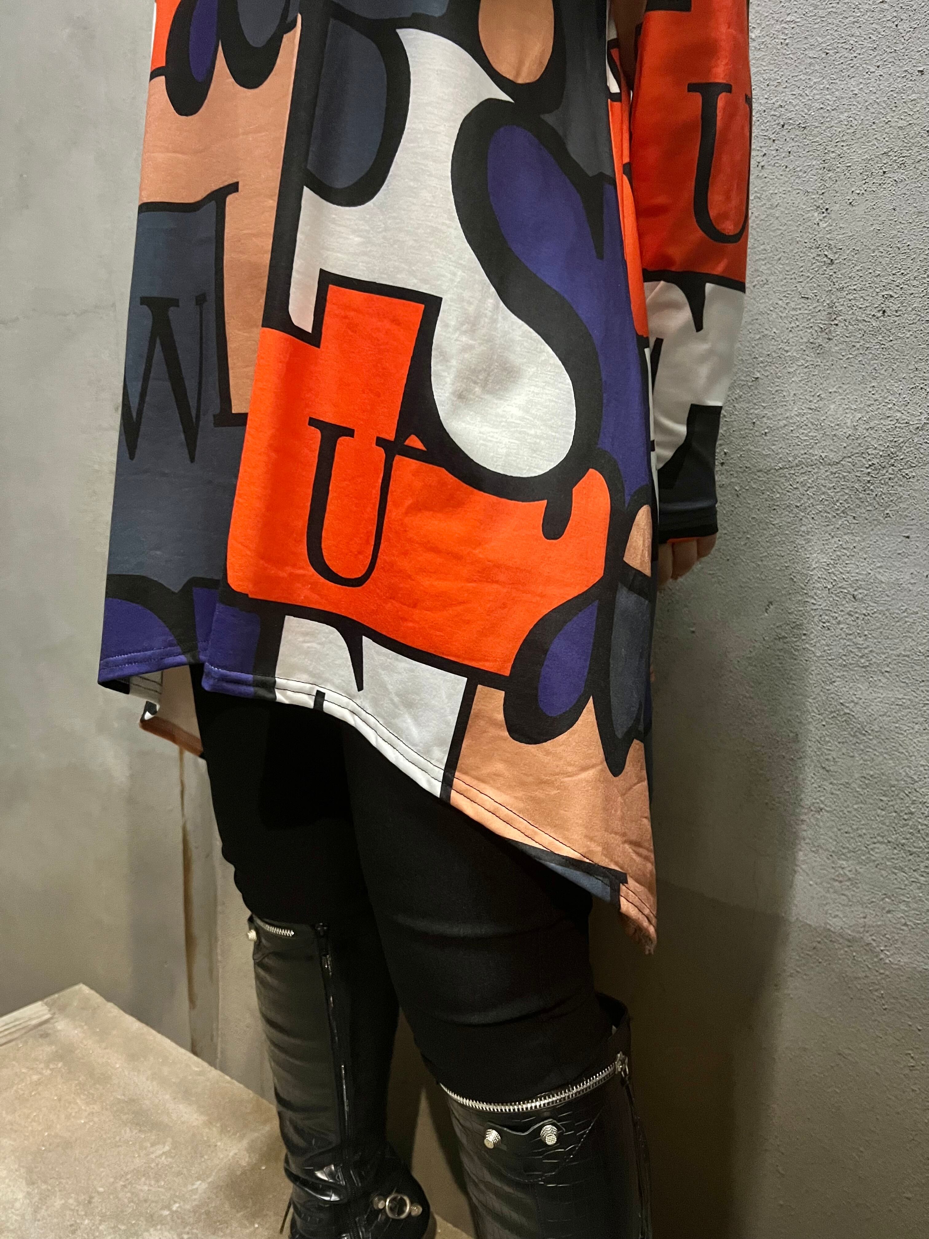 irregular hem A-line colorful print tunic チュニック トップス Aライン 柄チュニック イレギュラー