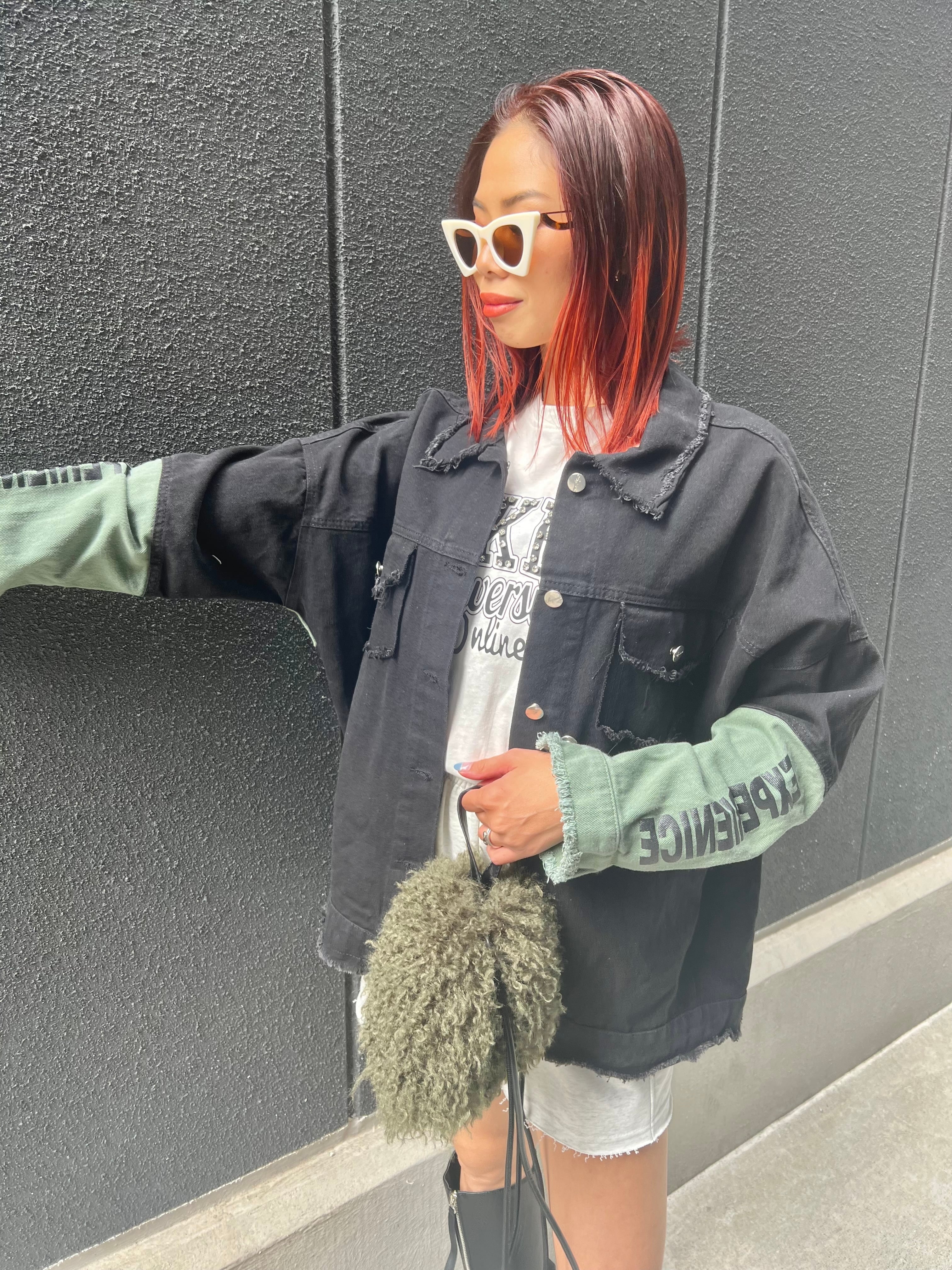 paint design black denim jacket ジャケット デニム ブラックデニム オーバーサイズ カジュアル ペイント