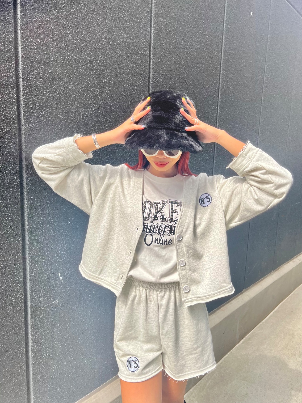 V-neck cardigan × short pants set up 2P セットアップ 2点セット Vネック カーディガン ショートパンツ スポーティ カジュアル