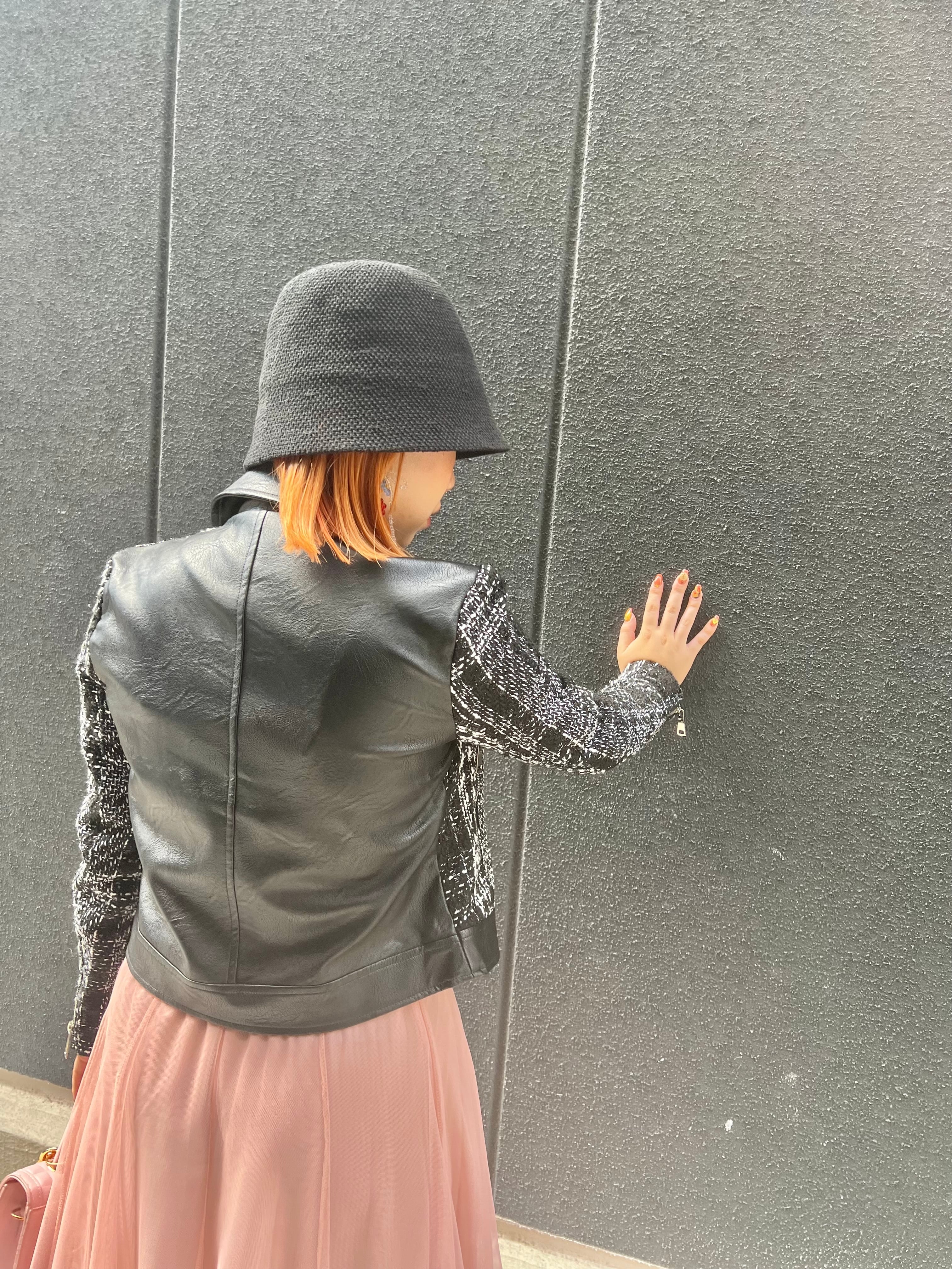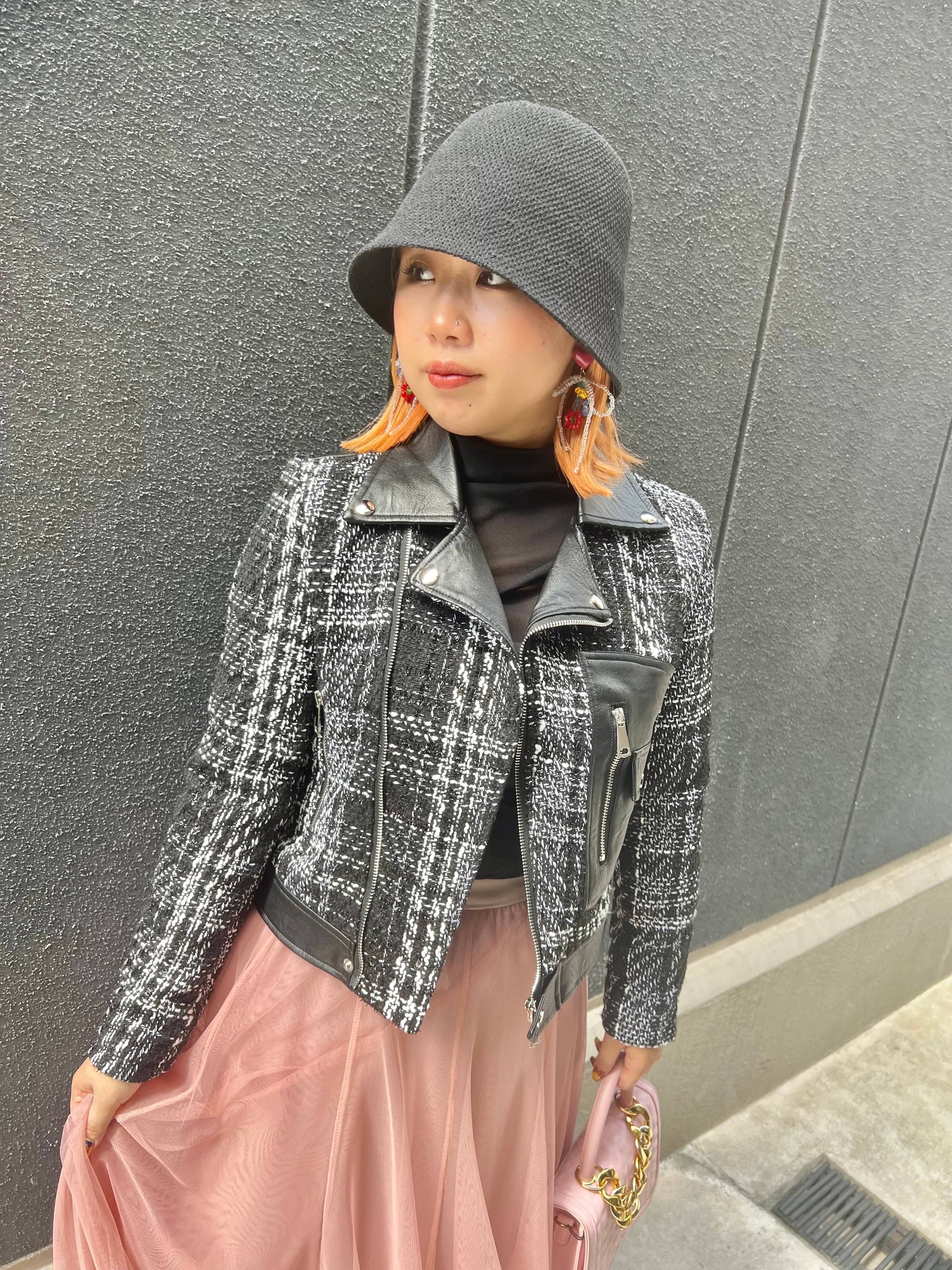 ツィードがアクセントになり、個性的な着こなしを楽しむことができます。