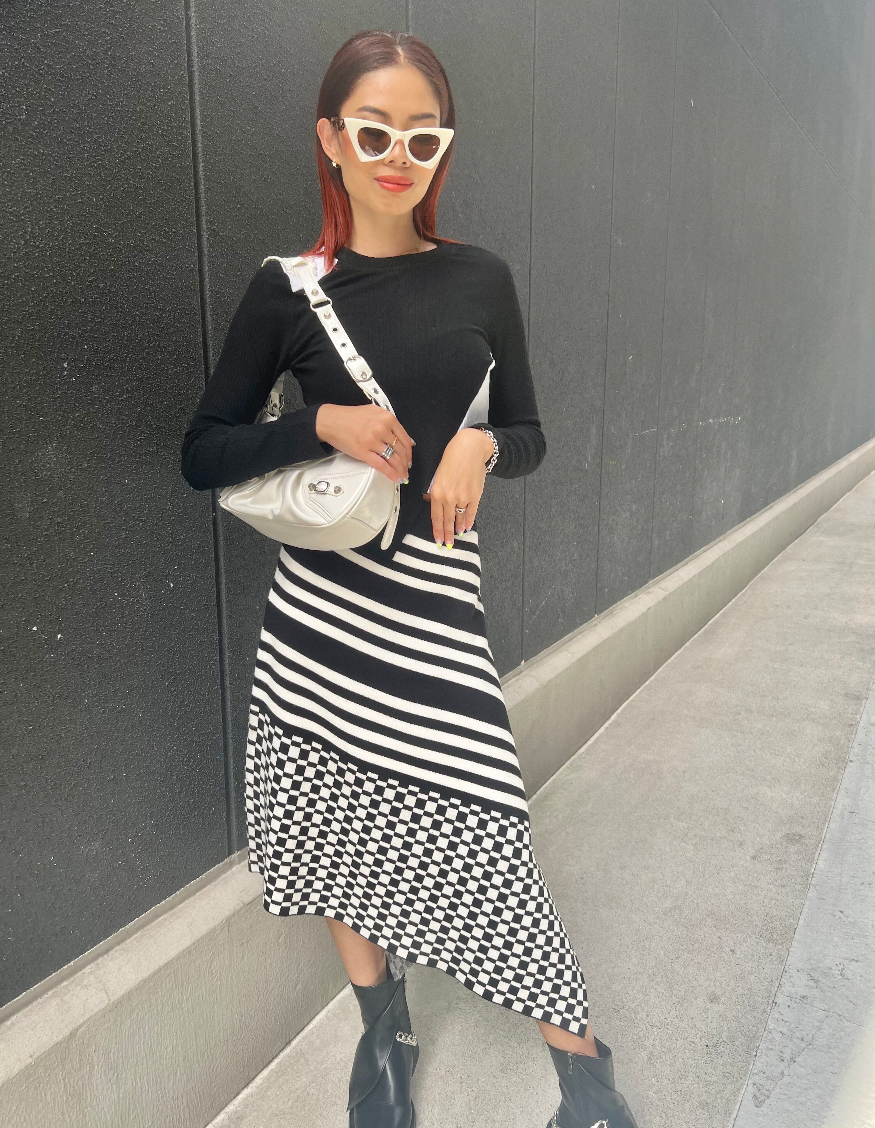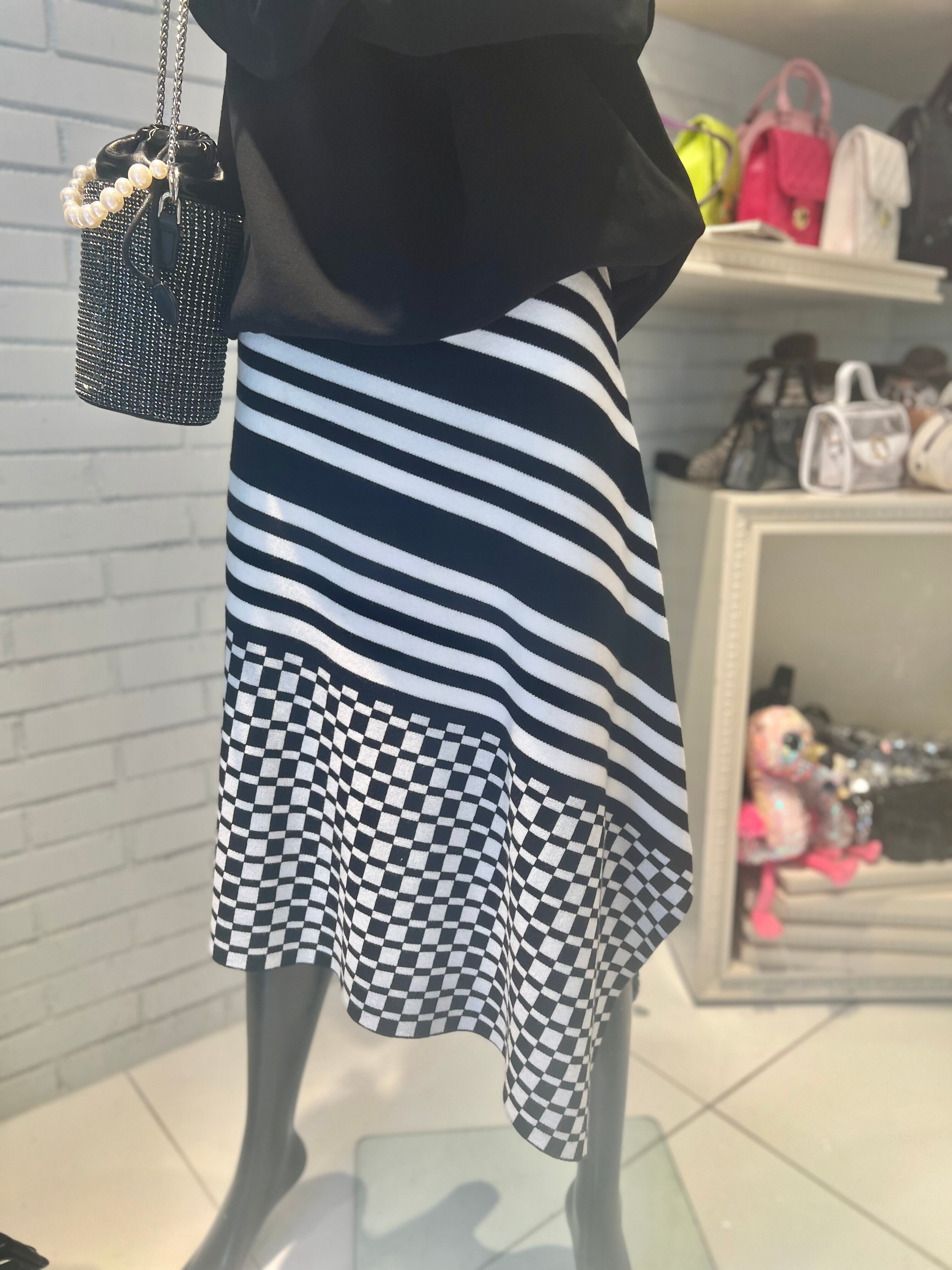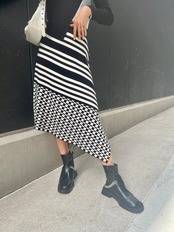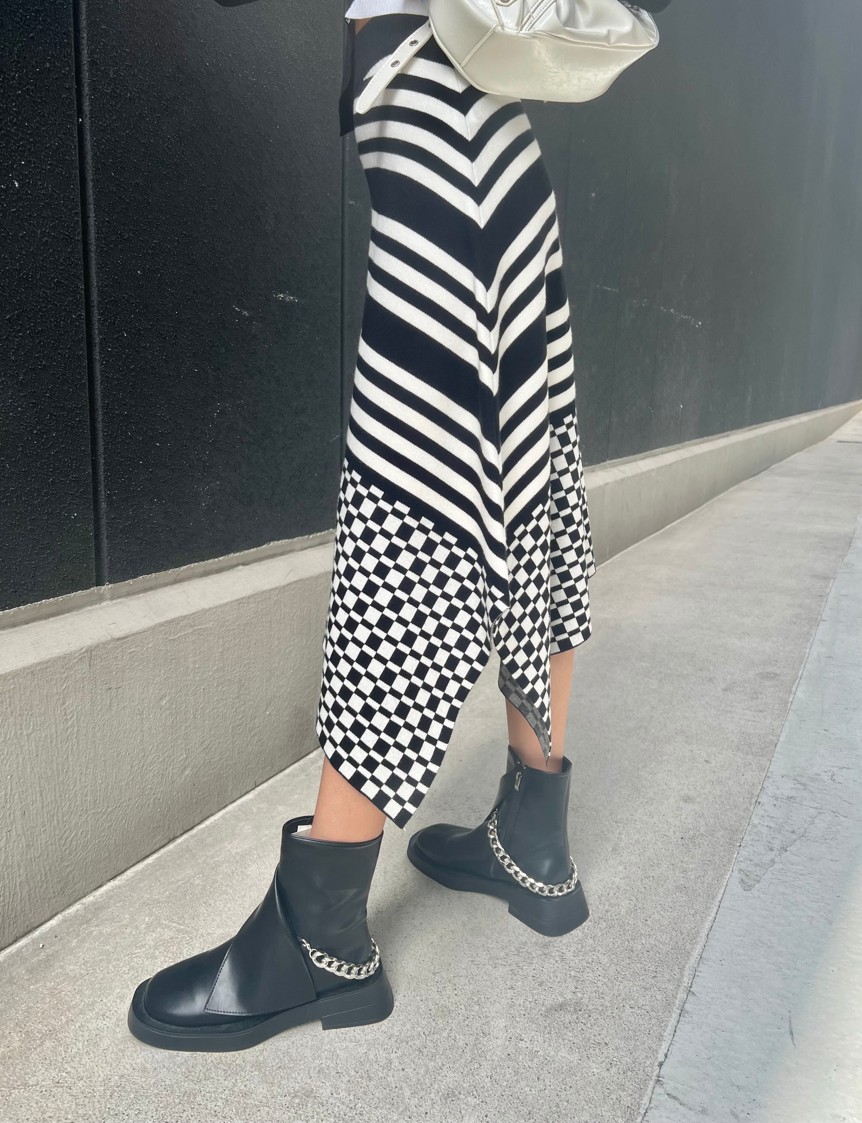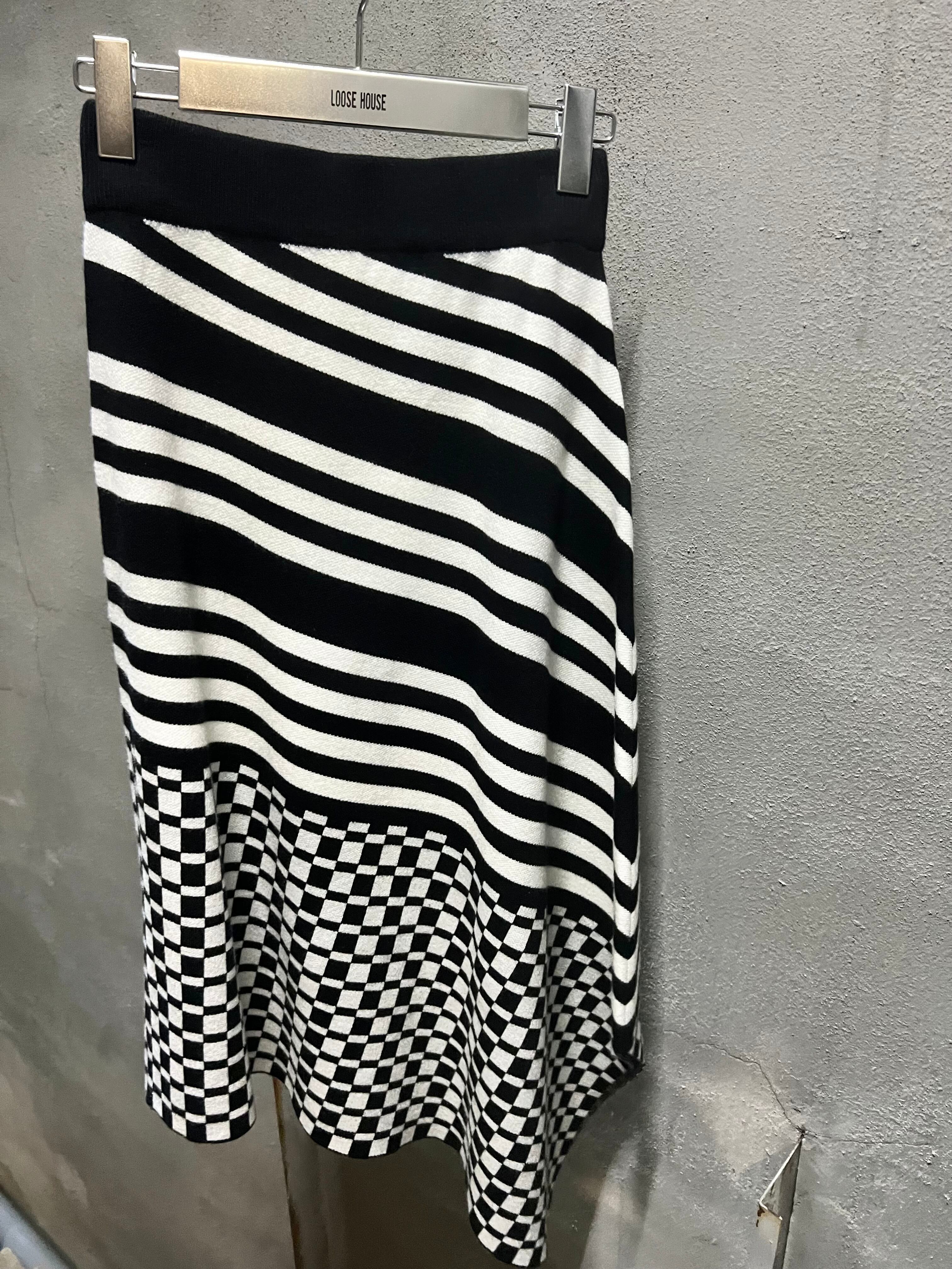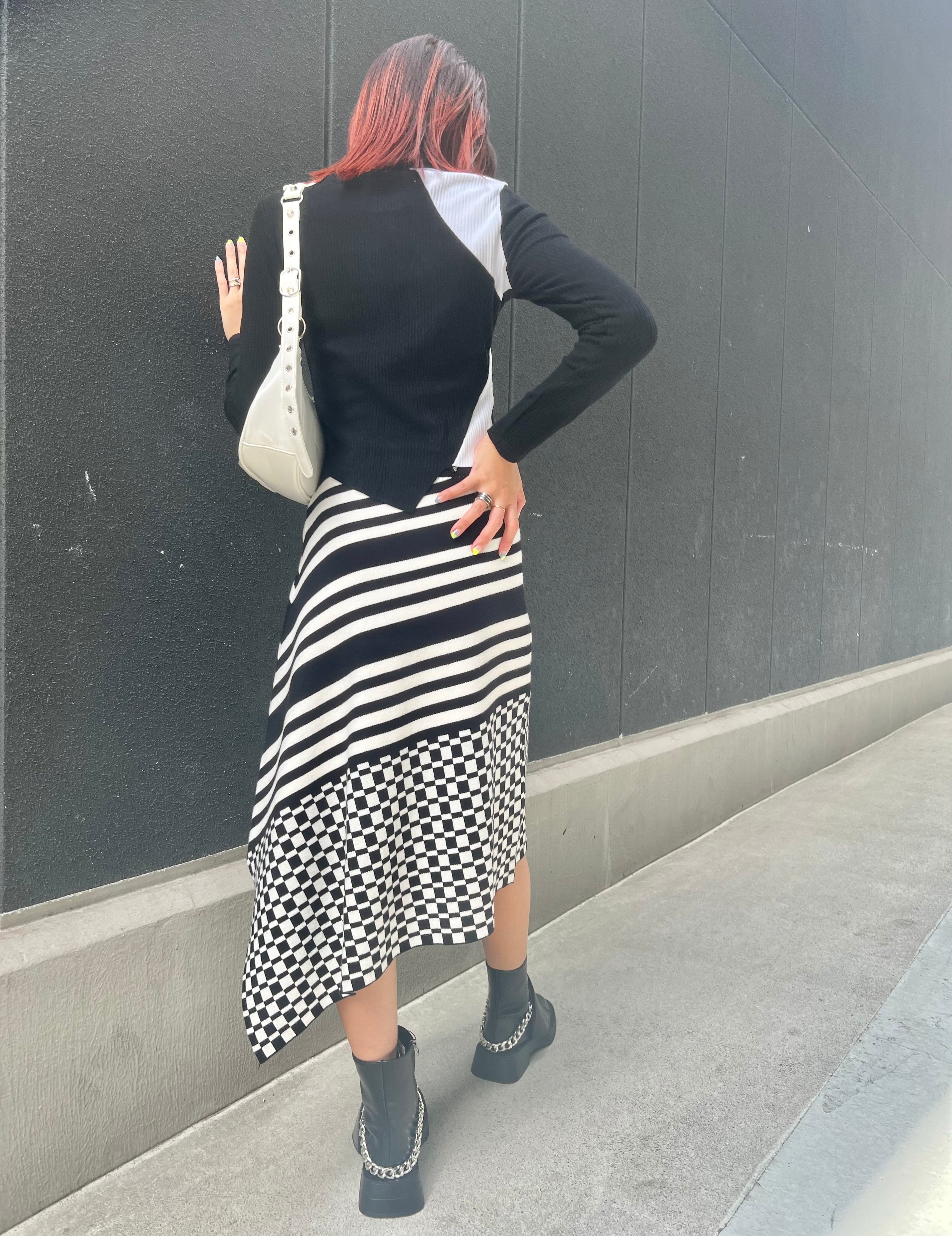 pattern knit bias design asymmetry skirt スカート ニット アシンメトリー ボーダー バイカラー 白黒