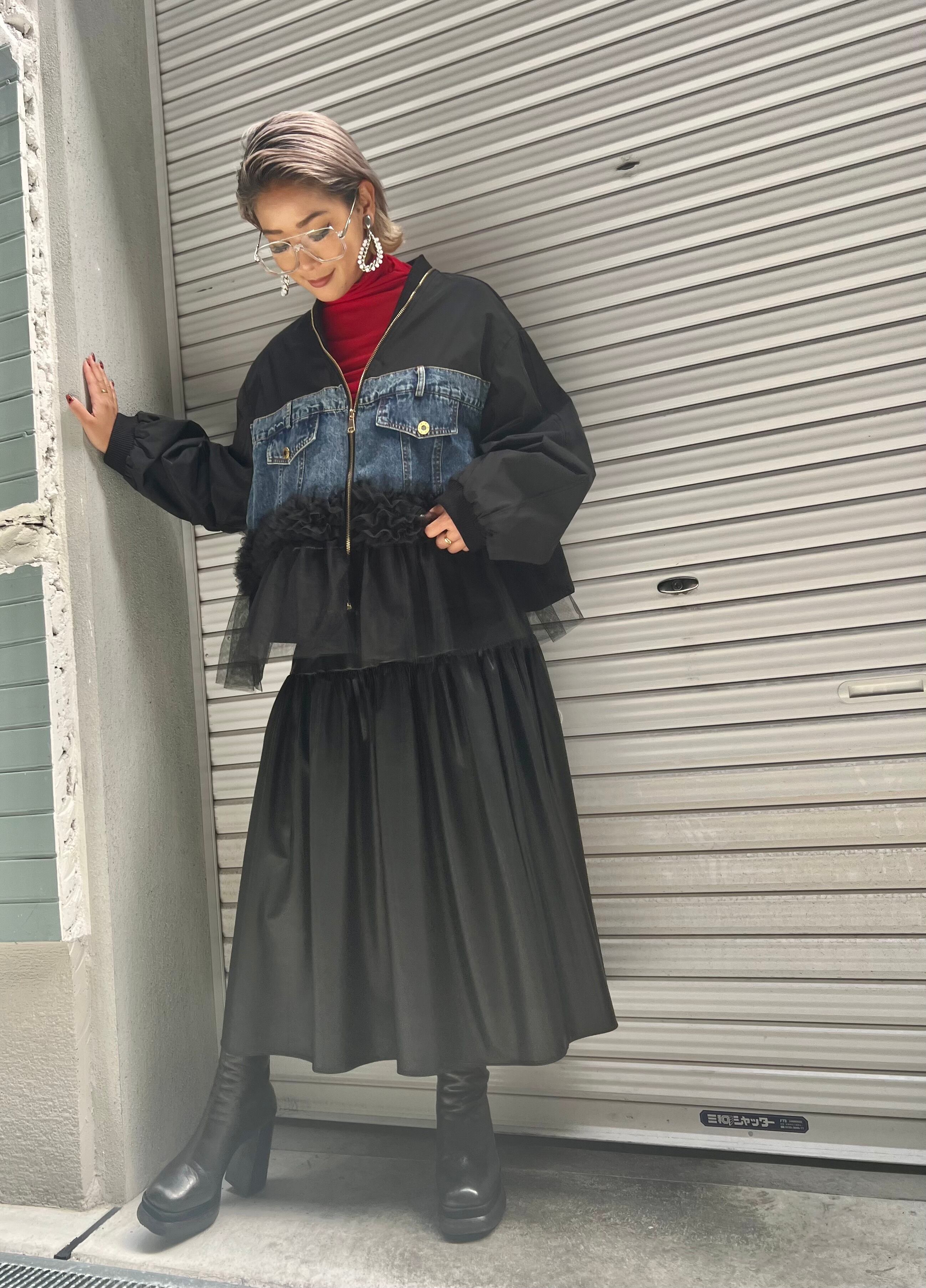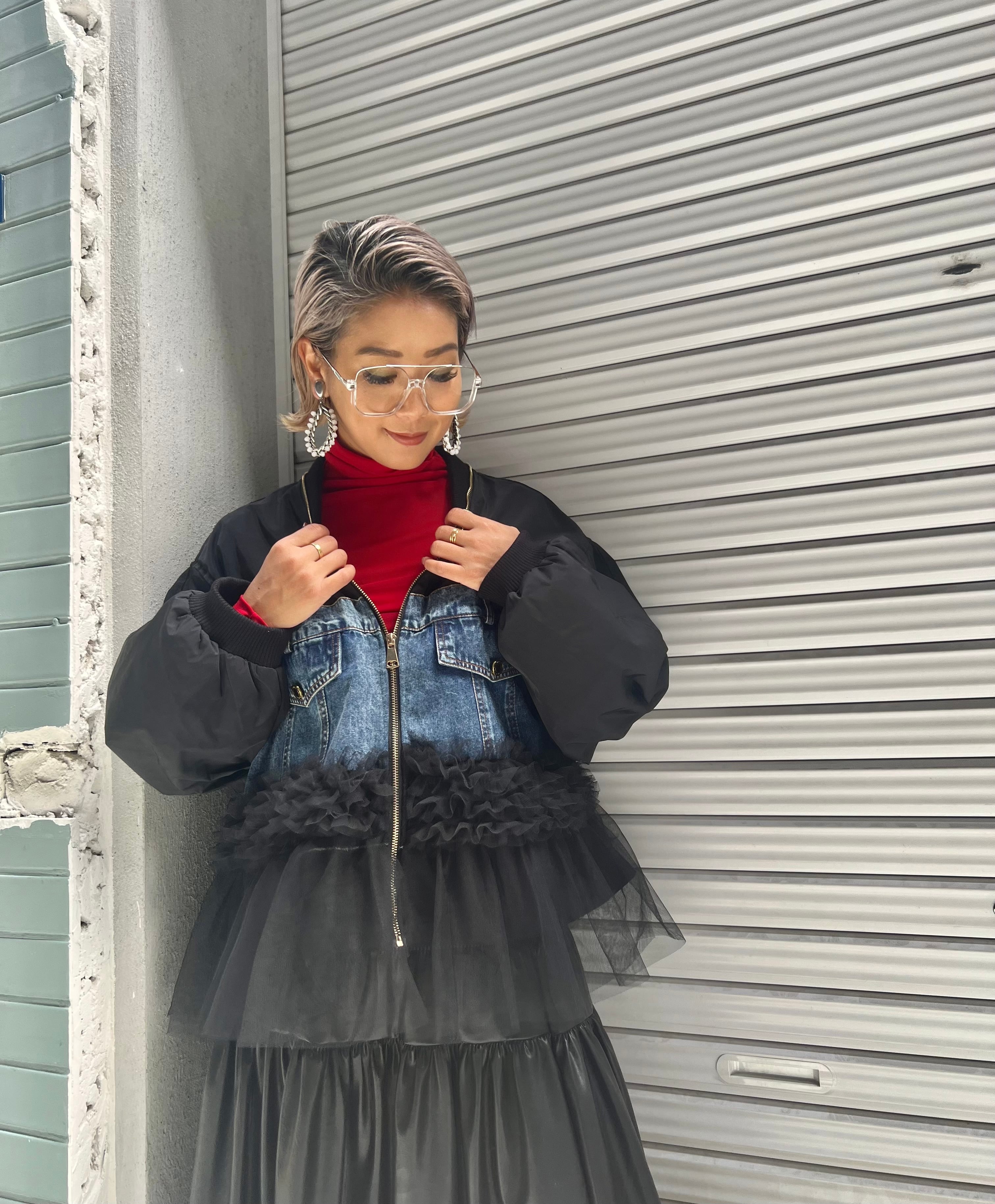 denim × tulle zip design jacket ジャケット デザインジャケット デニム チュール 個性的 アウター 羽織