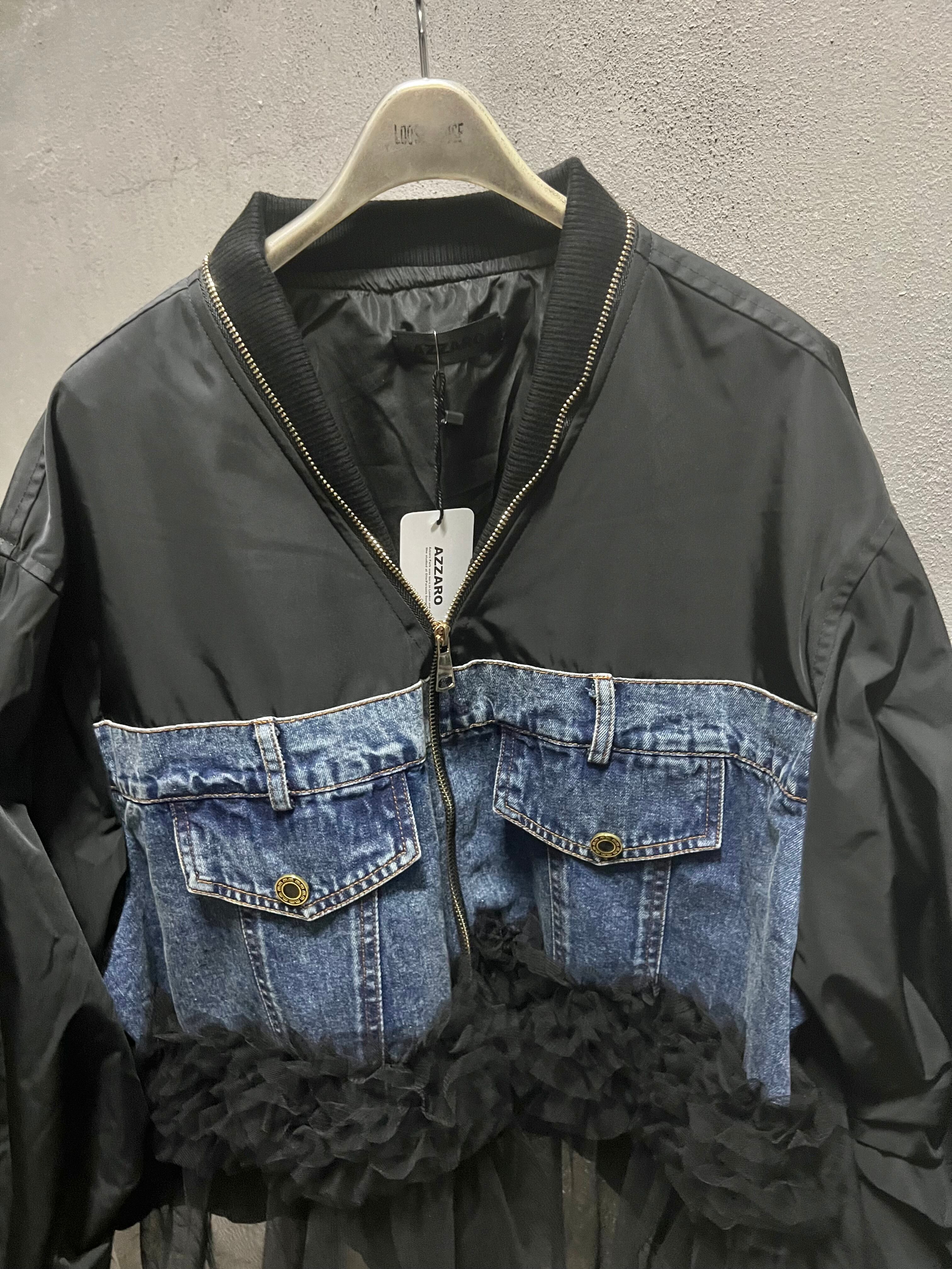 個性的なデザインが魅力のデニム x チュール ジップデザインジャケットが新登場しました!
