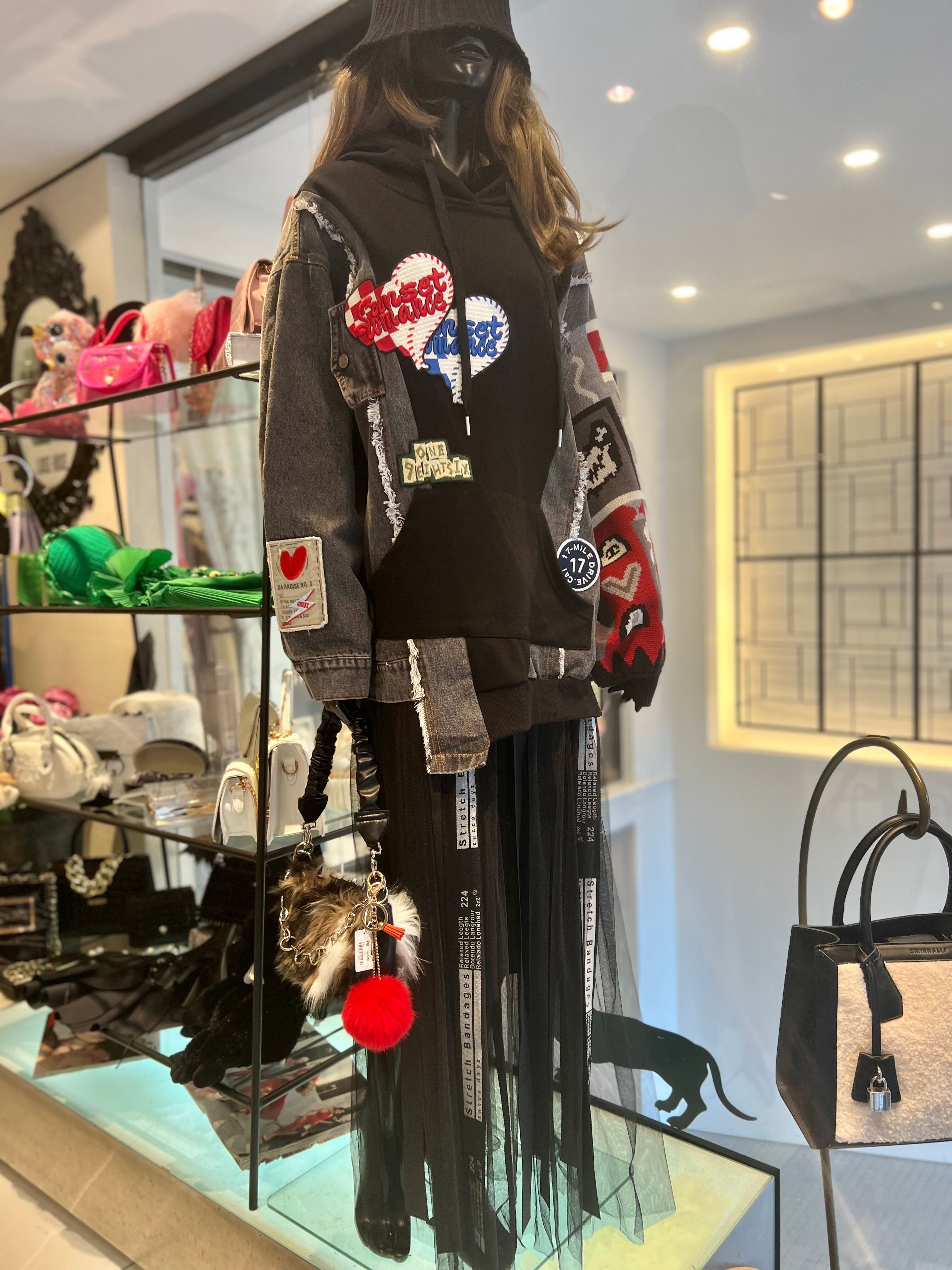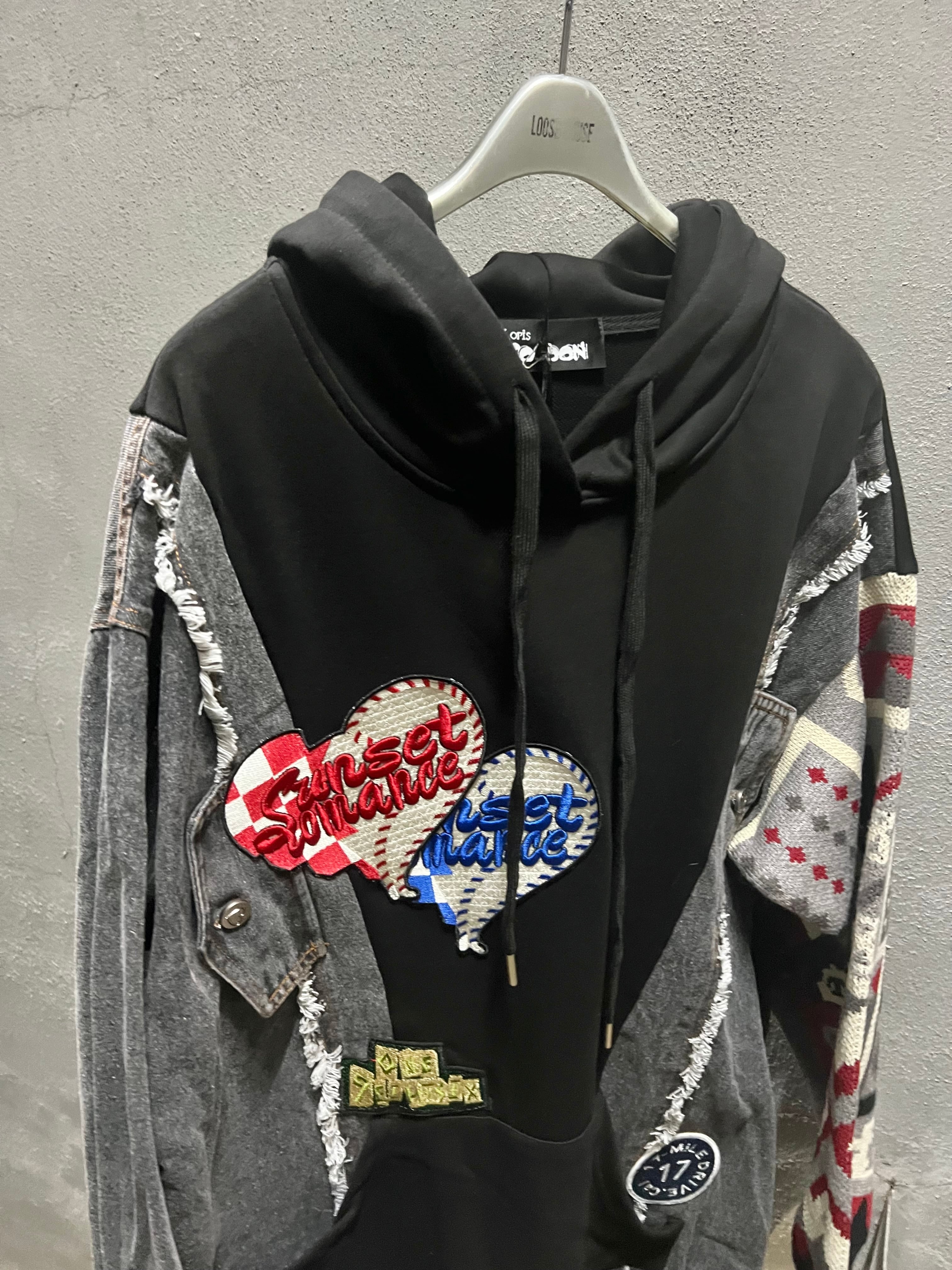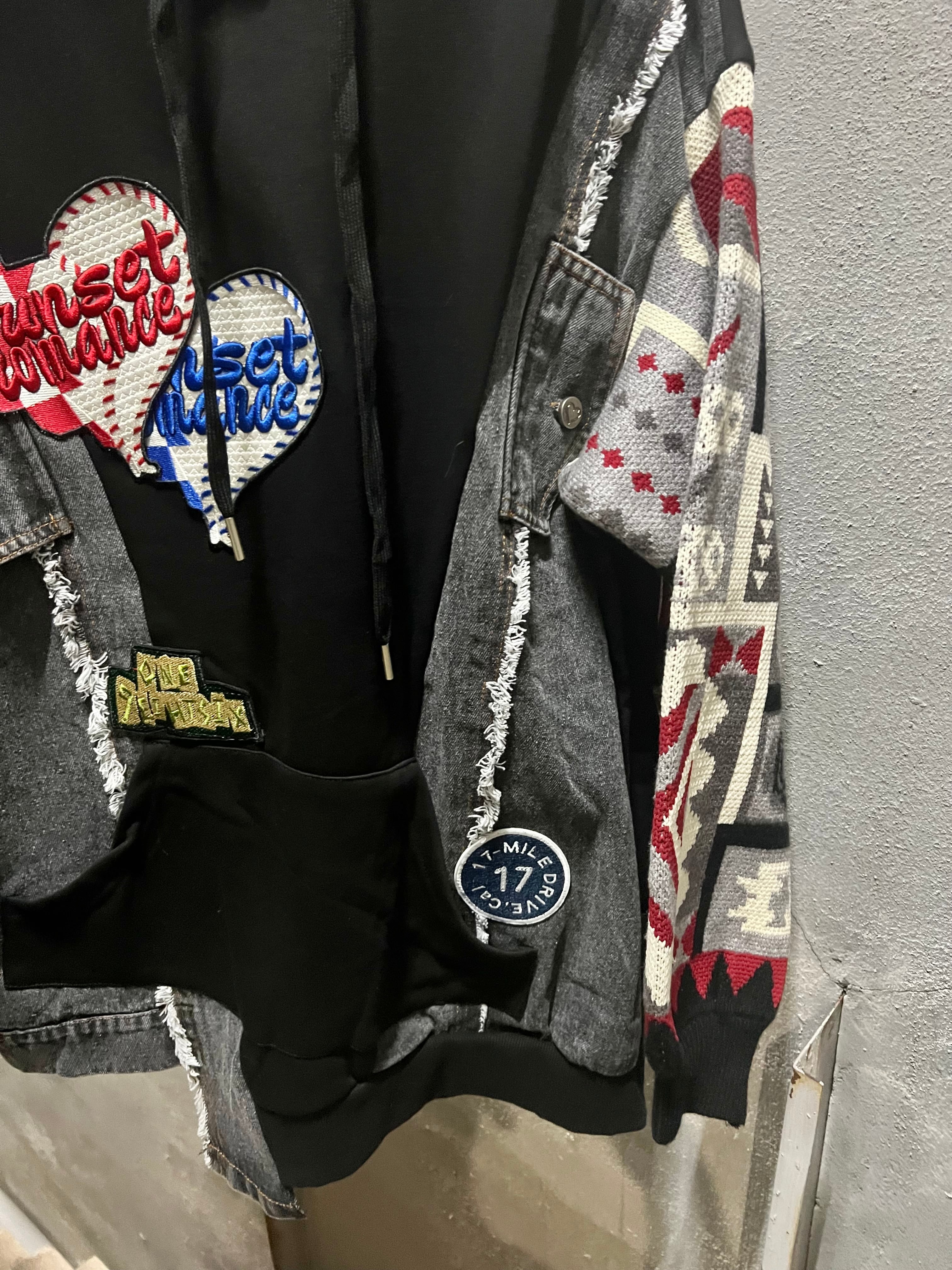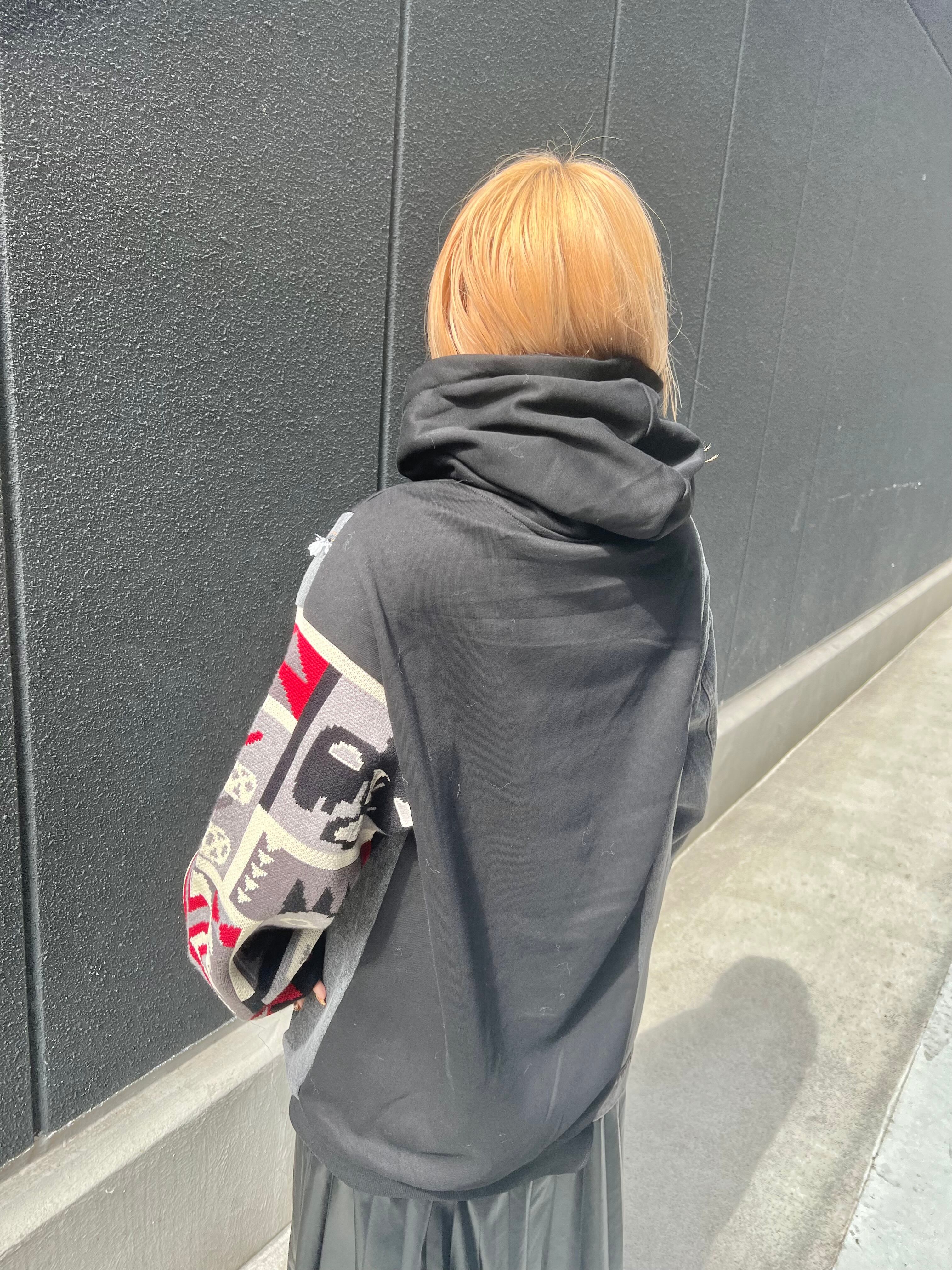 デニム×ニットのリメイク感漂うデザインが個性的なチュニックフーディー!