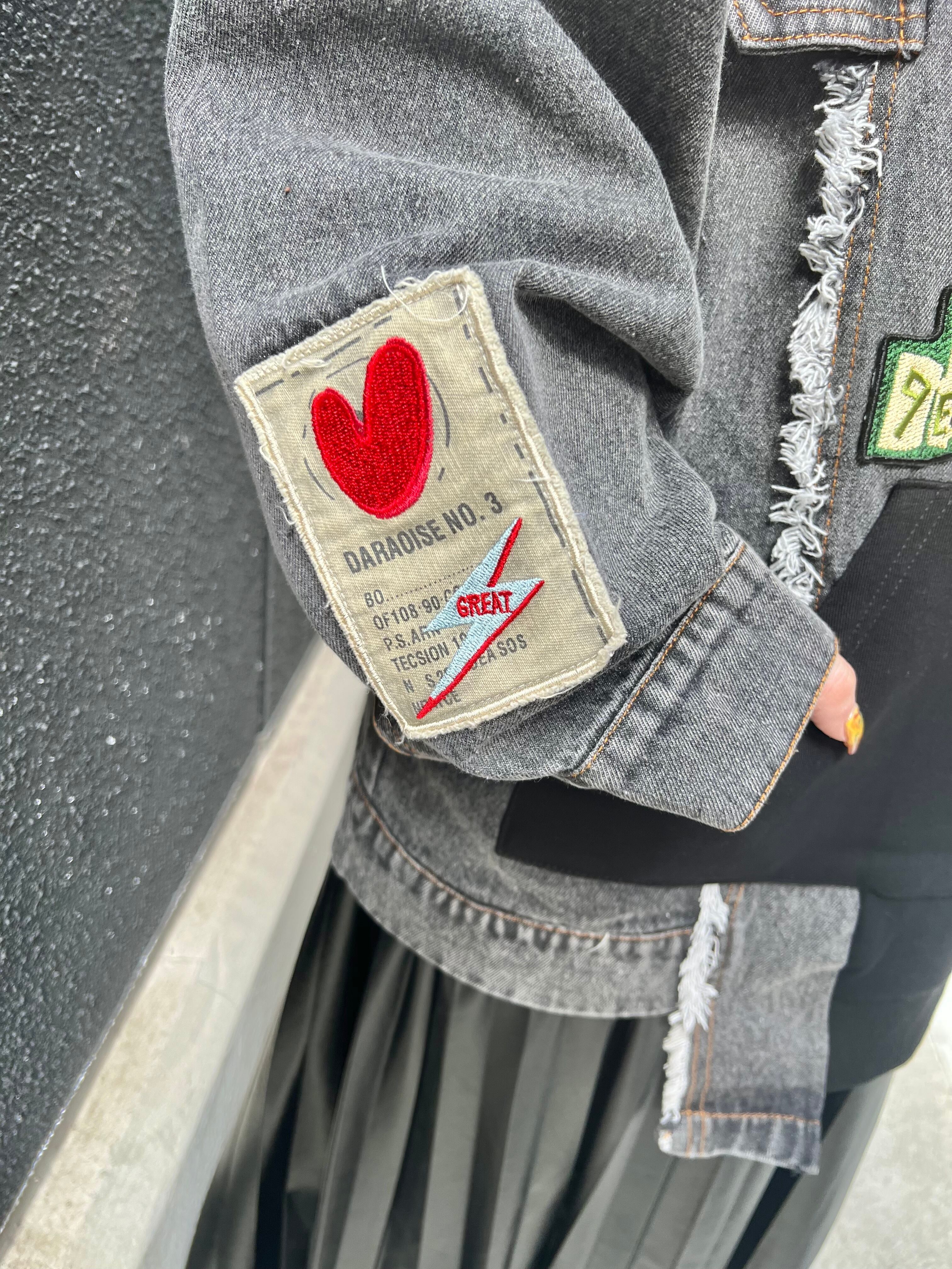 フロントのデニム生地にはワッペンが付いており、アクセントになっています♡