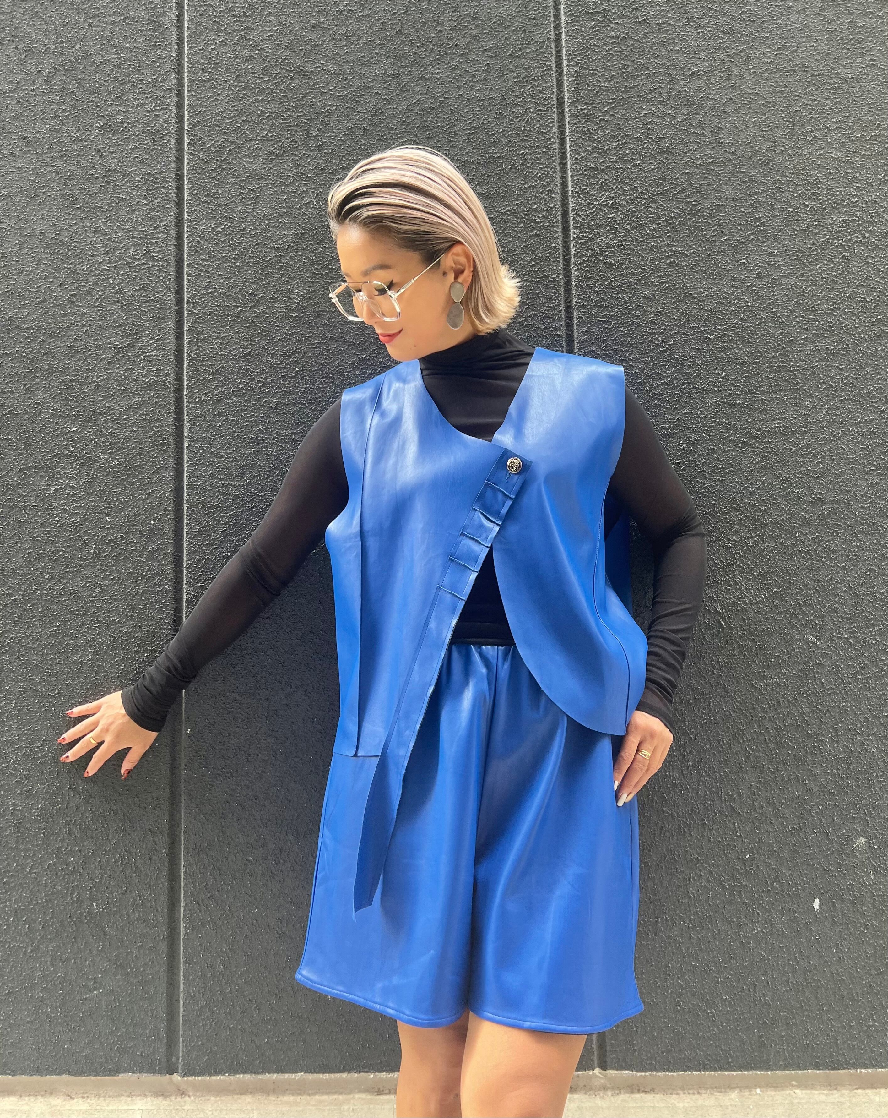 eco leather design vest × short pants set up 2P セットアップ 2点セット 合皮 レザー フェイクレザー ベスト パンツ ショートパンツ ブルー