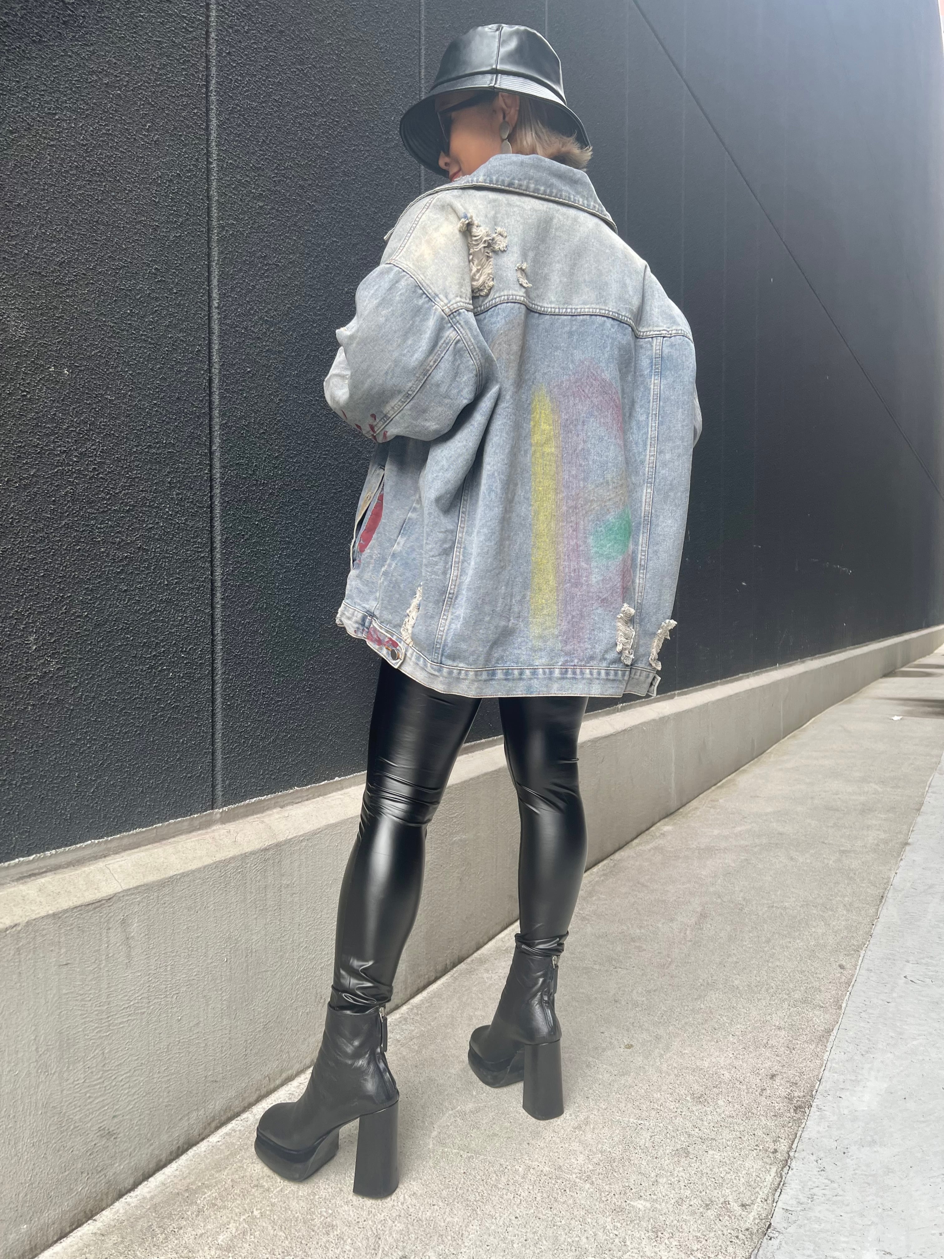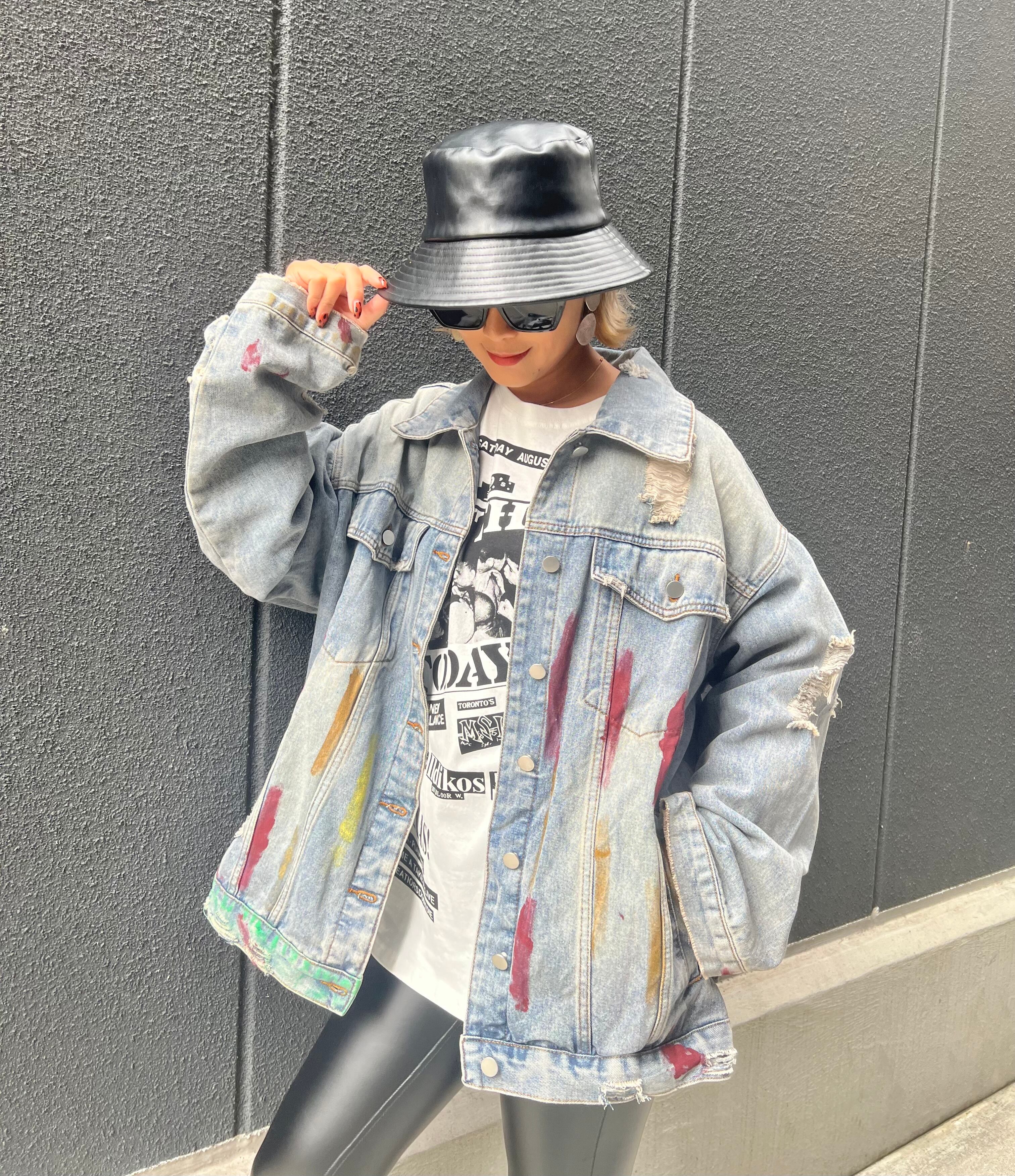 paint × damage design denim jacket ジャケット デニム デニムジャケット Gジャン ペイント ダメージ オーバーサイズ
