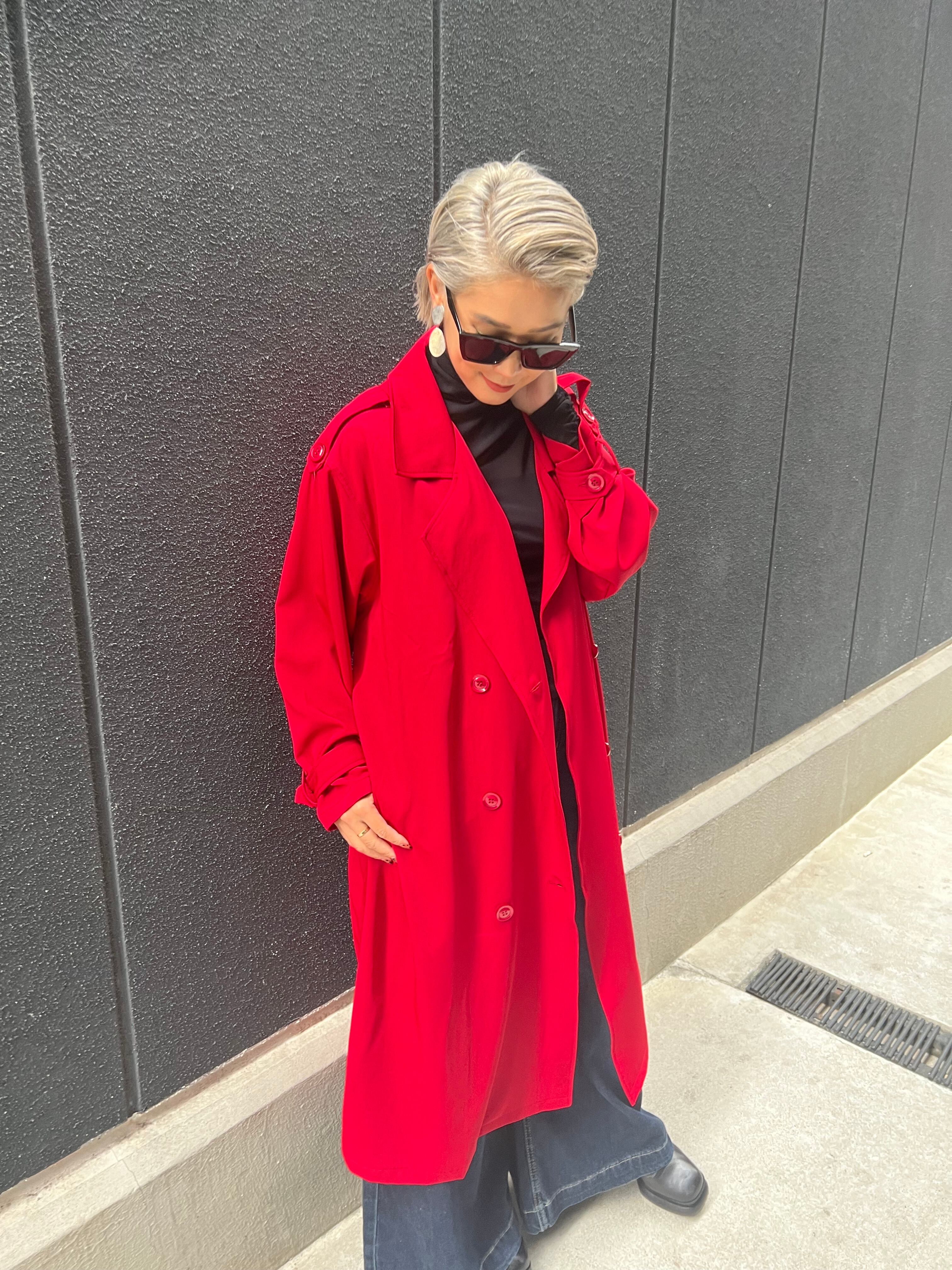 red flare design trench coat トレンチコート コート 赤 レッド アウター 秋