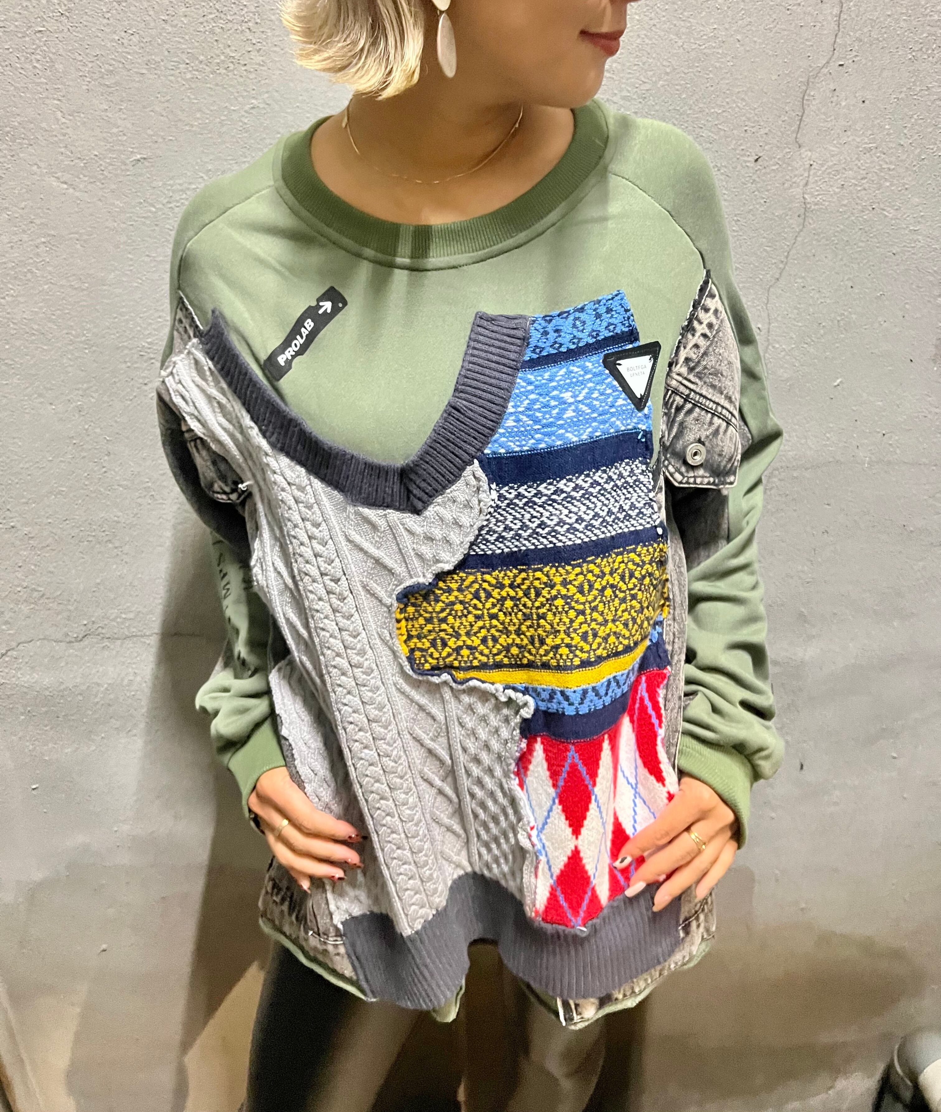 re-make touch denim × knit design tops トップス デザイントップス ニット デニム カジュアル オーバーサイズ