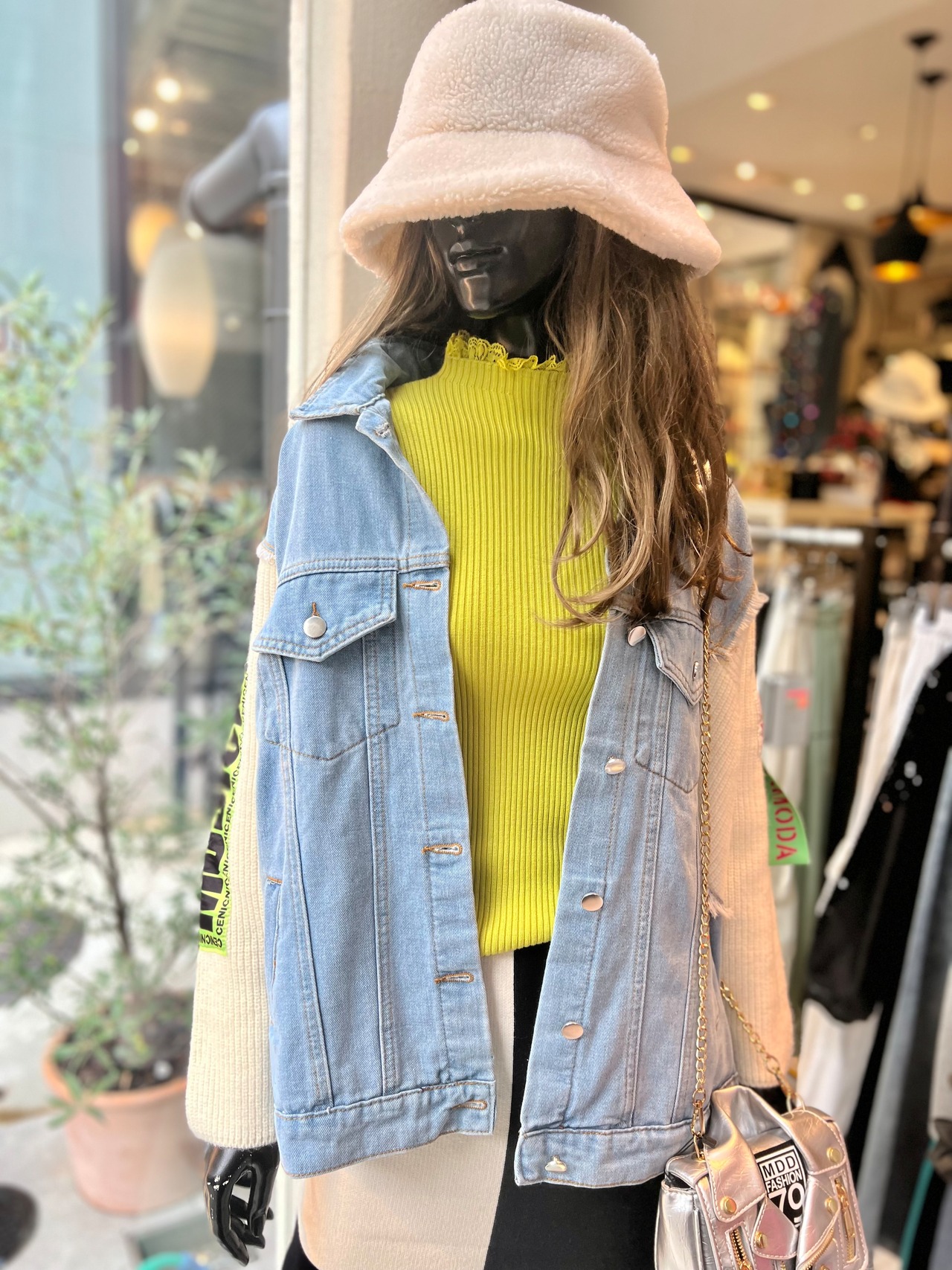 ニットスリーブデザインのデニムジャケットなら、周りと差をつけられるおしゃれアウターになりますよ♡