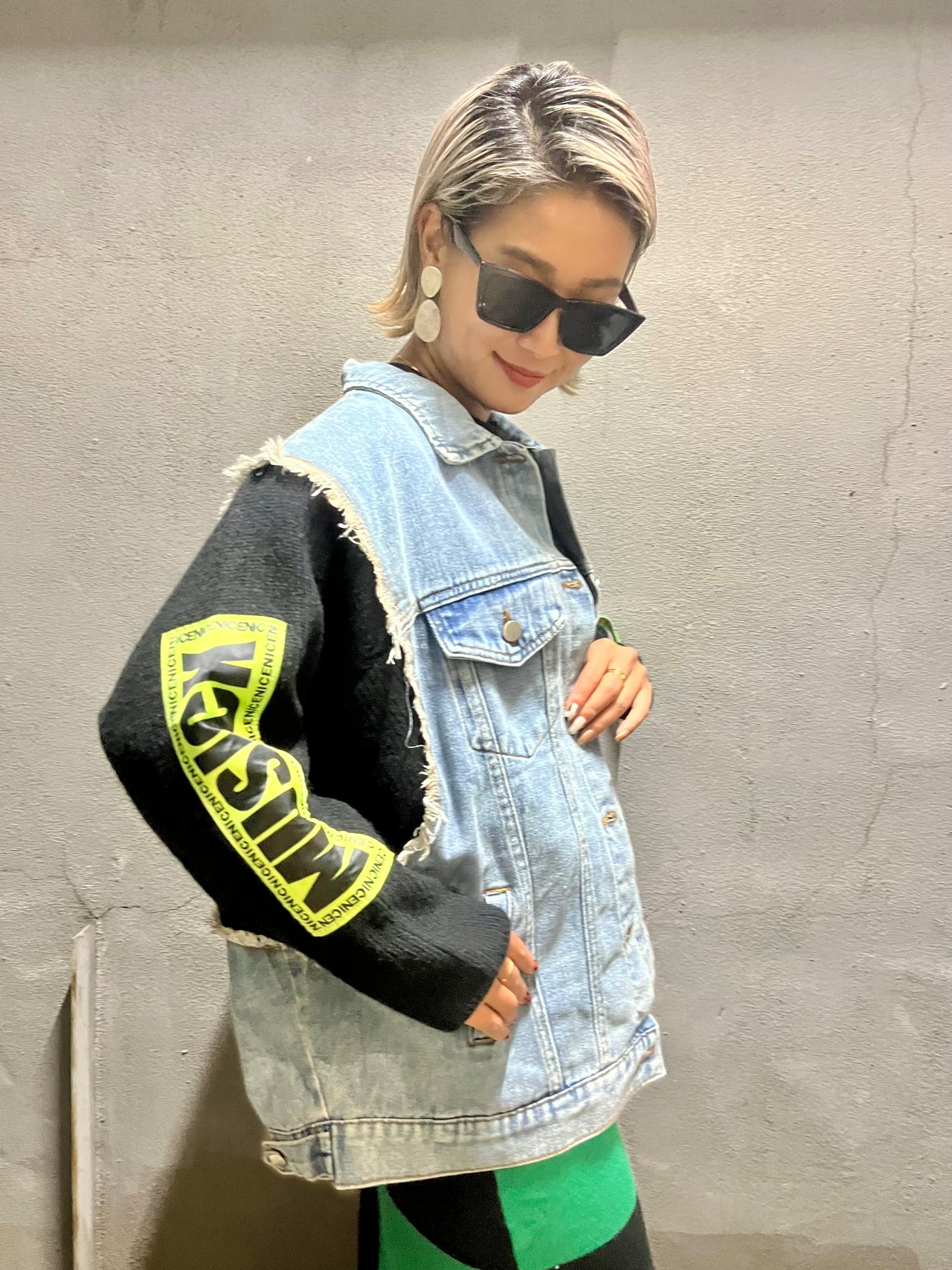 knit sleeve design denim jacket ジャケット デニム デニムジャケット ニット デザインスリーブ カジュアル アウター