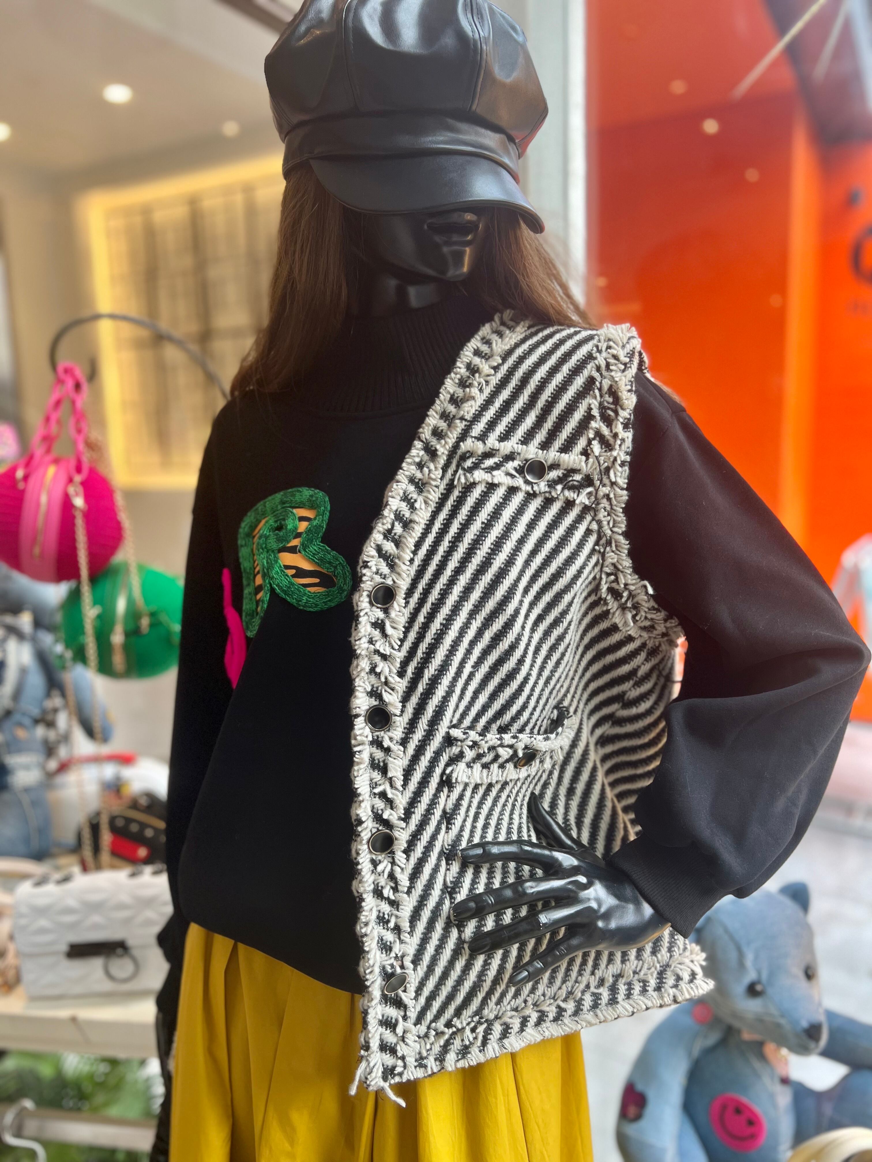 tweed bias design vest ベスト ツィード バイカラー バイアス 重ね着 裏地付き レイヤーコーデ