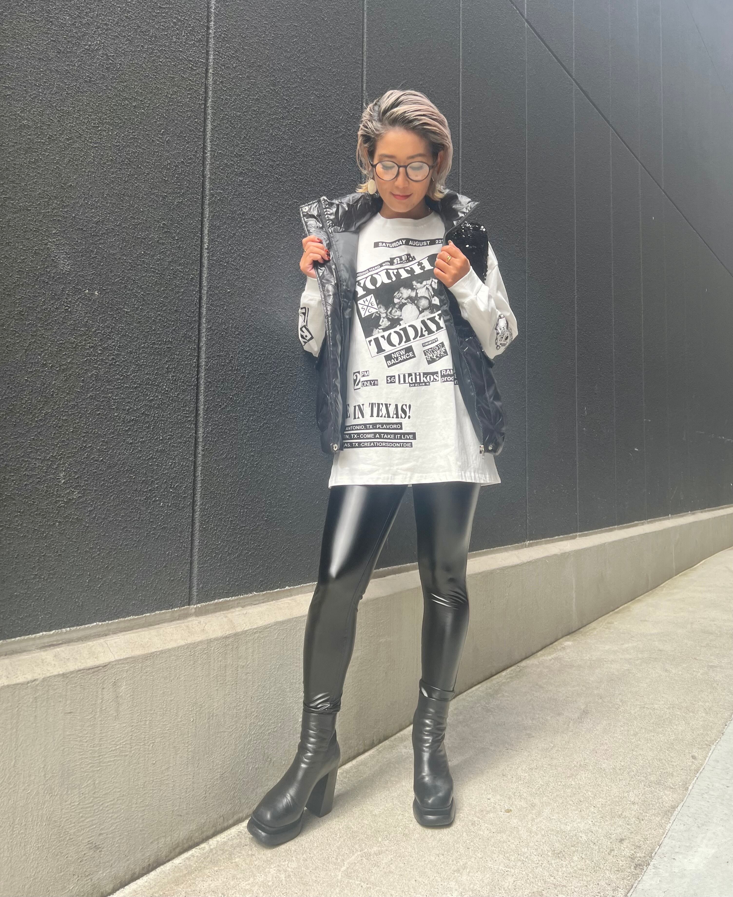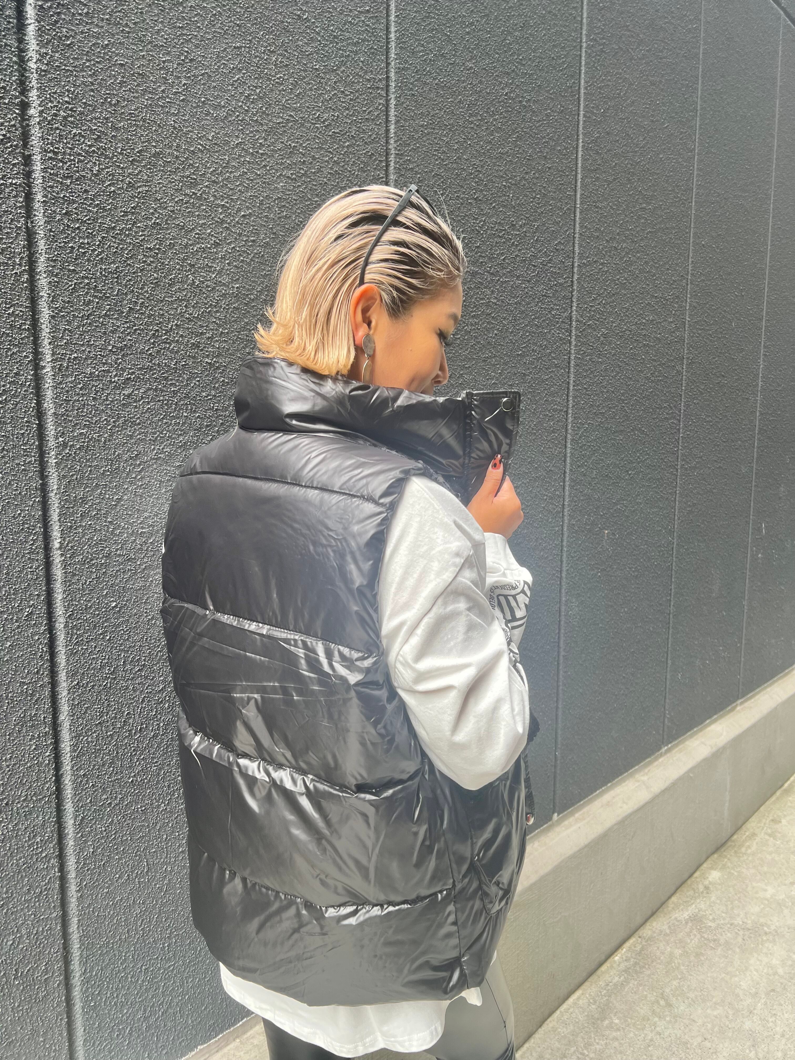 spangle mix down vest ベスト 中綿 スパンコール キラキラ ブラック 重ね着 ハイネック ポケット