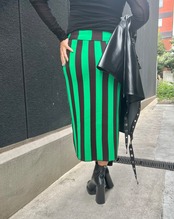 ストライプ柄とタイトなシルエットが魅力のニットスカート。