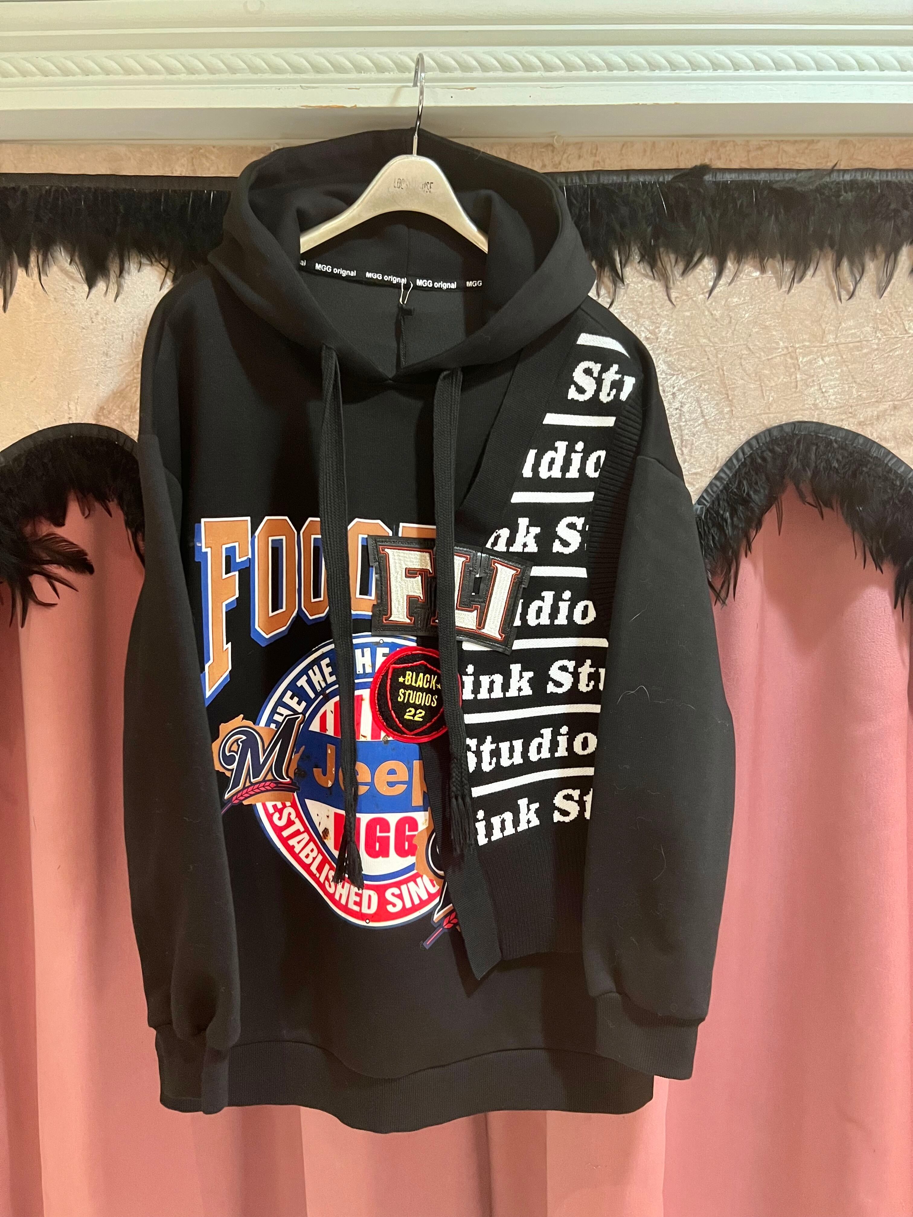 print × wappen design hoodie フーディー フード プリント ワッペン カジュアル オーバーシルエット