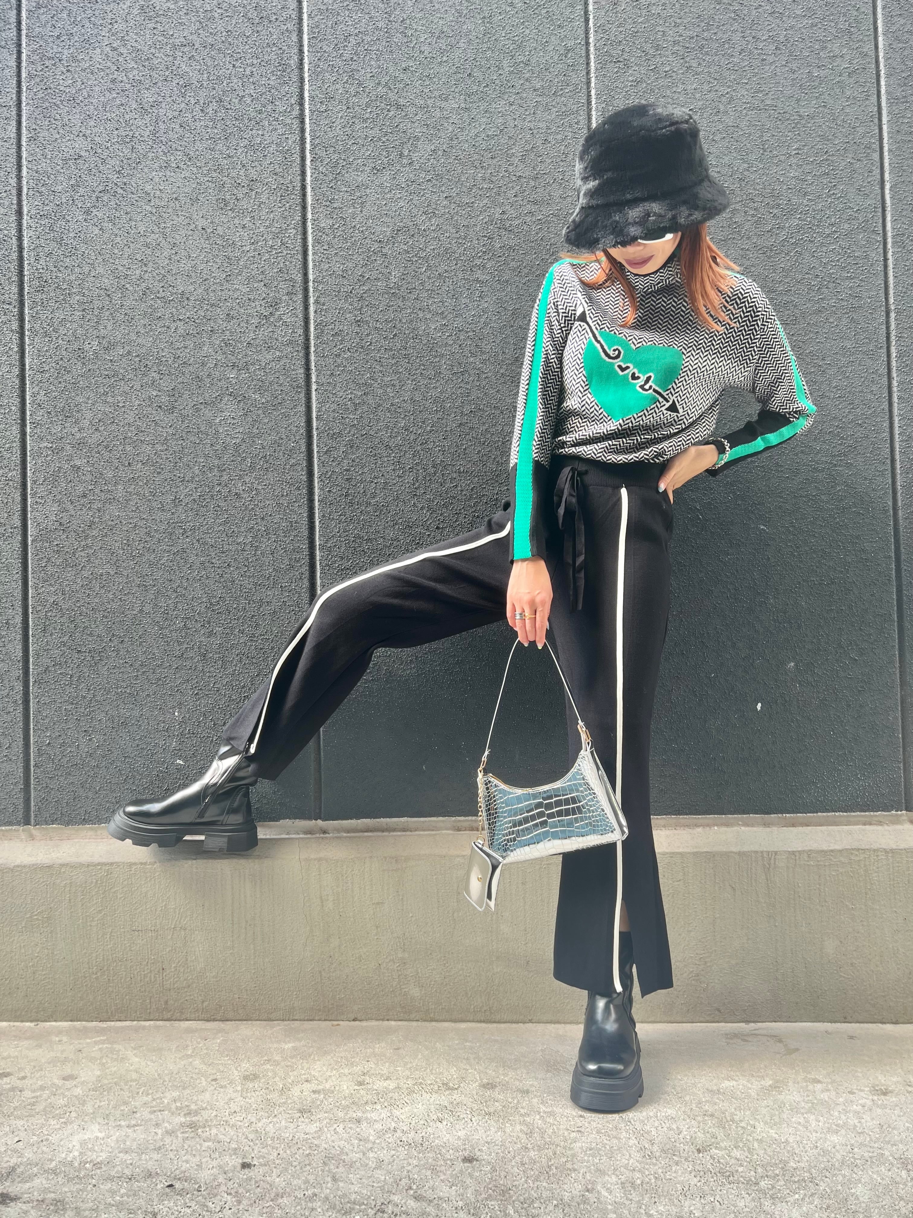 センターラインのスリットデザインがおしゃれなニットパンツです!