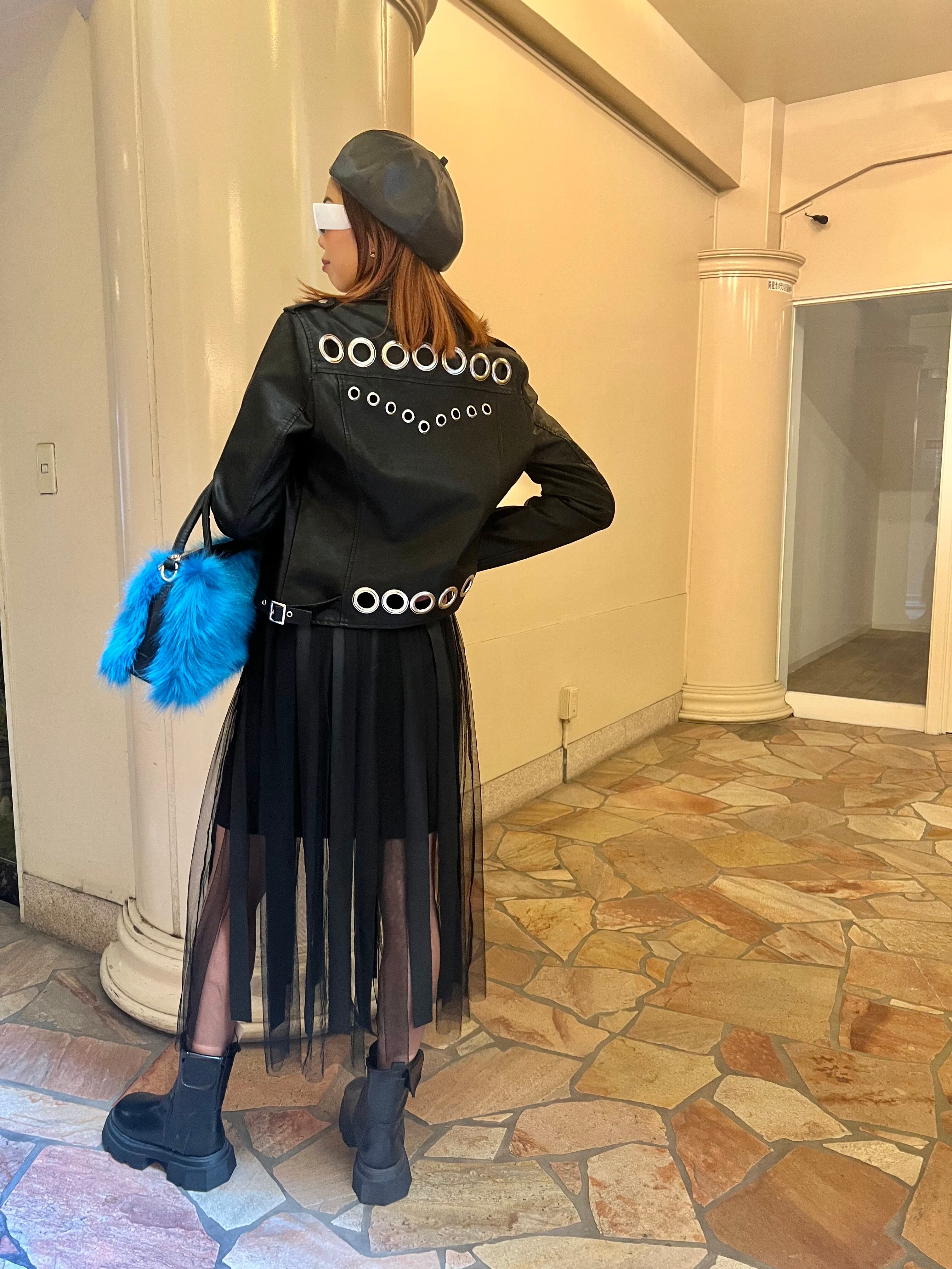 このジャケットは、大きなアイレットが特徴で、一枚でコーディネートを引き立てる、オシャレ上級者にぴったりのアイテムです♡
