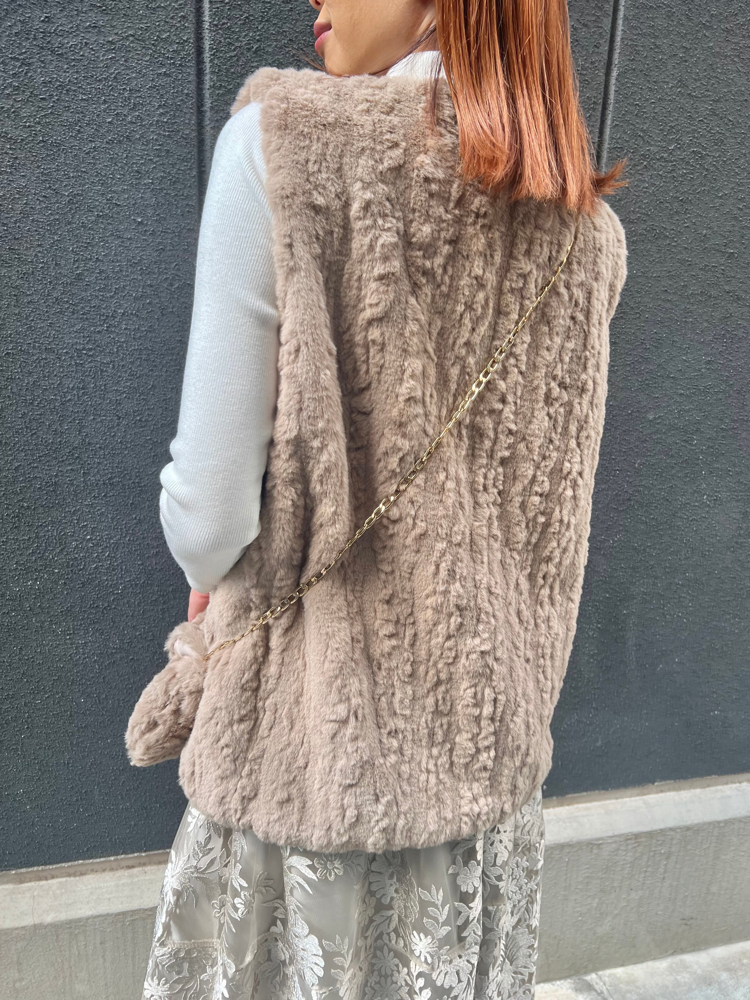 pochette set eco fur vest ベスト エコファー ファーベスト ふわふわ ポシェット バッグ セット