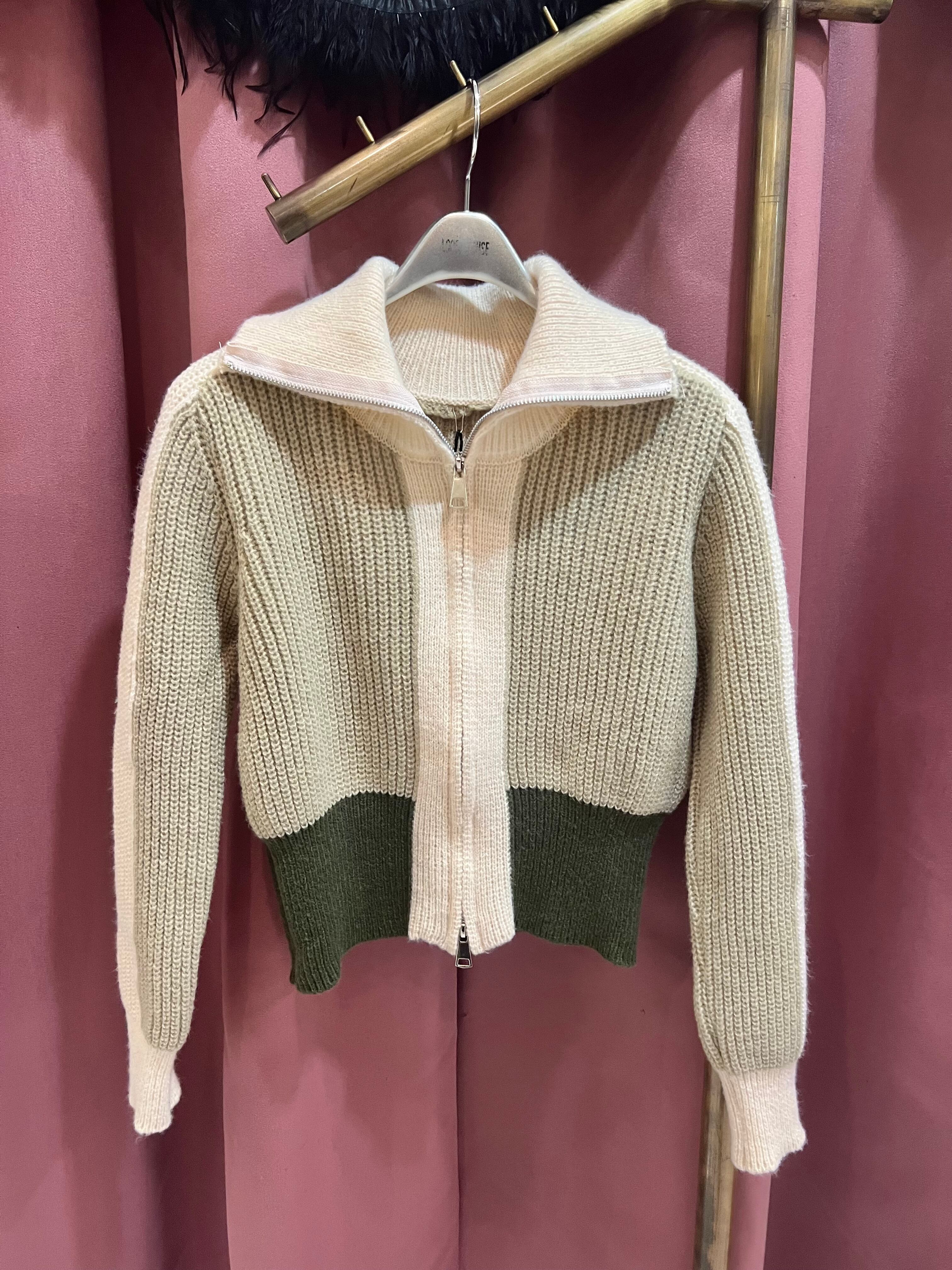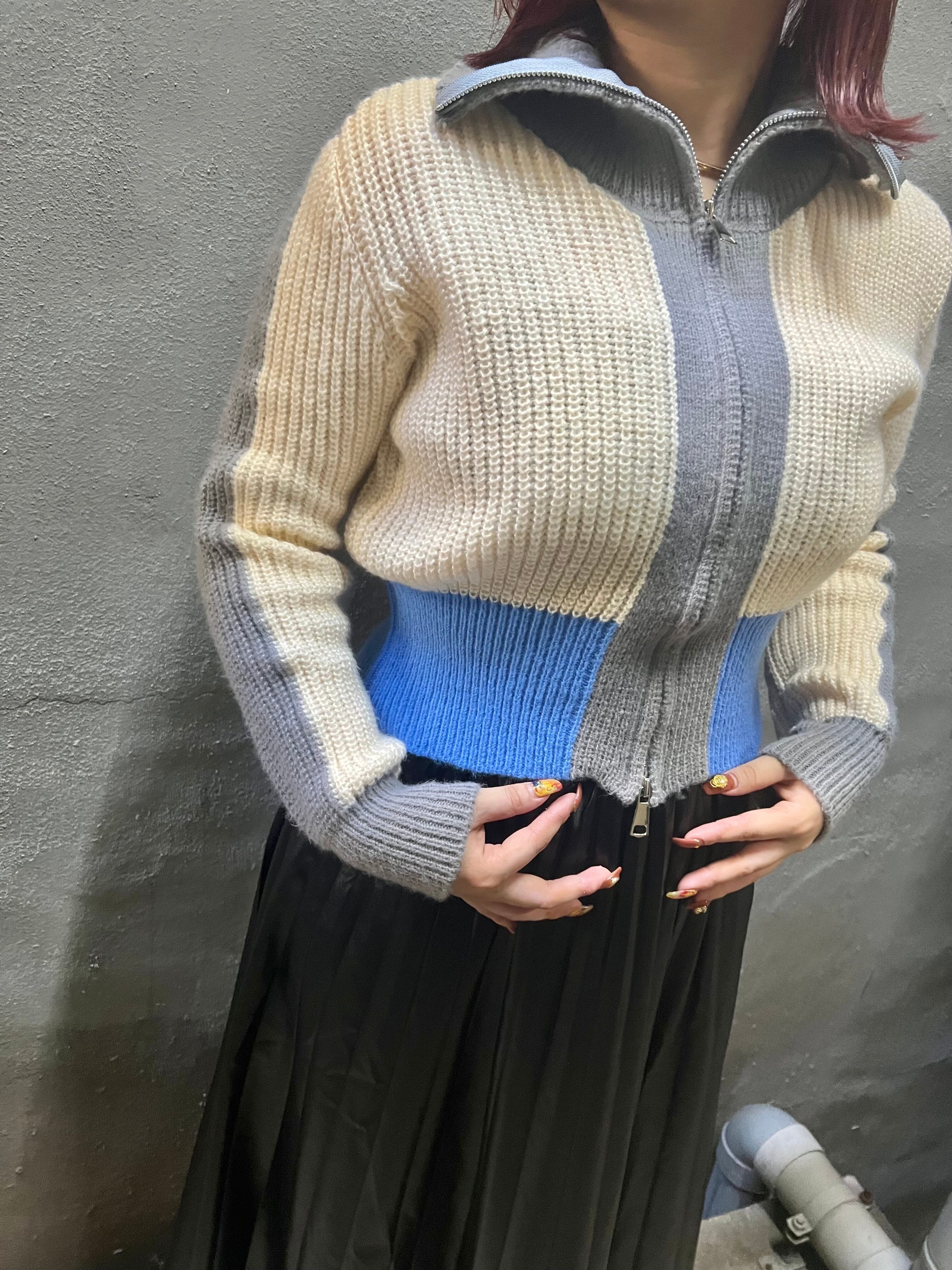 3tone color high neck zip knit jacket ニット ジャケット 配色 ハイネック ダブルジップ
