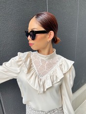 胸元のレースとフリルが可愛らしい、きれいめトップス。